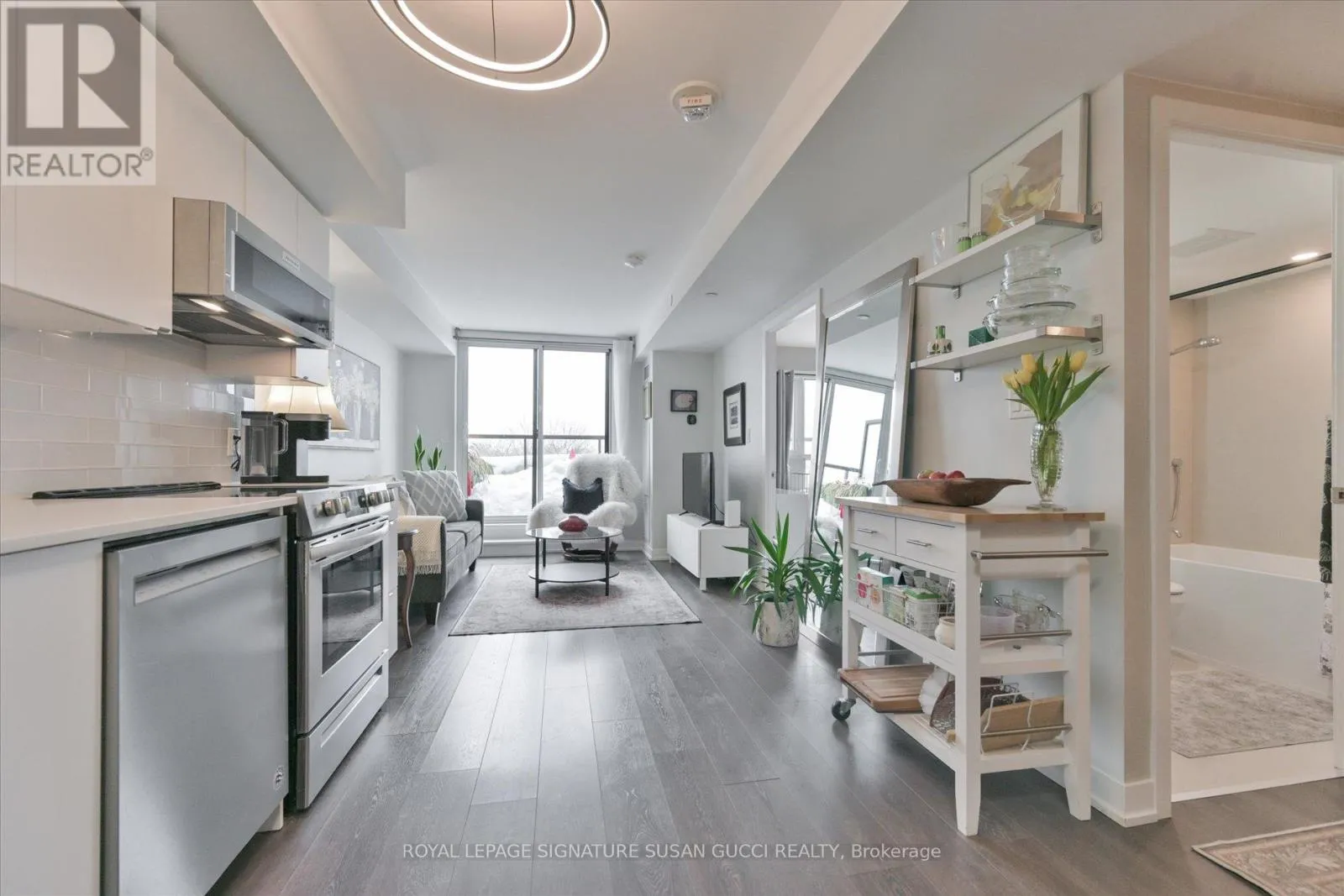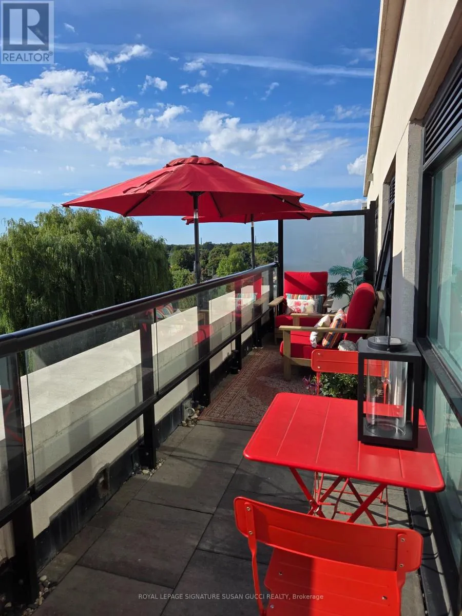 O'Connor Dr & Bermondsey Rd Welcome to 1401 O'Connor Drive #620, a rare and spacious offering in the sought-after Historic Lanes condominium-where a cherished piece of local history has been thoughtfully preserved within a stunning, modern development. This beautifully finished suite offers over 835 sq ft of interior living space with a highly functional 2+1 bedroom, 2 full bathroom layout. The generous principal bedroom features a private ensuite, his-and-hers closets, and a large picture window overlooking a quiet, tree-lined residential pocket with desirable east-facing views and exceptional privacy. The den is currently used as a dining room for easy entertaining but also functions perfectly as a work-from-home space. Enjoy an oversized 150 sq ft terrace-ideal for outdoor dining, lounging, and even your own herb or vegetable garden without compromise. The unit includes one parking space and two storage lockers, a larger-than-average laundry room, and thoughtful storage throughout. Residents enjoy exceptional amenities including a party room with pool table and foosball table, guest suite, yoga studio, lounge/TV room for hosting movie nights, a well-equipped gym with unobstructed views, and a rooftop terrace perfect for BBQs and dining under the stars/ entertaining. With a strong sense of community, social events, and many owner-occupied units who take pride in the building, this home is ideal for down-sizers, families, and urban professionals seeking more space than the average condo. Don't miss this rare opportunity-units like this seldom come available. *convenient LRT /subway access* (id:27476)
