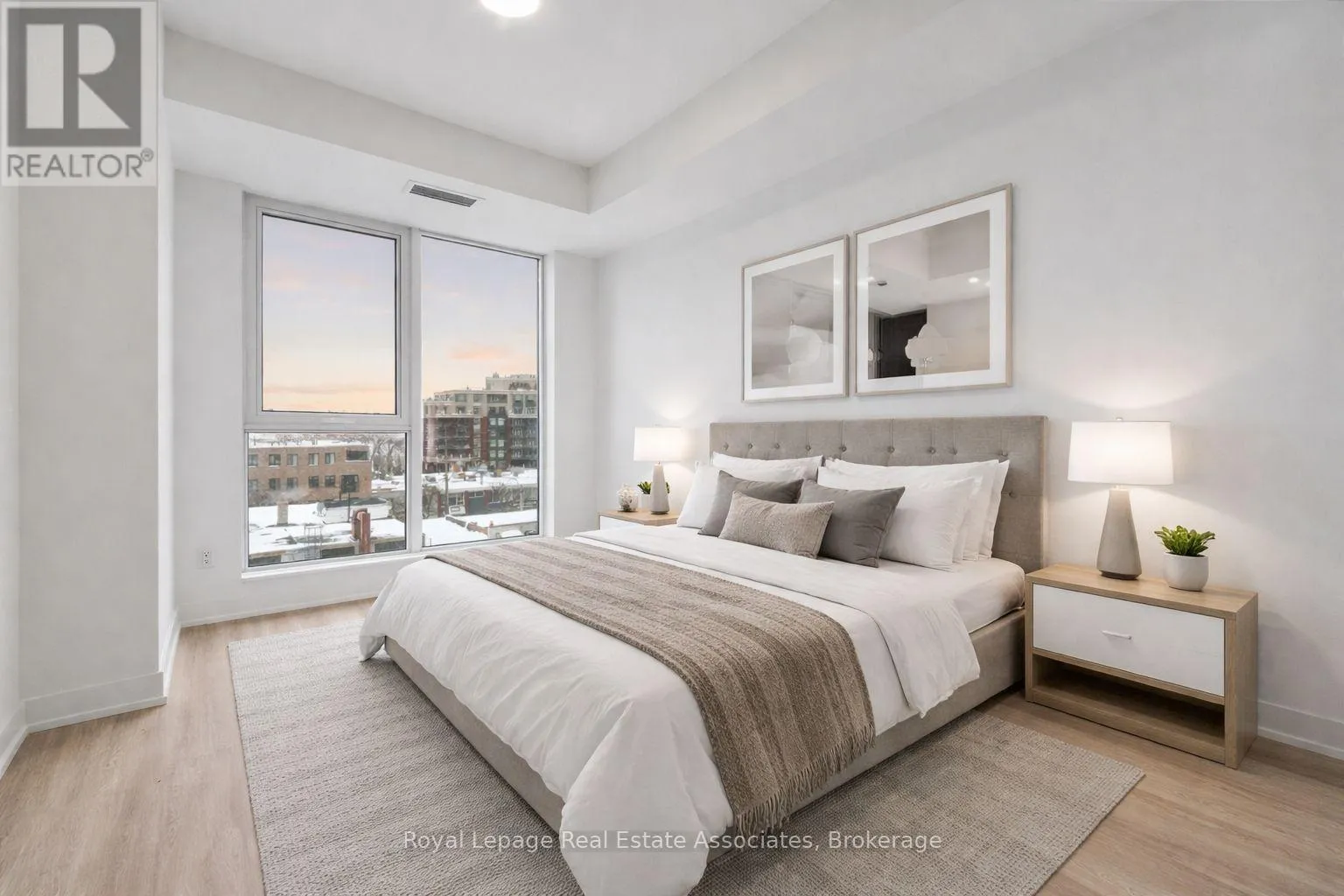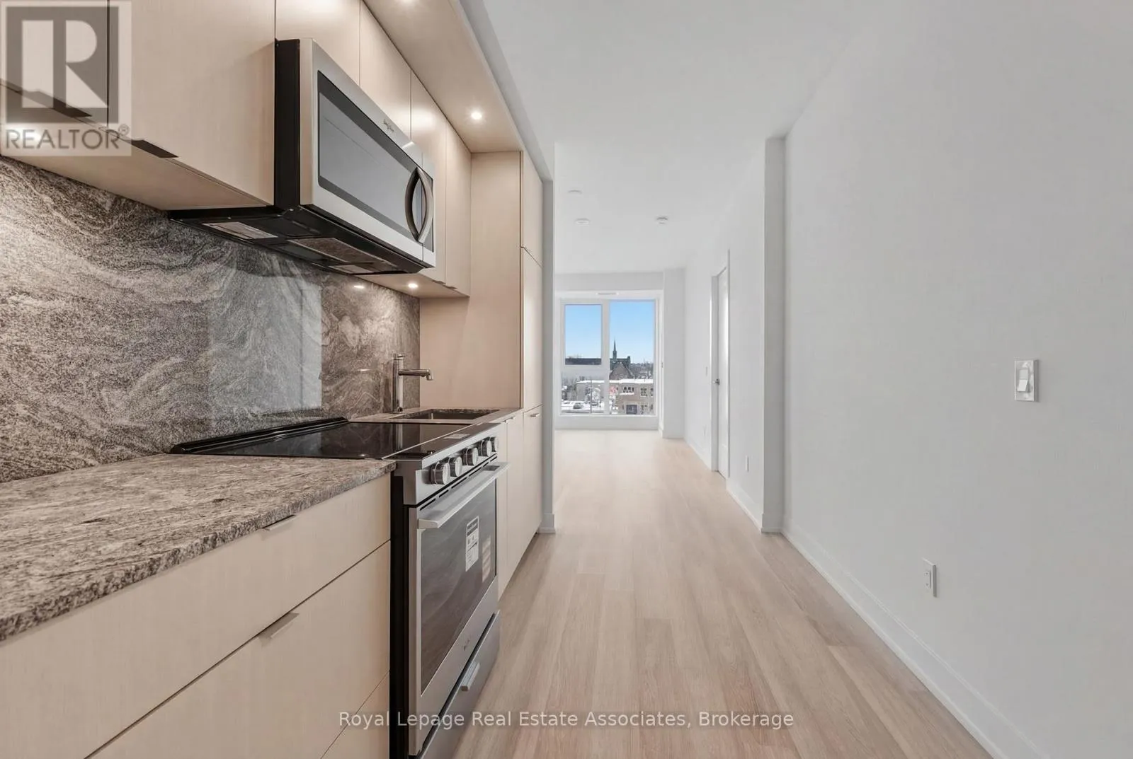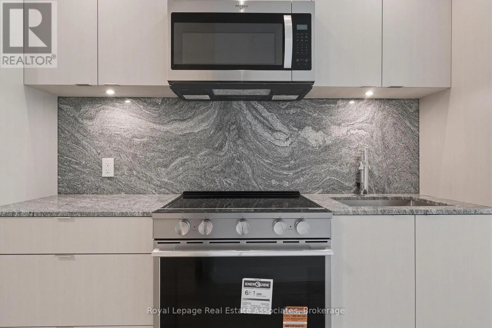 Bloor & Islington Welcome to Westerly 1 by Tridel at 25 Cordova Avenue, where contemporary design meets everyday convenience in the heart of Islington-City Centre West. This thoughtfully designed 2-bedroom suite spans 767 sq. ft. and features a well-balanced layout with comfortable proportions and a practical flow well suited to modern living. The modern kitchen is appointed with integrated stainless-steel appliances, quartz countertops, and streamlined cabinetry, opening seamlessly into the combined living and dining area. Wide-plank flooring and expansive windows enhance natural light throughout the space, while a walk-out from the living area leads to a curved open balcony that extends the living space outdoors. The suite offers two well-proportioned bedrooms, including a primary bedroom with direct access to a private ensuite bathroom. A second bathroom is conveniently located off the main living area and finished with clean, contemporary detailing. In-suite laundry is neatly tucked into a dedicated closet, and a locker is included to support everyday storage needs. Residents enjoy access to building amenities including a fitness centre, party and meeting rooms, guest suites, and concierge service. Ideally located near transit, parks, shops, and everyday conveniences, this residence delivers comfortable, well-connected urban living in an established Etobicoke community. (id:27476)