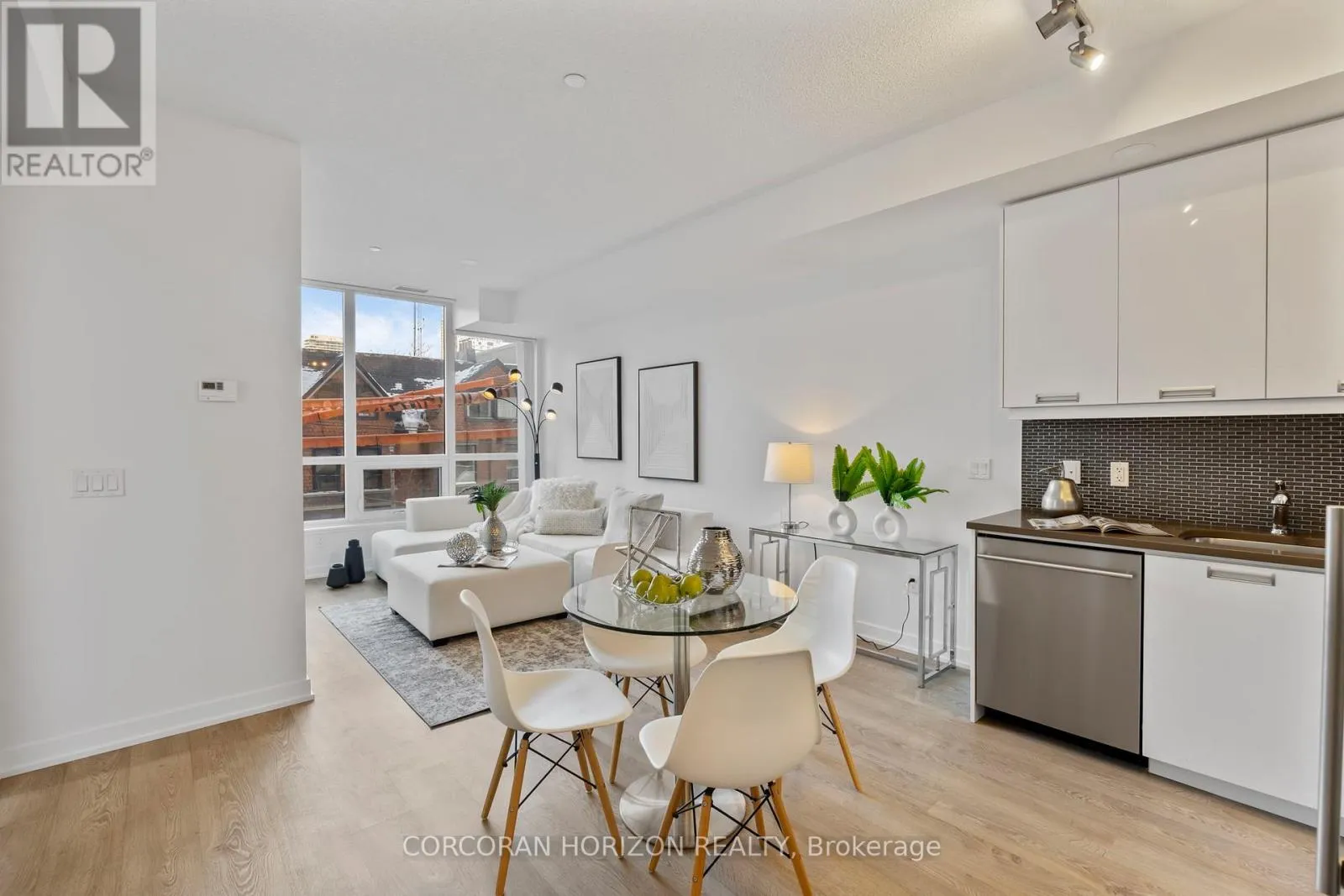 Adelaide St W & John St Prime City Living at the PJ Condos! This 1 plus den is the perfect starter suite for busy young professionals who enjoy the urban conveniences of bustling King St W. This unit features a well thought out floor plan with an entry office or den, a spacious 4 piece washroom and modern kitchen. The combined living and dining space is flooded with light from the large windows with a walk out to the balcony. The primary bedroom is roomy and airy with large windows overlooking the balcony. Residents can enjoy 24 hour concierge, a fitness centre, yoga studio, outdoor pool & hot tub, BBQ's, business centre, party room, private dining room and bar. Steps to the Entertainment District, Tiff Lightbox, Restaurants, Theatres, Shopping, Rogers Centre, Union Station, TTC, PATH and more! (id:27476)