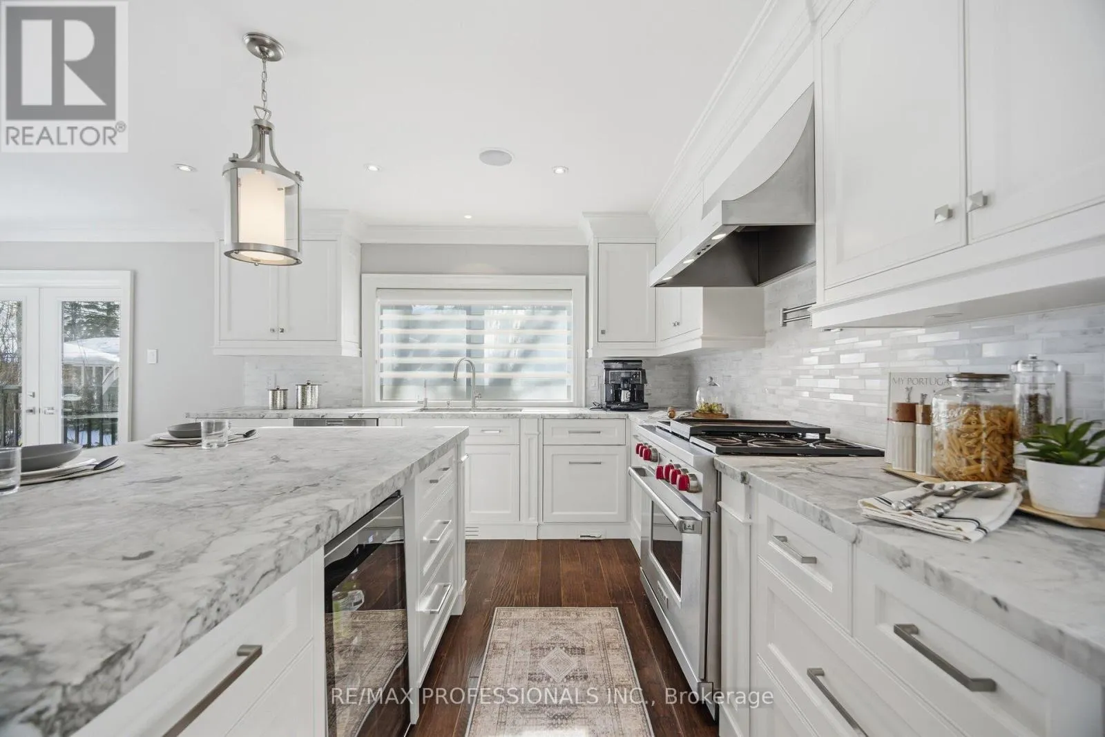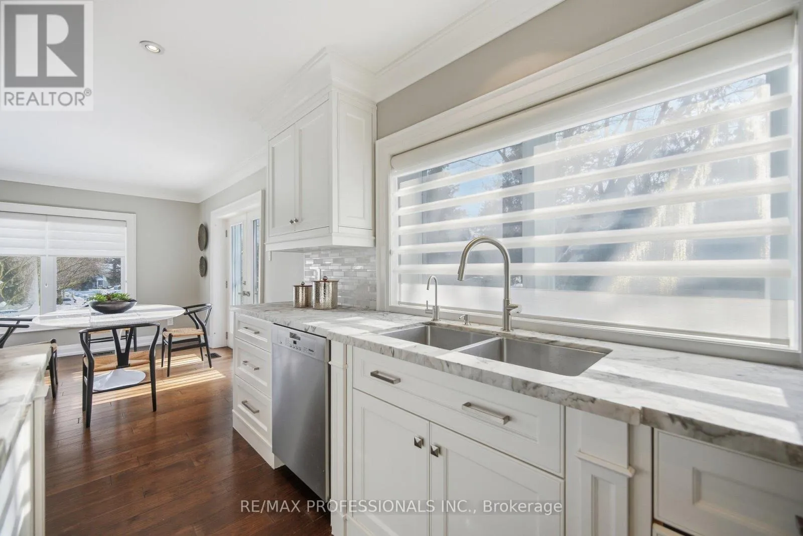 Prince Edward Dr. N and Dundas St. W Sophisticated living awaits in this beautifully renovated Kingsway residence. A classic stucco facade, vaulted ceilings and a Juliette balcony, framed by landscaped gardens, pool and mature trees. Light filled principal rooms are thoughtfully designed to balance elegance and everyday living. A main level fourth bedroom or office provides a quiet and versatile retreat. At the heart of the home, the chef's kitchen features quartzite countertops, an extensive centre island, premium Wolf, Kitchen Aid, Bosch, Miele and Electrolux appliances with a walkout to deck and private garden. Upstairs the primary suite is a true sanctuary with vaulted ceilings, spa-like 5 pc ensuite and both a spacious walk in closet and additional double closet. Two additional bedrooms and a beautifully appointed family bath complete the upper level. The lower level extends the homes lifestyle appeal with a generous recreation area and walk out to the landscaped yard and pool - ideal for both relaxing and entertaining. A full size built-in garage adds everyday practicality to this elegant home. Ideally situated near top ranked schools, Bloor street's shops and dining and some of Toronto's finest golf courses, with quick access to downtown and airports. An exceptional Kingsway home for those who value timeless style and effortless living. (id:27476)