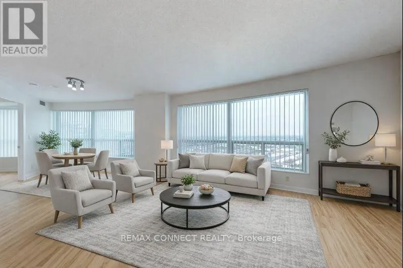 Cross Streets: McCowan and Ellesmere. ** Directions: Markam & Ellesmere. This is not your average condo unit! Welcome to this bright and spacious 2-bedroom, 2-bathroom suite offering a unique and functional floor plan ideal for modern urban living. Recently updated with new laminate flooring, the unit features numerous windows that flood the space with natural light and capture expansive views from the 31st floor. The open living and dining areas are well laid out for both everyday living and entertaining, two bedrooms provide excellent privacy and flexibility. Two full bathrooms add convenience for professionals, roommates, or growing families. Perfect for an investment as the bedrooms/bathrooms are on either side of the unit. Conveniently located just steps to Scarborough Town Centre, enjoy unmatched access to shopping, dining, and entertainment, with a wide selection of restaurants, cafés, and services right at your doorstep. TTC, GO Transit, and future subway expansion are all nearby, making this an ideal home for commuters seeking seamless access to downtown Toronto and surrounding areas. Quick access to Highway 401 further enhances connectivity. Situated in a well-managed building, this residence offers the perfect blend of location, light, and lifestyle in the heart of Scarborough. An excellent opportunity for end-users or investors alike. (some photos have been virtually enhanced) (id:27476)