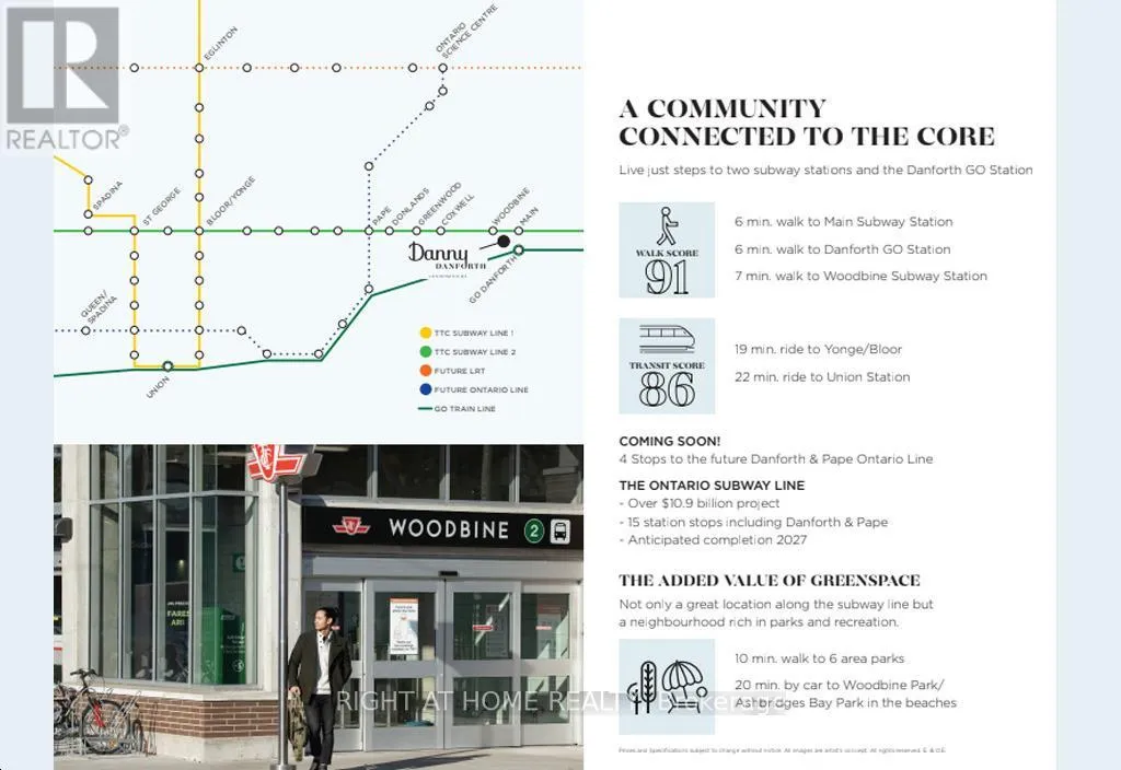 Danforth/Main St Experience contemporary urban living at Danny Danforth by Gala Developments, ideally located at the vibrant intersection of Danforth & Main. This stylish studio suite offers a smart, open-concept layout with 9' ceilings, a modern kitchen featuring stainless steel appliances, and sleek finishes throughout. Enjoy your own private terrace with a pleasant north exposure, perfect for relaxing after a busy day. Just steps to TTC subway and Main GO Station, plus local shops, cafés, restaurants, parks, and everyday essentials. Residents enjoy premium building amenities including concierge, fully equipped fitness centre, party room, visitor parking, and bicycle storage. A perfect opportunity for professionals seeking convenience, comfort, and connectivity in one of the East End's most desirable communities. (id:27476)