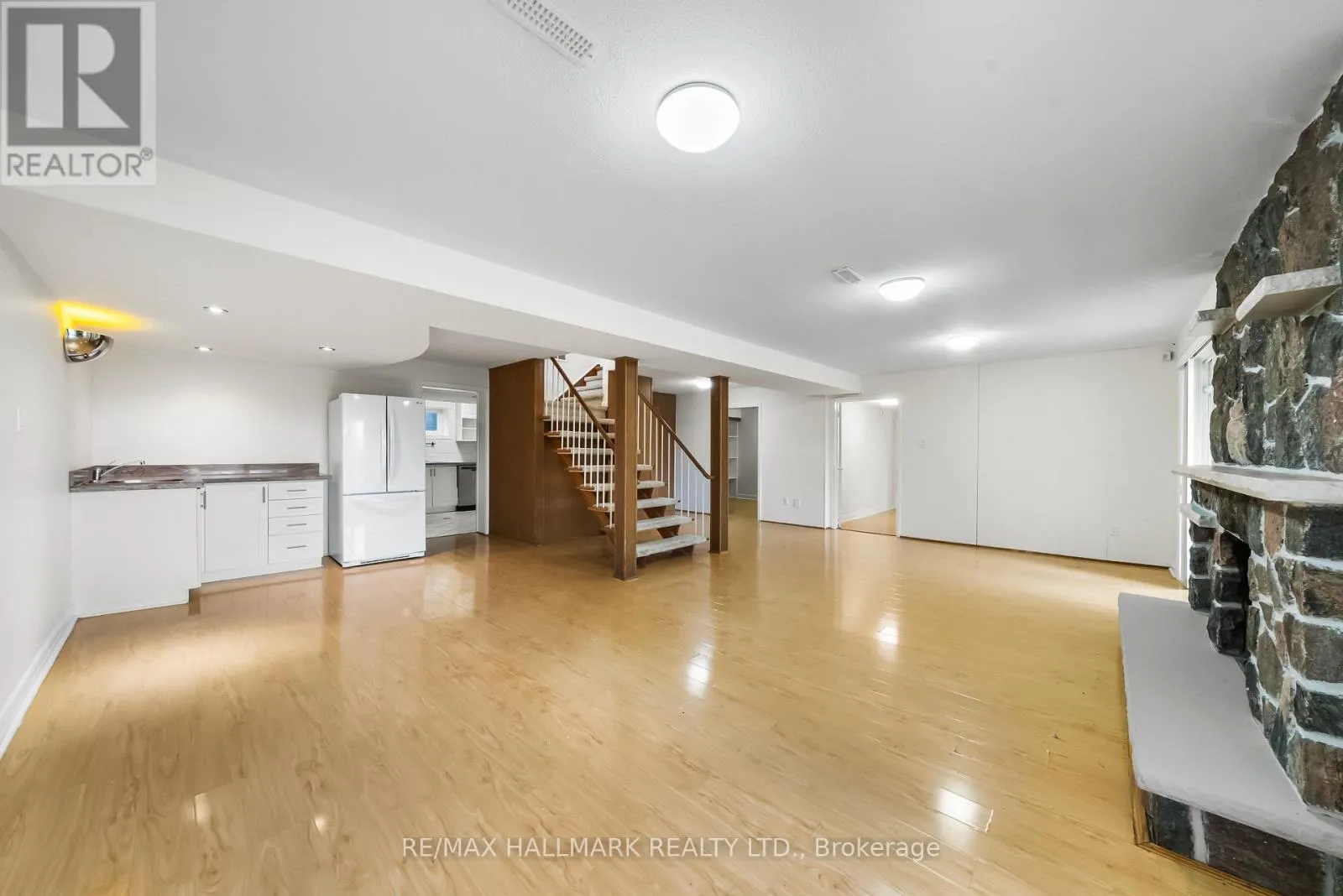 Cross Streets: Bayview & Finch. ** Directions: Bayview Woods/ Bayview & Finch. Outstanding opportunity to live in a beautifully updated home nestled in a coveted, quiet, and family-friendly neighbourhood on a picturesque ravine lot. This ranch-style bungalow offers 3+1 bedrooms, 3 bathrooms, an office, and two kitchens (upper and lower), with hardwood/ laminate wood floors and tasteful updates throughout. The open-concept living and dining areas are warm and inviting, featuring a gas fireplace and walk-out to a large balcony overlooking lush greenery and tranquil ravine views. The modern kitchen is ideal for both everyday living and entertaining, complete with stone countertops, stainless steel appliances, a breakfast bar, abundant cabinetry, and large windows that flood the space with natural light. The main floor features three generously sized bedrooms, including a serene primary retreat with double closets and an updated four-piece ensuite. Two additional bedrooms and a second four-piece bathroom complete this level. The finished lower level offers excellent flexibility as an in-law suite or additional living space, boasting a spacious family/recreation room with walk-out to the backyard, a second kitchen with stone countertops and stainless steel appliances, an additional bedroom, office, and updated three-piece bathroom. Move-in ready, this home offers exceptional privacy, tranquillity, and a front-row seat to nature. Recent improvements include added insulation, upgraded windows, and a high-efficiency furnace, ensuring year-round comfort and efficiency. Ideally located in a sought-after school district, just steps to shops and groceries, and minutes to Highways 404/401/DVP, Bayview Village Shops, GO Station, and TTC. (id:27476)