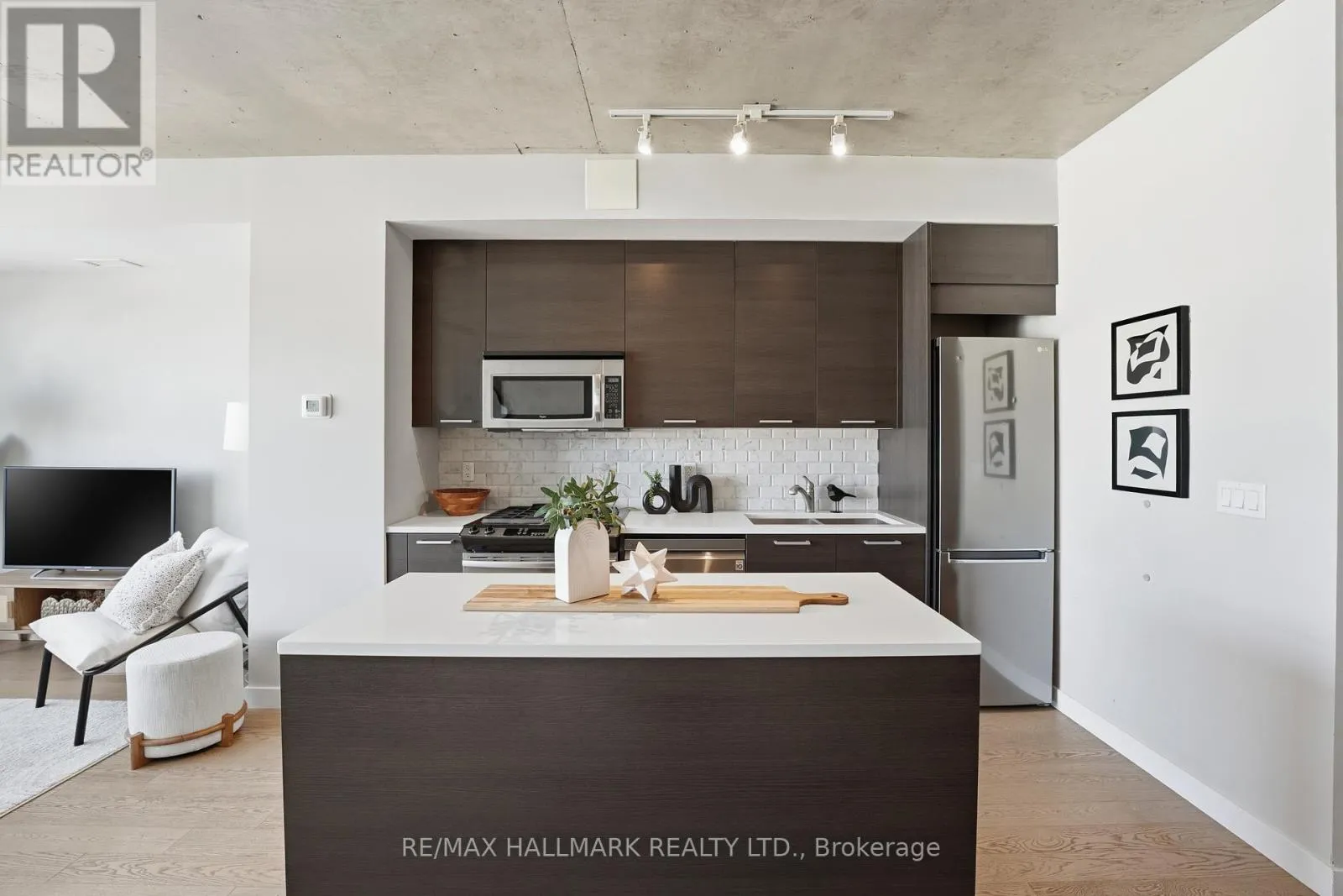 Cross Streets: Queen/Broadview. ** Directions: Queen and Broadview. Gorgeous corner 1+1 loft with owned parking in one of the East End's most sought-after buildings, The Ninety. This functional, wide floor plan offers exceptional space for living, dining, and entertaining, perfect for enjoying your best life in one of Toronto's best neighbourhoods, Riverside/Leslieville. Hardwood flooring throughout. Stylish modern kitchen with gas range and island. Primary bedroom offers ample storage. The spacious den is large enough to serve as a guest bedroom or a generous sized home office.Soaring ceilings, excellent flow, and large glass windows with tons of natural light. The suite is very quiet, surrounded by concrete. Steps to The Broadview Hotel and everything Queen Street East has to offer - trendy shops, cafés, pubs, and top-rated restaurants. Enjoy a quick walk over the bridge to Corktown, the Distillery District, and St. Lawrence Market. With a 90 walk score, 99 Transit Score & 86 Bike Score this is urban living at its finest. (id:27476)