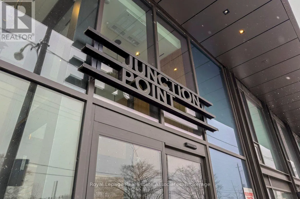 Dundas St W / Dupont St Designed to feel good the moment you walk in. Concrete accents, great light, and an effortless flow set the tone for modern west-end living done right. Clean lines, hardwood underfoot, and wall-to-wall windows create an immediate sense of openness, while exposed concrete ceilings add a cool, loft-inspired edge. The kitchen blends style and function with quartz counters, integrated appliances, a gas cooktop, modern lighting, and black hardware accents. The open living space flows to a private balcony, perfect for morning coffee or late-night chats. A tucked-away den offers flexible bonus space. The bedroom features expansive windows, custom blinds, and a wall-to-wall closet. The bathroom features a walk-in glass shower and bold black accents. Located in Junction Point, a design-forward building recognized as the BiLD 2021 Project of the Year. Maintenance fees include insurance, common area maintenance, and Rogers Xfinity Internet (1.5 Gigabit Unlimited). Steps to cafés, shops, parks, and transit, including TTC, UP Express, and GO. (id:27476)