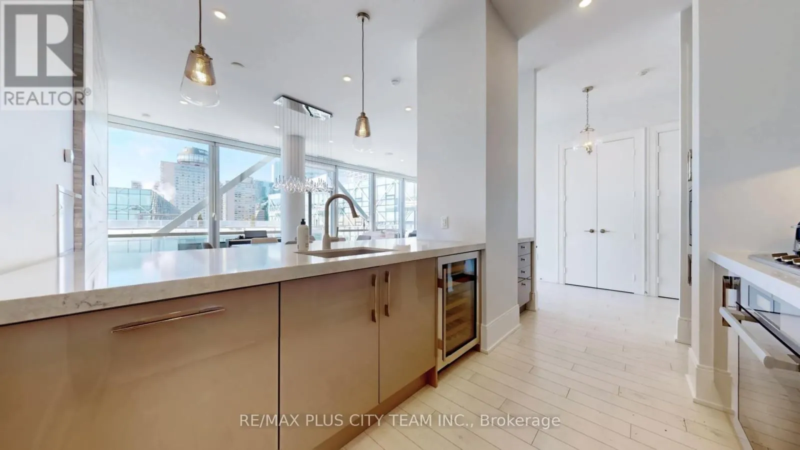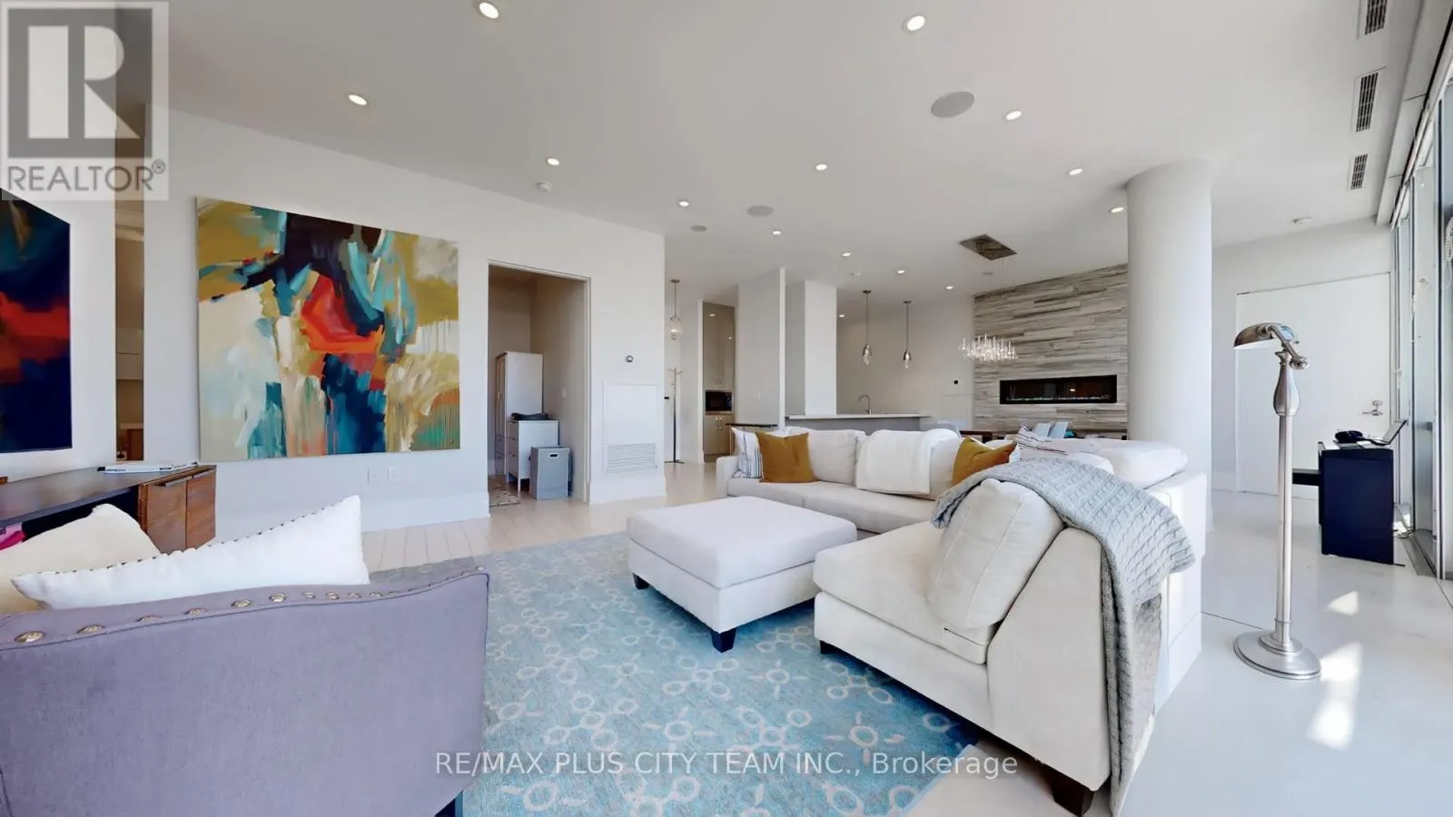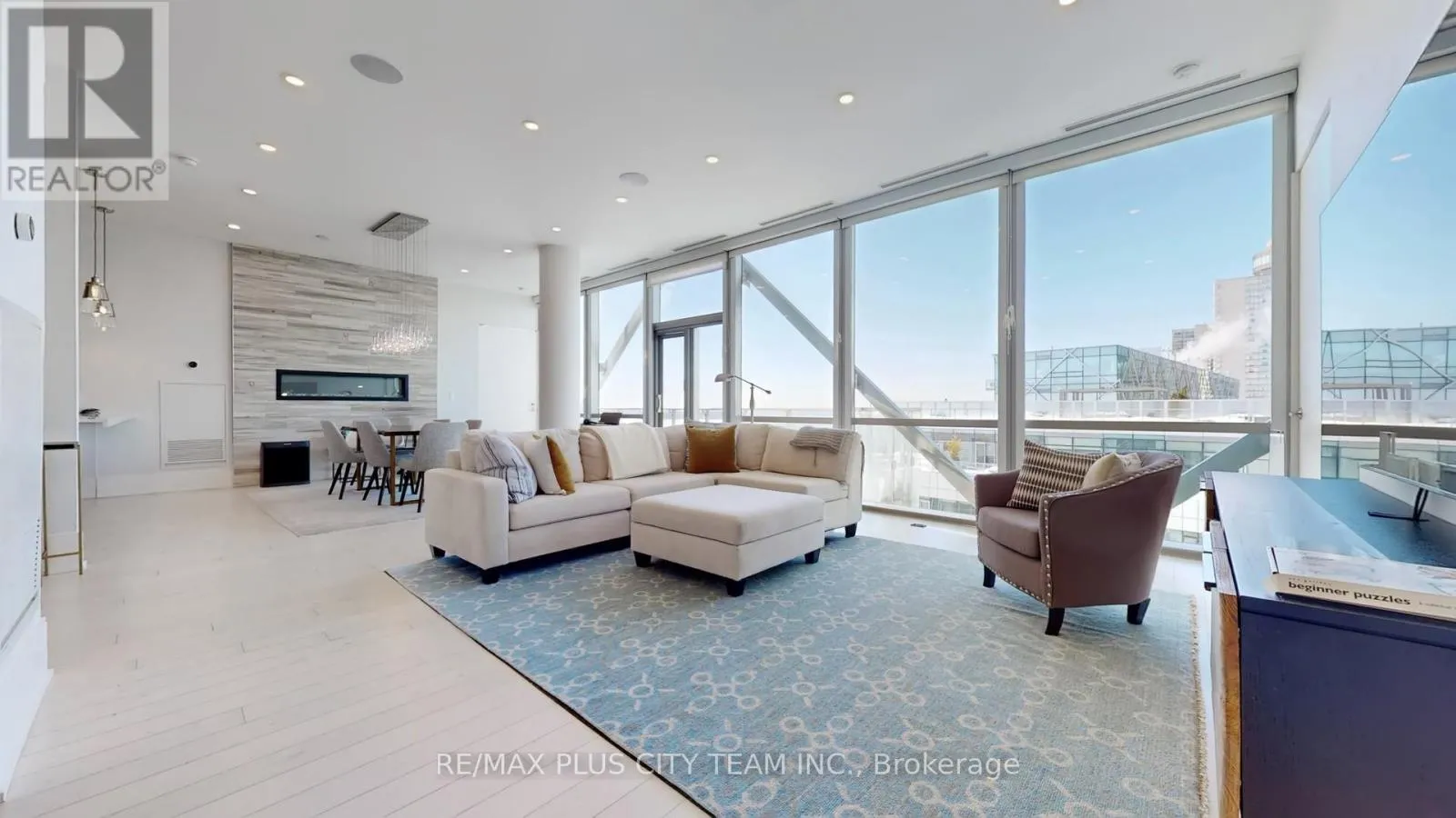 Yonge & Queens Quay Experience elevated waterfront living in this sub-penthouse residence at Pier 27, one of Toronto's most prestigious addresses. Boasting over 1,700 sq. ft. of refined living space, this 3-bedroom plus den, 3-bathroom suite combines luxury, comfort, and breathtaking unobstructed lake views through expansive 10-foot floor-to-ceiling windows that flood the home with natural light. The open-concept living and dining area features a custom-built-in fireplace and seamless flow for entertaining, while the chef-inspired kitchen showcases integrated Miele appliances, quartz countertops, and sleek cabinetry that balance modern design with everyday functionality. The primary suite offers a private retreat complete with a walk-in closet and spa-like ensuite featuring Toto fixtures. Two additional bedrooms and a den provide versatility for guests or a home office. This residence includes two parking spaces and two storage lockers for exceptional convenience. Residents enjoy an exclusive selection of five-star amenities, including indoor and outdoor pools, a fitness centre with sauna and steam room, theatre, lounge, party rooms, guest suites, and visitor parking. Located in the heart of the Toronto waterfront, steps from Union Station, the Financial District, and Harbourfront, with Loblaws, Farm Boy, LCBO, and some of the city's best restaurants and cafés just across the street. Discover a rare opportunity to own a truly exceptional sub-penthouse where contemporary luxury meets serene lakefront living (id:27476)