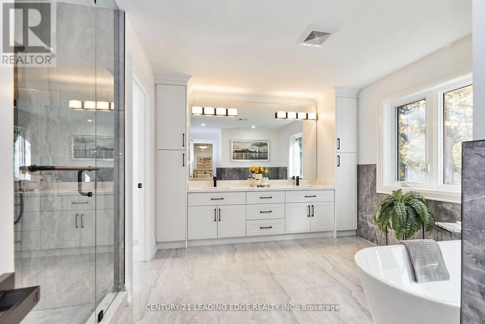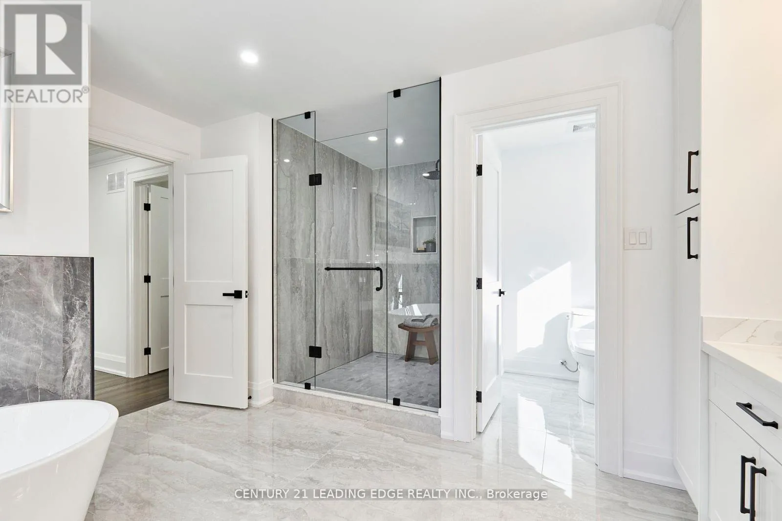 Cross Streets: BRIMLEY SOUTH OF KINGSTON RD. ** Directions: Brimley Rd. south of Kingston Rd to Barkdene Hills, 1st right on Larwood Blvd. Exceptional custom built Luxury Home on Expansive Forest-Backed Lot in the quiet & desired neighbourhood of Cliffcrest! Set on an impressive 50x287 foot estate lot, this extraordinary property offers over 7,000 sq. ft. of beautifully finished living space, combining modern design, natural beauty, & meticulous craftsmanship. Step inside to find soaring 9-ft ceilings, a bright open-concept layout, & high-end finishes on every floor. The designer custom kitchen features premium appliances, a full walk-in pantry, a bonus butler's pantry for seamless entertaining. The kitchen opens onto a large back deck overlooking the lush, private forest. This stunning home offers 5 spacious bedrooms, including 4 with ensuite bathrooms each with glass-enclosed showers & elegant tile work. The primary suite is a serene retreat with picturesque forest views & spa-quality finishes. The large double garage provides convenient home access, complemented by a 2.5-car-wide interlocked driveway framed with a custom stone border wall & landscaped garden area. The custom stone-covered front porch features glass railings, pot lighting, & decorative hanging lanterns that enhance the home's impressive curb appeal. Smart home features include Cat6 hardwired connectivity, a built-in speaker system in the family room, 200-amp electrical service, & a comprehensive security camera system with LED soffit, motion, & garage lighting. The basement offers a rough-in for a second kitchen & laundry area, ideal for an in-law or nanny suite. A truly unique highlight is "The Bunker" - a modern accessory building nestled at the end of the property, complete with a flat rooftop deck overlooking the valley. Perfect potential as a studio, gym, office, or private retreat surrounded by nature. This home is located minutes from the Scarborough Bluffs, Lake Ontario, parks, trails, top-rated schools, & transit. This home offers the best of modern elegance & natural tranquility - this is Cliffcrest living at its finest. (id:27476)