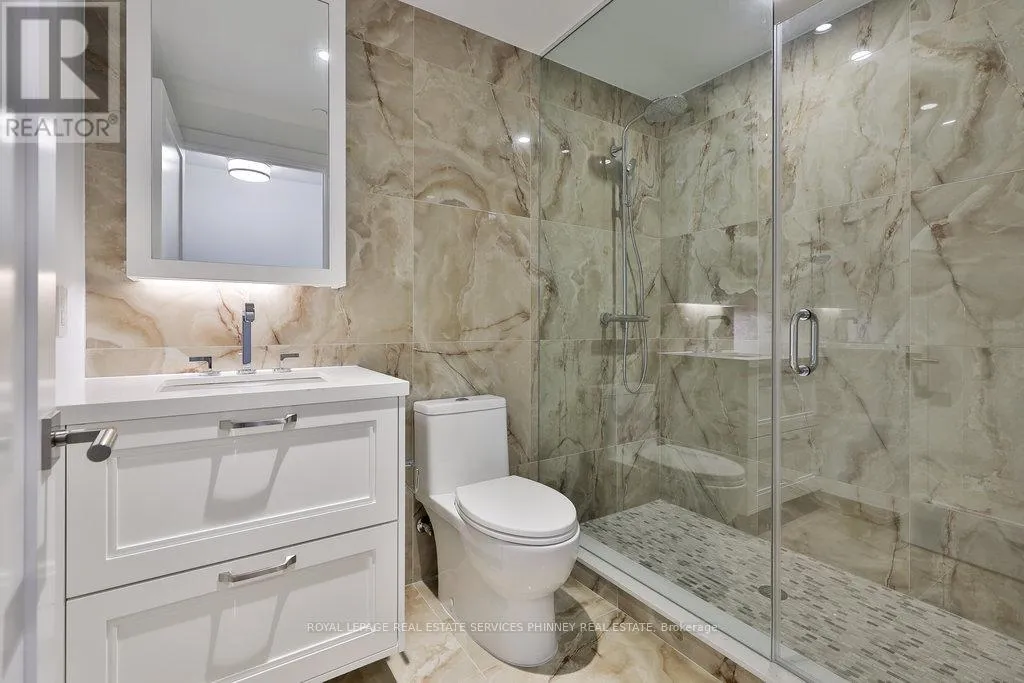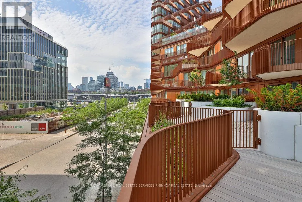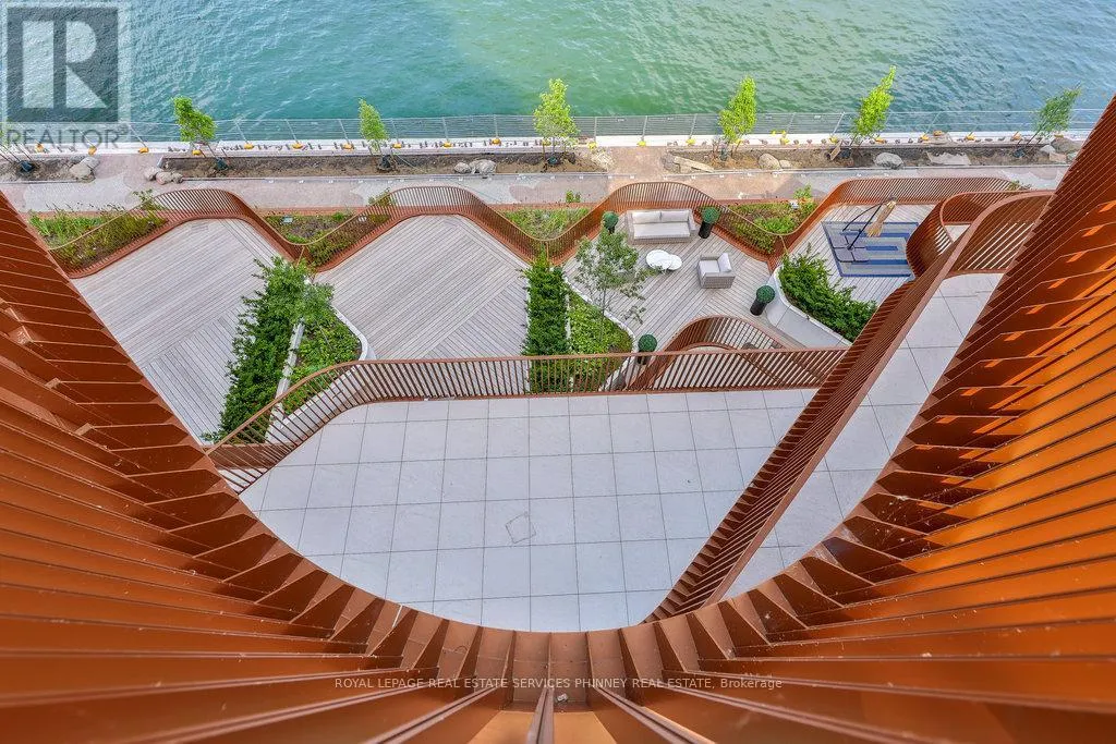 Cross Streets: Queens Quay E/ Merchants Wharf. ** Directions: Queens Quay and Merchants Wharf. Discover unparalleled resort-style living on Torontos waterfront in the vibrant Queens Quay neighbourhood.Tridels latest waterfront masterpiece is just steps away from the scenic promenade, Cherry Beach, and the iconic Waterfront Trail. The striking architecture of this development adds a bold presence to Torontos Port Lands, with a host of world-class amenities that cater to your every need. Enjoy access to a state-of-the-art fitness centre, multiple elegant lounges, 24/7 concierge service, and a breathtaking rooftop deck with a pool and expansive entertaining spaces that offer panoramic views of the water and skyline.This exceptional two-storey residence, spanning over 2,400 square feet, showcases exquisite finishes throughout. The expansive main level is highlighted by a gourmet two-tone kitchen featuring top-tier appliances and a large waterfall island, perfect for both cooking and entertaining. The spacious living room seamlessly flows out to a generous terrace overlooking the serene beauty of Lake Ontario. Upstairs, a large private balcony accessible from two bedrooms offers sweeping water views. The primary suite is a true retreat, with a walk-in closet, a second closet, and a luxurious spa-inspired ensuite complete with double sinks, a freestanding tub, a glass-enclosed shower, and a private toilet.A secluded den with large sliding doors offers the ideal space for an office or guest bedroom. The second floor also features a convenient laundry room and ample storage, ensuring comfort and practicality.At Aqualuna, theres no need to leave the city to experience the tranquility of a resortits all right here, waiting for you. (id:27476)