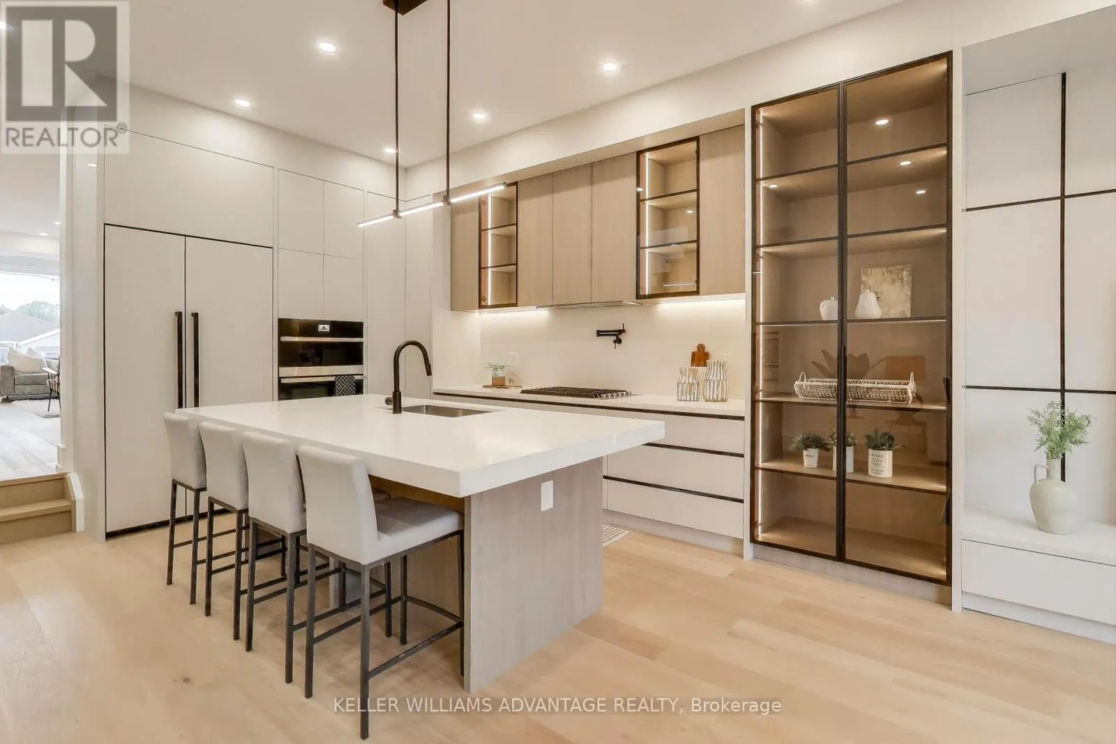 Victoria Park Ave / Yardley Ave Architect: Rubinoff Design GroupBuilder: Blue Valley Homes (Tarion-registered builder)Seller is a reputed Licensed builder, and this gorgeous home is enrolled in the Tarion New Home Warranty Program and comes with full Tarion warranty giving you the peace of mind. This custom-built residence blends striking modern design with refined functionality.Situated in the heart of Topham Park/East York, this fully detached executive home offers sophisticated living in a highly desirable family-oriented neighbourhood. Step inside to an exceptionally bright, open-concept floor plan flooded with natural light-creating an inviting and warm atmosphere from the moment you enter. Designed for both daily comfort and effortless entertaining, the home features a spacious chef's kitchen, soaring 10' ceilings, and thoughtfully considered proportions throughout. A private driveway and built-in garage provide convenience and ease. Every finish and fixture have been carefully selected to balance elegance with comfort. A stunning floating staircase leads to the skylit upper level, where the primary suite serves as a serene private retreat complete with a custom walk-in closet and a spa-inspired 5-piece ensuite featuring a double vanity, glass shower, and freestanding tub. The second level also includes three additional bedrooms with built-in closets, two additional 3- and 4-piece bathrooms, and a conveniently located laundry room. Walk to Topham Park to enjoy playgrounds, a splash pad, baseball diamonds, soccer fields, pickleball courts, and community programming at the local clubhouse. Commuting is effortless with easy DVP access, plus both the subway and upcoming LRT within close reach. (id:27476)