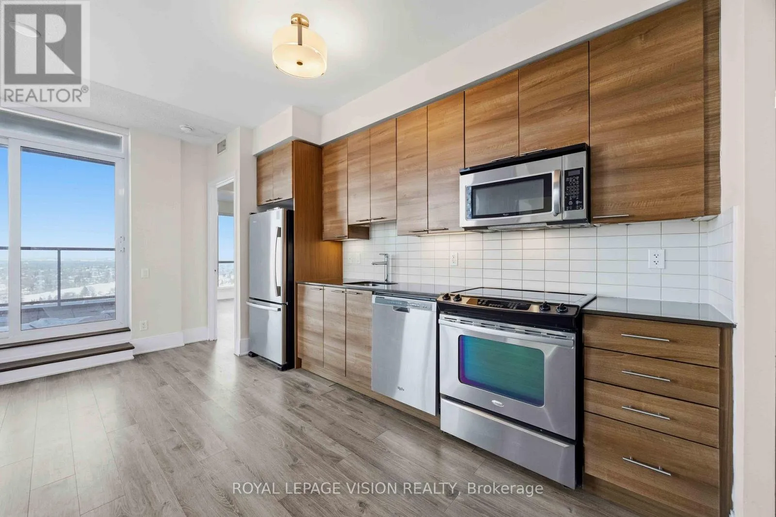 Cross Streets: Dundas & Kipling. ** Directions: Opposite Kipling subway station. Entertainer's Dream at Tridel's Prestigious 'Parc Nuvo'! This rare suite offers the ultimate indoor-outdoor lifestyle with a massive 300 sq. ft. private terrace-featuring a natural gas line for BBQing and serene Northwest views overlooking the quiet landscaped courtyard. Perfect for catching golden-hour sunsets!The interior features a highly functional open-concept split-bedroom layout with rich wood flooring throughout and floor-to-ceiling windows. The modern kitchen features premium stainless steel appliances and overlooks a bright, airy living space.Unrivaled Connectivity: Steps to the Kipling Transit Hub (Subway, GO Train, & MiWay) and minutes to Pearson Airport, Hwy 427/QEW, and Sherway Gardens. Enjoy 5-star resort amenities: indoor pool, gym, sauna, media room, and 24hr concierge. Includes parking and locker. Experience the space of a terrace-home with the convenience of a luxury high-rise!" (id:27476)