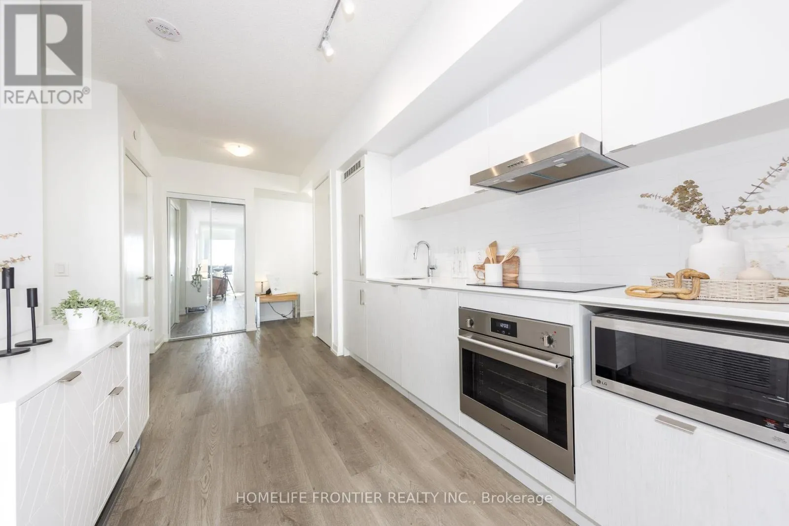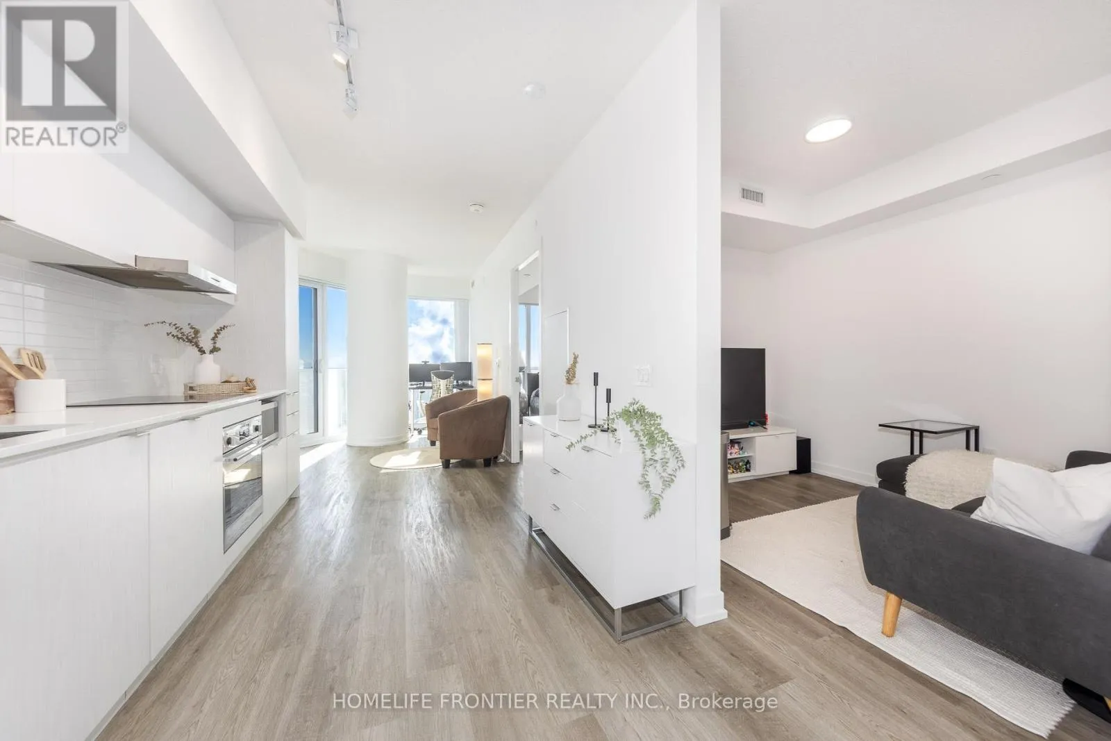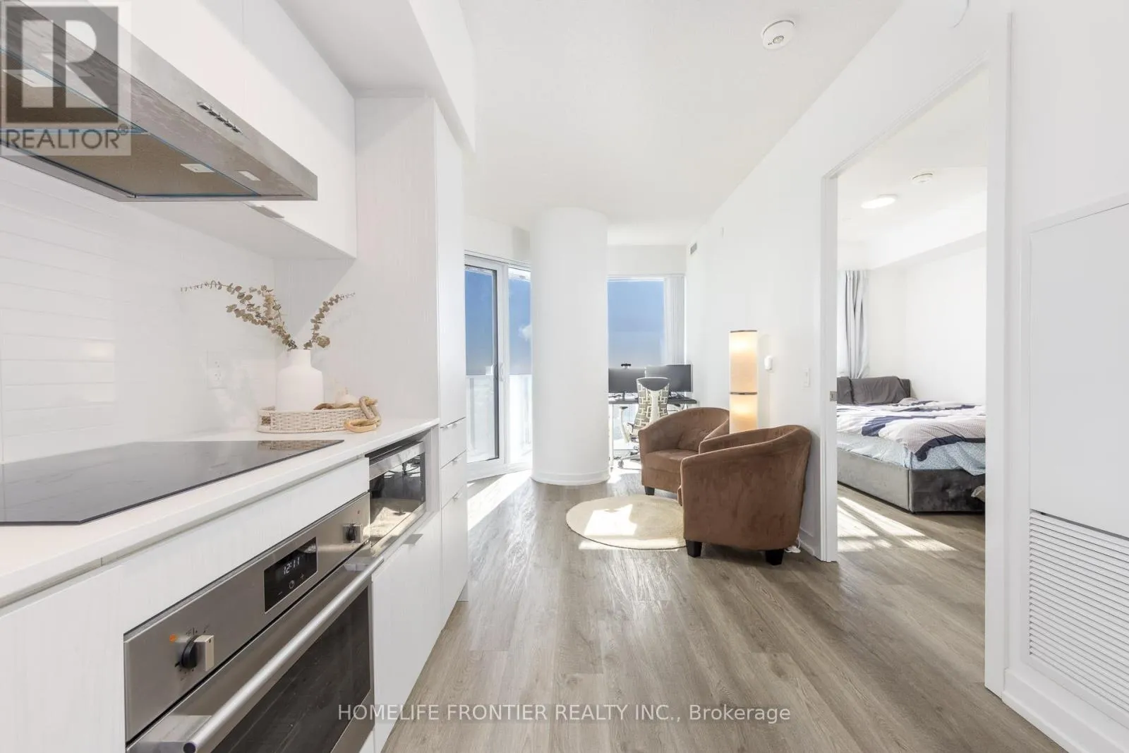 Cross Streets: Yonge St. & Queen's Quay. ** Directions: go through lobby. Experience the epitome of waterfront living at Menkes' prestigious Sugar Wharf West Tower. This meticulously designed 1 Bedroom + Den suite offers approximately 664 sq. ft. of sophisticated interior space, seamlessly extending to an impressive 157 sq. ft. balcony that captures breathtaking, unobstructed views of Lake Ontario. The unit features soaring 9-foot smooth-finish ceilings, a modern chef-inspired kitchen with integrated appliances, quartz countertops, and luxury laminate flooring throughout. Residents enjoy world-class amenities, including a 25,000 sq. ft. fitness centre, indoor lap pool & 24-hour concierge. Perfectly positioned steps from Sugar Beach, the LCBO flagship, and the Financial District, this suite offers a 100% walk and transit score for a truly effortless urban lifestyle. (id:27476)