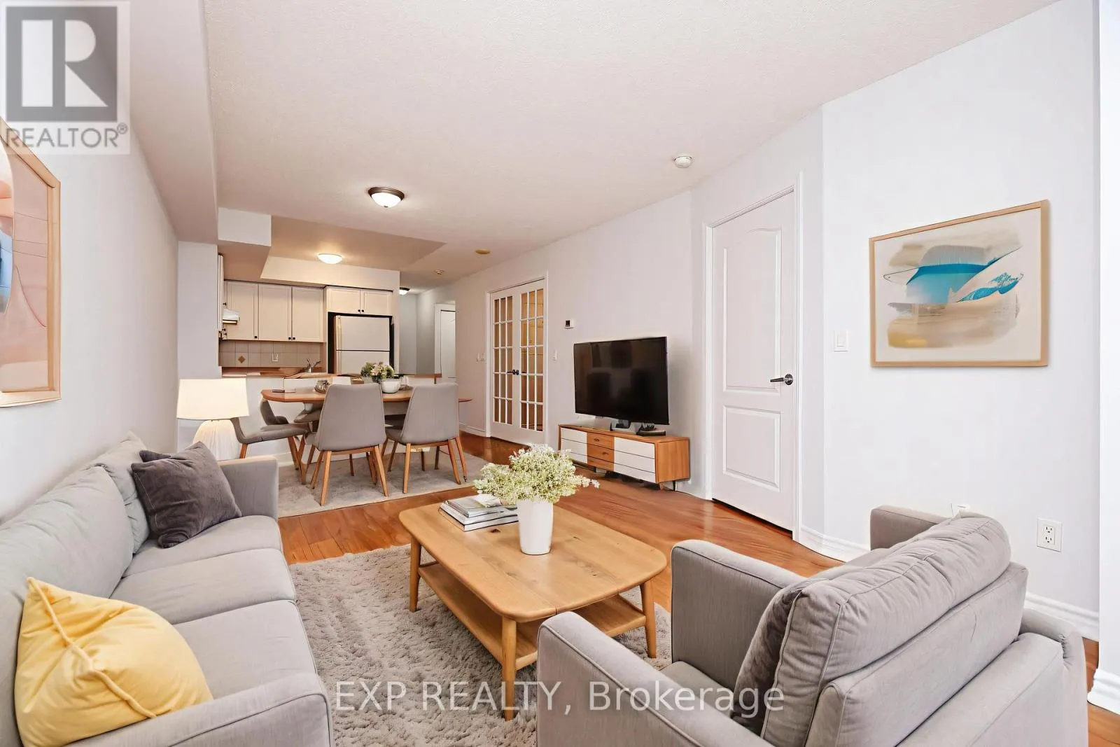 Cross Streets: Bayview and Sheppard. ** Directions: Google Maps. Welcome to this beautifully maintained 1 bedroom plus den residence in the heart of highly sought-after Bayview Village. Thoughtfully designed, this spacious suite features two full washrooms and a versatile den with elegant French doors, easily used as a second bedroom, home office, or guest space.Enjoy breathtaking views of Lake Ontario and the iconic CN Tower from the comfort of your unit, offering a stunning backdrop both day and night. The open-concept layout is enhanced by rich hardwood floors throughout, creating a warm and refined living space ideal for both everyday living and entertaining.This exceptional home includes the rare convenience of two parking spaces located just steps from the elevators - a true luxury for condo living. Both the unit and the building have been meticulously cared for, reflecting pride of ownership at every turn. Residents enjoy access to premium amenities including a fully equipped gym, party room, billiards room, an indoor swimming pool, hot tub, and dry sauna, perfect for relaxation and wellness year-round. Located in a beautifully landscaped and well-managed building, you're moments from Bayview Village Shopping Centre, transit, dining, parks, and all the conveniences of urban living while being tucked into a serene, established community. A perfect blend of comfort, functionality, and location - this is an outstanding opportunity to own a move-in-ready home in one of Toronto's most desirable neighbourhoods. (id:27476)