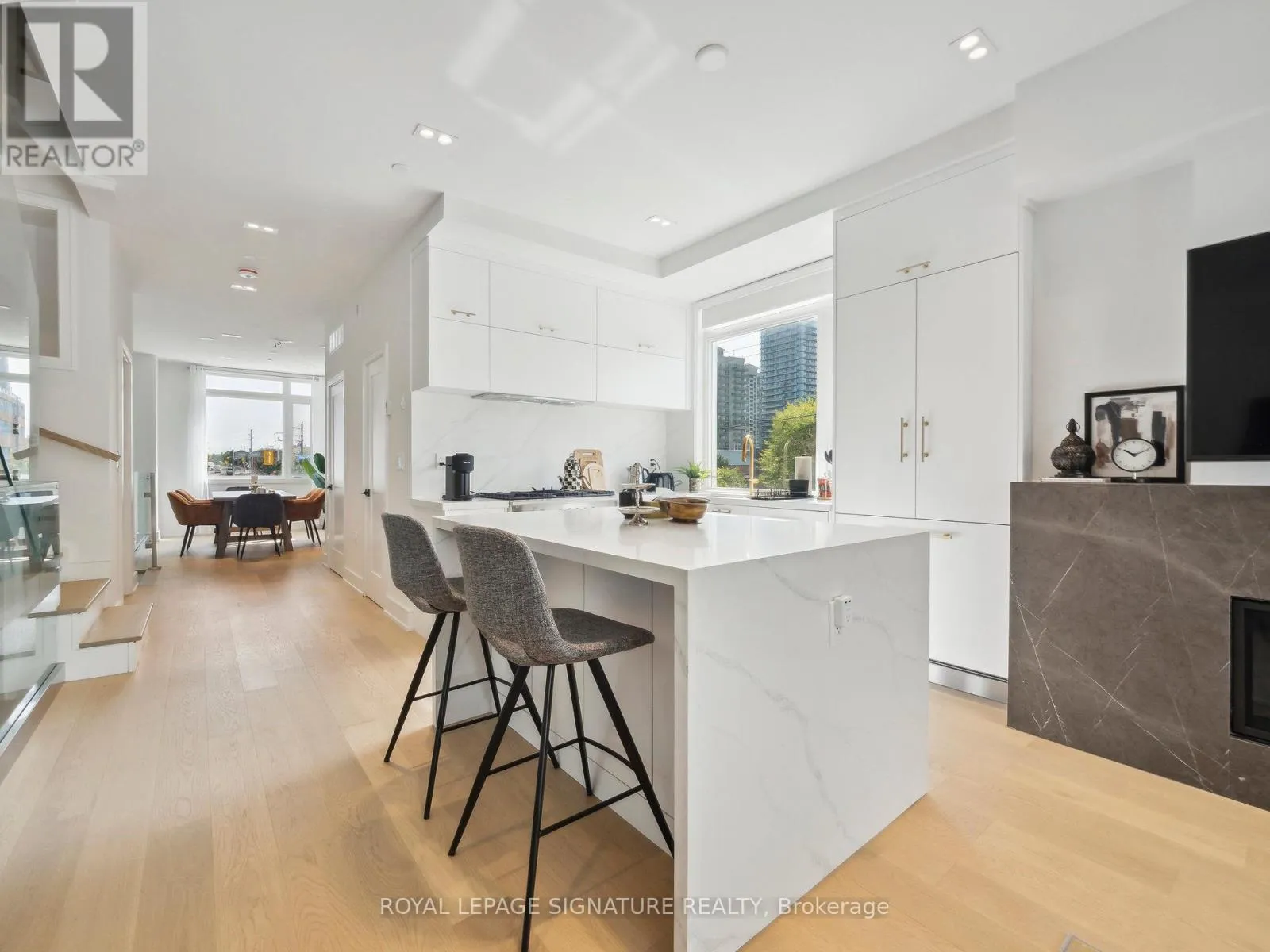 Cross Streets: Yonge-Sheppard/Finch. ** Directions: Yonge-Sheppard. Indulge in the pinnacle of luxury living within this newly constructed town house nestled in the highly coveted Willowdale neighborhood. Boasting a generous 2600 sq ft floor plan, the largest in the complex, this corner unit features an elevator and abundant natural light, making it a showcase of exceptional craftsmanship and unmatched elegance spread over three expansive levels.Step inside to discover a harmonious fusion of sophistication and comfort, defined by premium features such as rich hardwood flooring, a state-of-the-art white kitchen replete with quartz countertops and luxury appliances, and a charming gas fireplace that adds warmth to theambiance.Experience tranquility in each of the five generously sized bedrooms, with the primary suite serving as a private retreat complete with a dual vanity, a luxurious soaker tub, and a spacious standing shower.Outside, the picturesque patio beckons with awe-inspiring vistas of the surrounding nature and the mesmerizing city skyline. (id:27476)
