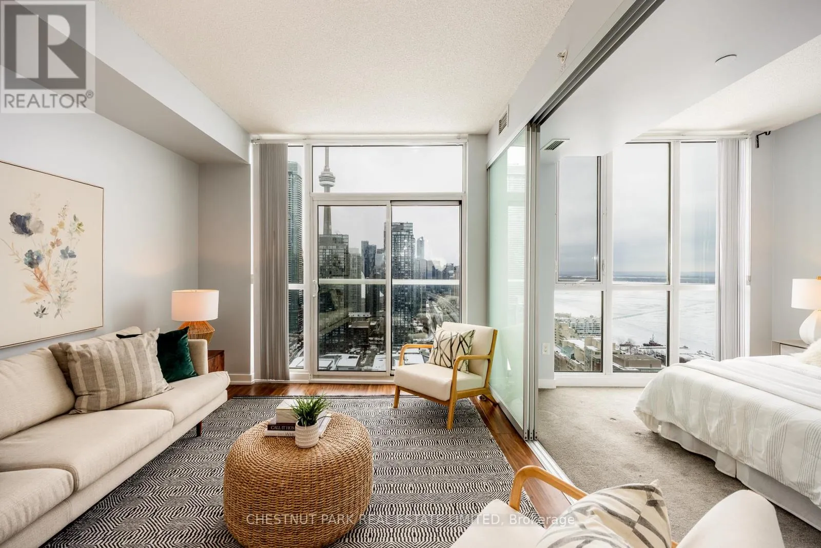 Cross Streets: Lake Shore and Bathurst. ** Directions: Lake Shore and Bathurat. Spectacular South East-facing, unobstructed views of the park, water, and city skyline from this light-filled and airy 1+1 bedroom condo with parking. Do not miss these gorgeous lake views. The spacious open-concept layout offers excellent flow for everyday living and entertaining. The primary living spaces have soaring 8'11" ceilings! The generous primary bedroom overlooks the park and lake, while a versatile den provides ideal space for a home office or guest area. The modern kitchen features stainless steel appliances, quartz countertops, and space for an eat-in area, opening to a well-sized living room with a Juliet balcony. A welcoming foyer with a large closet adds practical storage. Perfectly situated close to the TTC, Harbourfront, Rogers Center, Gardiner Expressway, Billy Bishop airport, Toronto Waterfront, parks, shops, restaurants, and bars with unbeatable convenience. Incredible amenities including a 24 hour concierge, visitors parking, games and theatre room, Party room with kitchen, guest suites, full size gym, fitness, weight, and cardio, yoga studio, indoor pool with a sauna, outdoor terrace, pet spa. (id:27476)