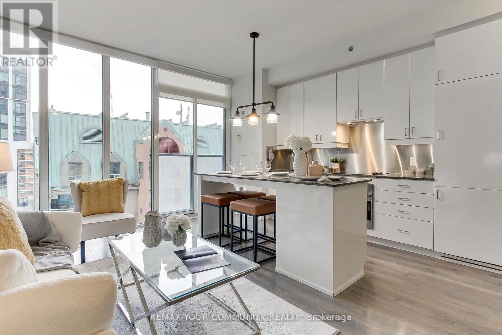 University & Dundas Welcome to #1002 - 426 University Ave! One-of-a-kind building here at The Residences at RCMI! Built with pride and attention to detail by luxury builder Tribute Communities and Zeidler Partnership Architects, a landmark development with Toronto's largest military history museum greeting you. Beautiful contemporary one bedroom unit with 9 ft ceilings, floor-to-ceiling windows and efficient layout that maximizes 538sqft of living space. Modern open-concept kitchen with integrated appliances, central granite island and ample cabinetry. Large closet provides extra storage in addition to locker. Amenities include large gym and friendly 24/7 Concierge to welcome you home. Excellent location with near-perfect 99 walk score and a 100 transit score, with St. Patrick TTC subway station just a minute away. Walkable access to U of T, OCAD, major hospitals, Queens Park, the Financial District, AGO, City Hall, Eaton Centre and the University Health Network. Beautiful unit, excellent location to call home! (id:27476)