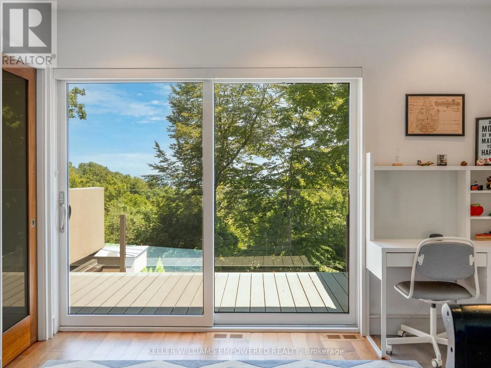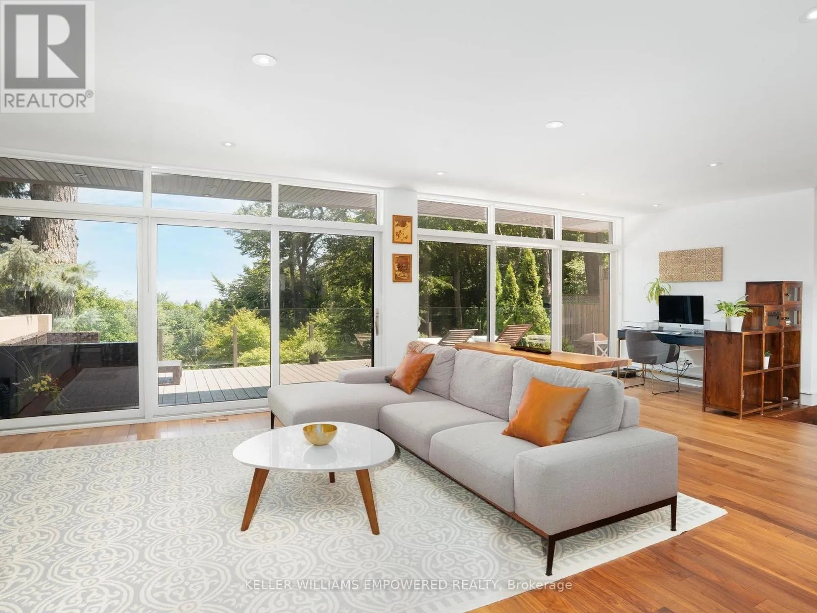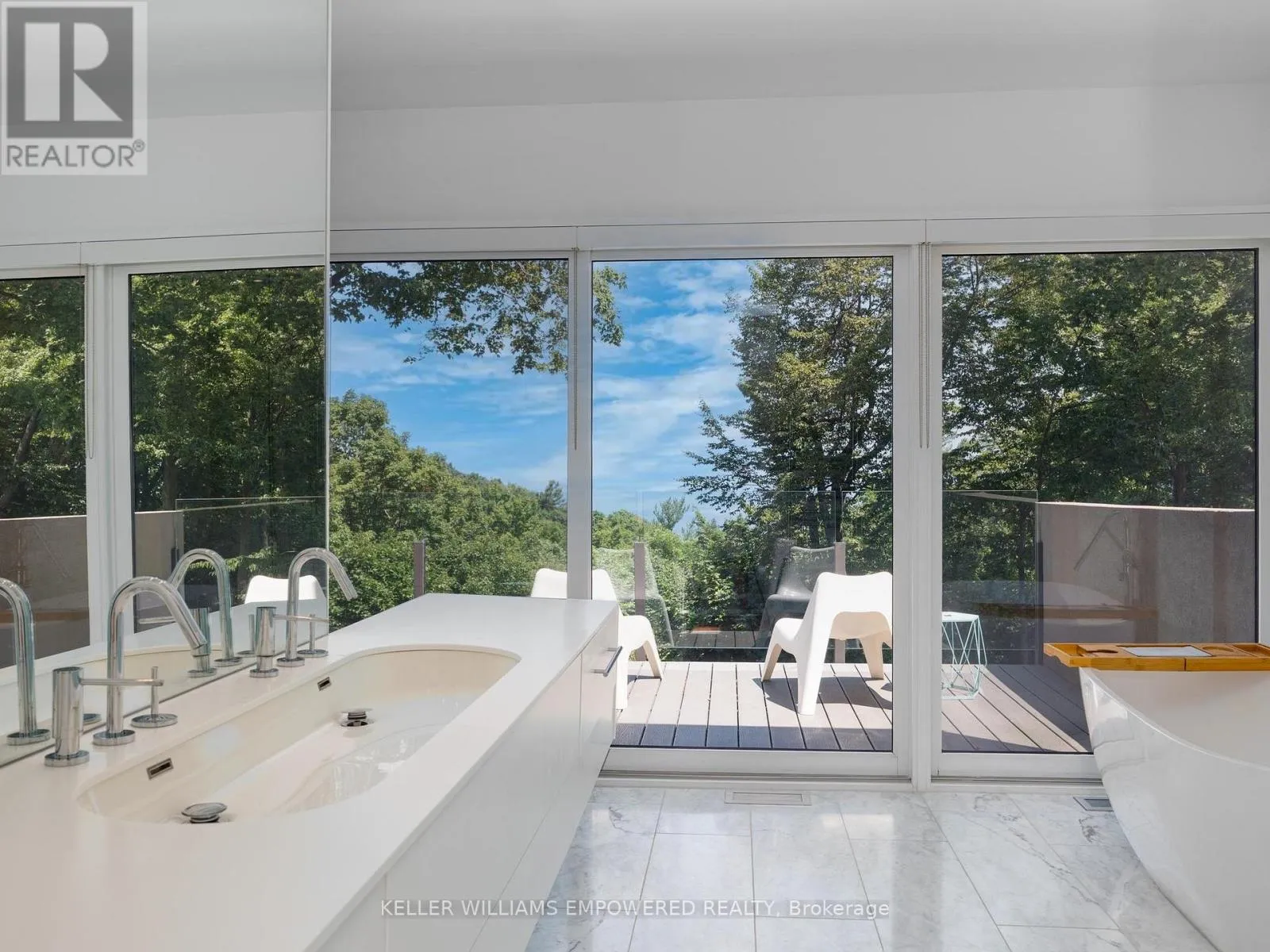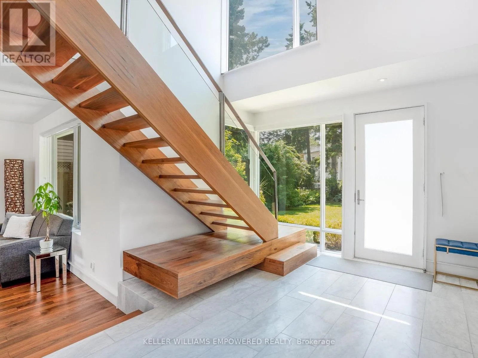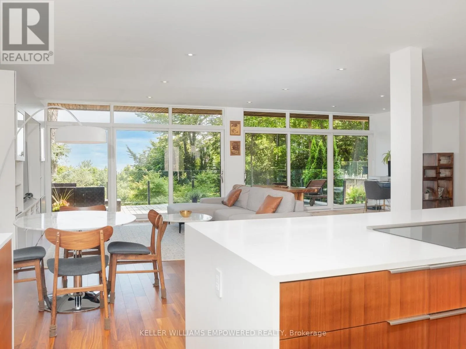 Kingston Road & McCowan Road Discover this exceptional lake-view residence, where contemporary design meets serene natural beauty. This stunning home features a sleek open-concept layout, accented by expansive windows and multiple walkouts, showcasing unobstructed views of Lake Ontario and lush conservation land. From the moment you step into the grand foyer with soaring 18.5-foot ceilings, a statement chandelier, oversized marble slab flooring, a two-storey window, and a custom Walnut guest closet you'll be captivated by the sophisticated details throughout. The main level is an entertainers dream, offering a seamless flow between the spacious living, dining, and family rooms, all adorned with pot lights and rich Walnut flooring. The chef-inspired kitchen is the heart of the home, boasting a dramatic waterfall island with Stone countertops, seating for four, and custom pull-out organizers. This space opens directly to multiple outdoor entertaining decks, perfect for hosting or relaxing while enjoying panoramic views. Ascend the striking open-riser Walnut staircase, framed with glass railings and stainless steel handrails, to find a luxurious primary retreat. The serene primary suite offers a private sanctuary, complete with its own balcony, window wall with lake views, a custom dressing room with skylight and extensive cabinetry, and a spa-like ensuite featuring heated floors and serene conservation views. The fully finished walk-out lower level adds even more space to unwind, with a large recreation room featuring heated floors and direct access to the beautifully landscaped rear grounds. Enjoy quiet evenings around the firepit or take advantage of the convenient access to the upper decks, seamlessly connecting indoor and outdoor living. This exceptional property offers the rare combination of modern luxury, privacy, and spectacular natural surroundings perfect for those who love to entertain or simply soak in the beauty of the outdoors. Video and audio may be on during viewings. (id:27476)