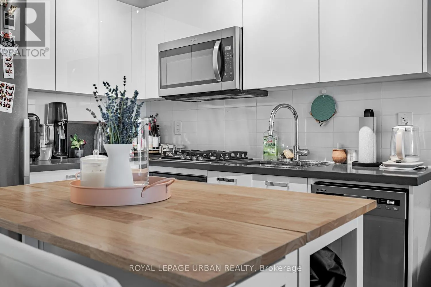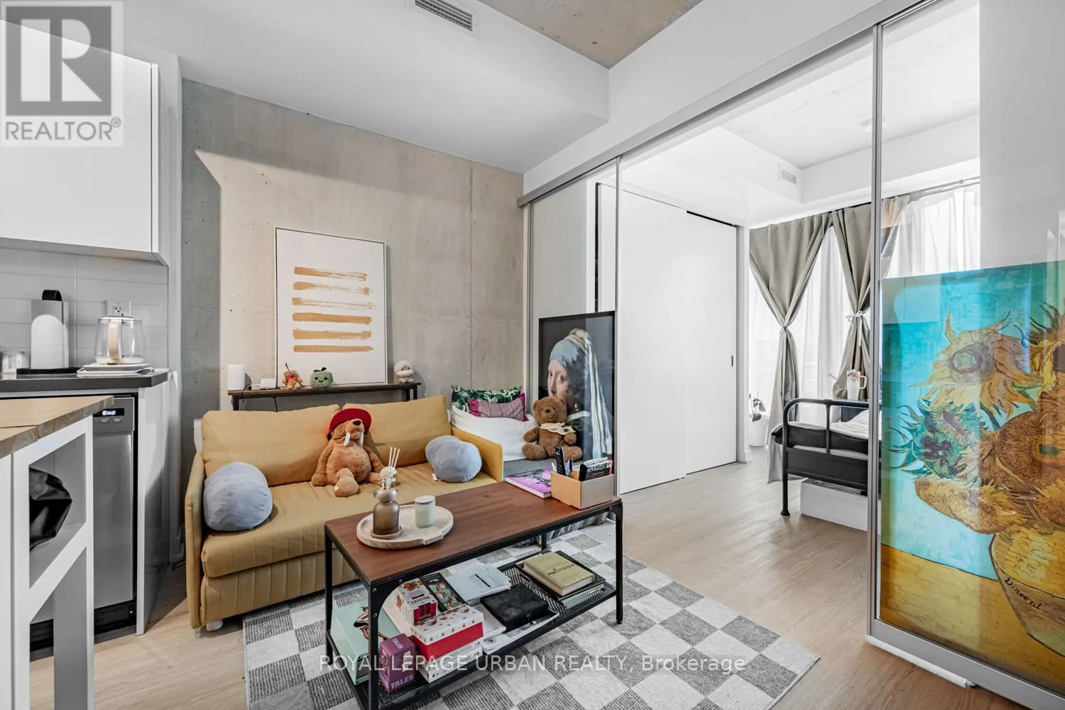 Cross Streets: University Avenue & Elm Street. ** Directions: Access McCaul Street from Elm Street or Orde Street. The Bread Company Condos by Lamb Development (2024). Bright and functional 1+1 bedroom offering stylish loft living with modern finishes throughout. Features exposed 9-ft concrete ceilings, open-concept layout, and west exposure with floor-to-ceiling windows and glass sliding doors that flood the space with natural light. The sleek kitchen offers ample storage and integrated stainless steel appliances, including a gas stove. Separate den provides flexible additional space for a home office or guest area. Spa-inspired four-piece bathroom showcases marble tile, soaker tub, and a large vanity with generous storage. PARKING INCLUDED. This convenient location truly has it all. Just steps to St. Patrick Station, the Dundas streetcar, University of Toronto, Queen's Park, Art Gallery of Ontario, Grange Park, Baldwin Village, Mount Sinai Hospital, Toronto General Hospital and SickKids Hospital. Minutes to Kensington Market, the Entertainment, Financial, and Fashion Districts. Surrounded by a vibrant mix of cultural restaurants, fitness clubs and gyms, chic cafés, upscale bars, and premier shopping in Queen West. (id:27476)