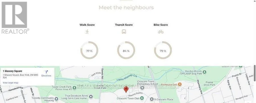 Victoria Park and Danforth Ave Spacious 1-bed, 1-bath at Massey Sq with modern finishes: Cambria Quartz counters/backsplash, soft-close cabinets, Carrera marble vanity, A/C, ensuite laundry & oversized balcony (2nd Floor only). Includes heat, hydro, water & cable! Enjoy Crescent Town Club amenities-pool, gym, squash, running track & more- Steps to Victoria Park Station, parks, shops, and everyday essentials. On-site daycare, grocery, pharmacy & more. (id:27476)