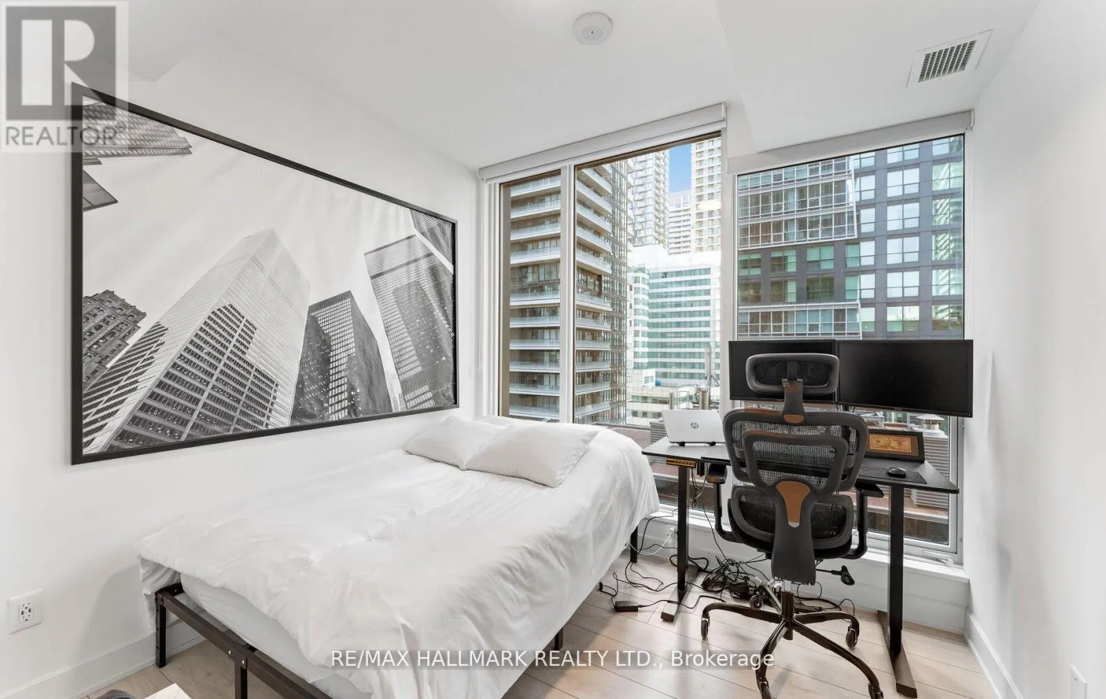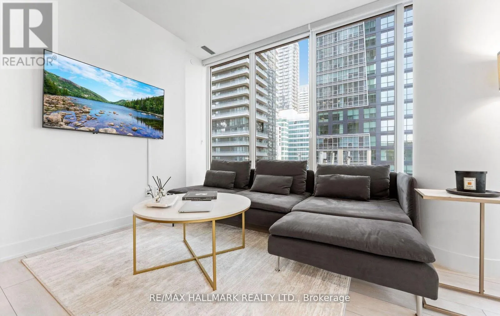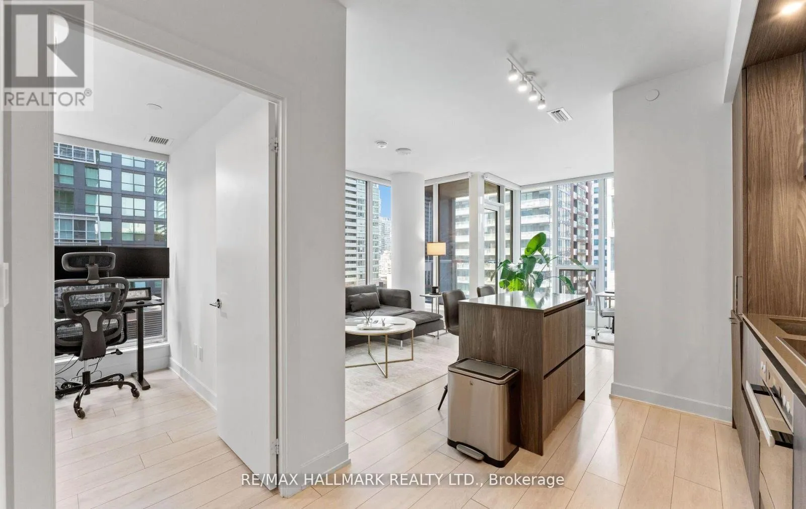 King St W & Blue Jays Way Welcome to the prestigious Nobu Residences, where world-class luxury meets urban sophistication in the heart of Torontos vibrant Entertainment District. This rare 2-bedroom + den, 2-bathroom corner suite offers an exceptional 756 sq. ft. of beautifully designed interior space, complemented by a 28 sq. ft. balcony with breathtaking city views. Soaring 9-foot ceilings, floor-to-ceiling windows, and rich laminate flooring create a light-filled, expansive atmosphere, while the open-concept layout seamlessly connects living, dining, and entertaining spaces. The gourmet kitchen is a chefs dream, complete with integrated Miele appliances, quartz countertops, and a matching backsplash. The spa-inspired bathrooms are adorned with elegant finishes, and the primary suite features a designer ensuite and custom closet organizers. The versatile den offers endless possibilities as a home office, guest room, or reading lounge. Residents enjoy access to five-star amenities including a state-of-the-art fitness centre, hot tub, sauna, yoga studio, private dining, screening room, and the exclusive Nobu Villa terrace. With the iconic NOBU restaurant on-site, and mere steps to the subway, PATH, CN Tower, Rogers Centre, and the Financial District, this is truly elevated urban living at its finest. Dont miss the opportunity to call this architectural masterpiece home. (id:27476)