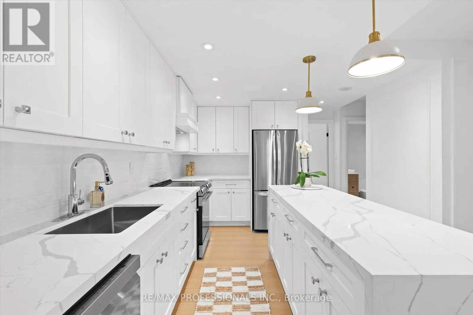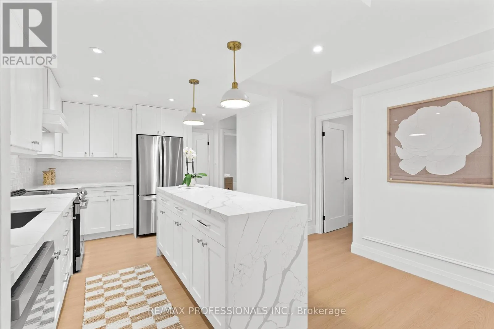 Burnhamthorpe/Mill Welcome to this beautifully renovated, boutique-like 3-bedroom, 2-bathroom corner unit, offering over 1,100 square feet of modern living space. Flooded with natural light from multiple exposures, the layout feels open and airy the moment you walk in. The home features Canadian-made laminate floors throughout, elegant wainscoting, sleek pot lighting, and custom-built closets that maximize storage. The custom-designed, open-concept kitchen with a waterfall island is a true showstopper, complete with all-new appliances and refined quartz countertops-perfect for cooking, entertaining, and everyday living. Luxury is redefined in both bathrooms, featuring Italian-made tiles and tasteful modern finishes. Every room feels bright, spacious, and inviting. Fully updated from top to bottom, this move-in ready unit truly redefines luxury and comfort. Maintenance fees are all-inclusive, covering hydro, heat, water, air conditioning, Rogers cable, and high-speed unlimited internet. The building offers an impressive array of amenities, including indoor and outdoor pools, sauna, a newly renovated recreation center with gym, ping pong, squash court, golf simulator, party room, outdoor playground, basketball court, and tennis court. Ideally located next to top-rated schools and Centennial Park, with TTC at your doorstep and quick access to Highways 427, 401, and QEW, airport, shopping, golf, and more-just move in and enjoy! (id:27476)