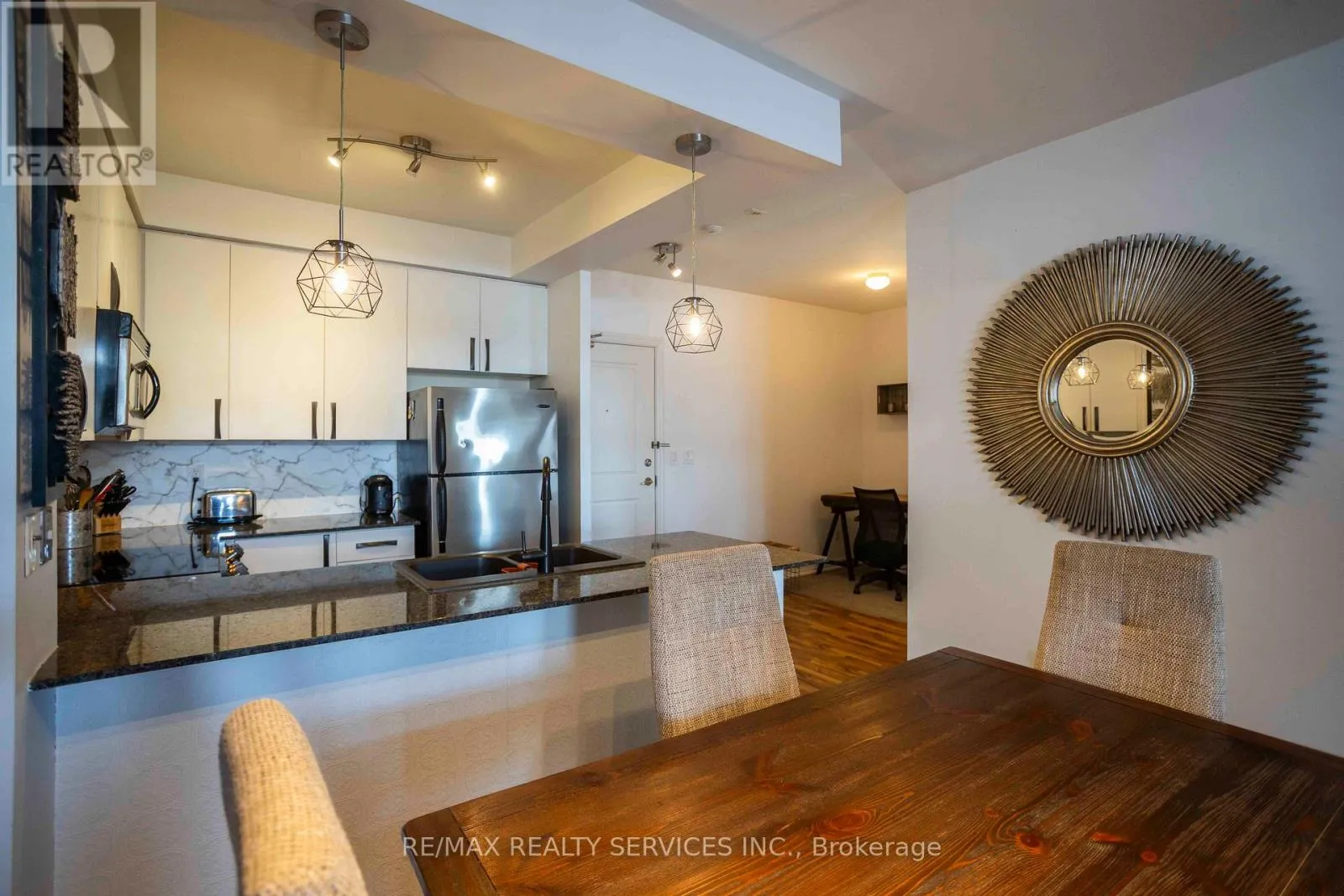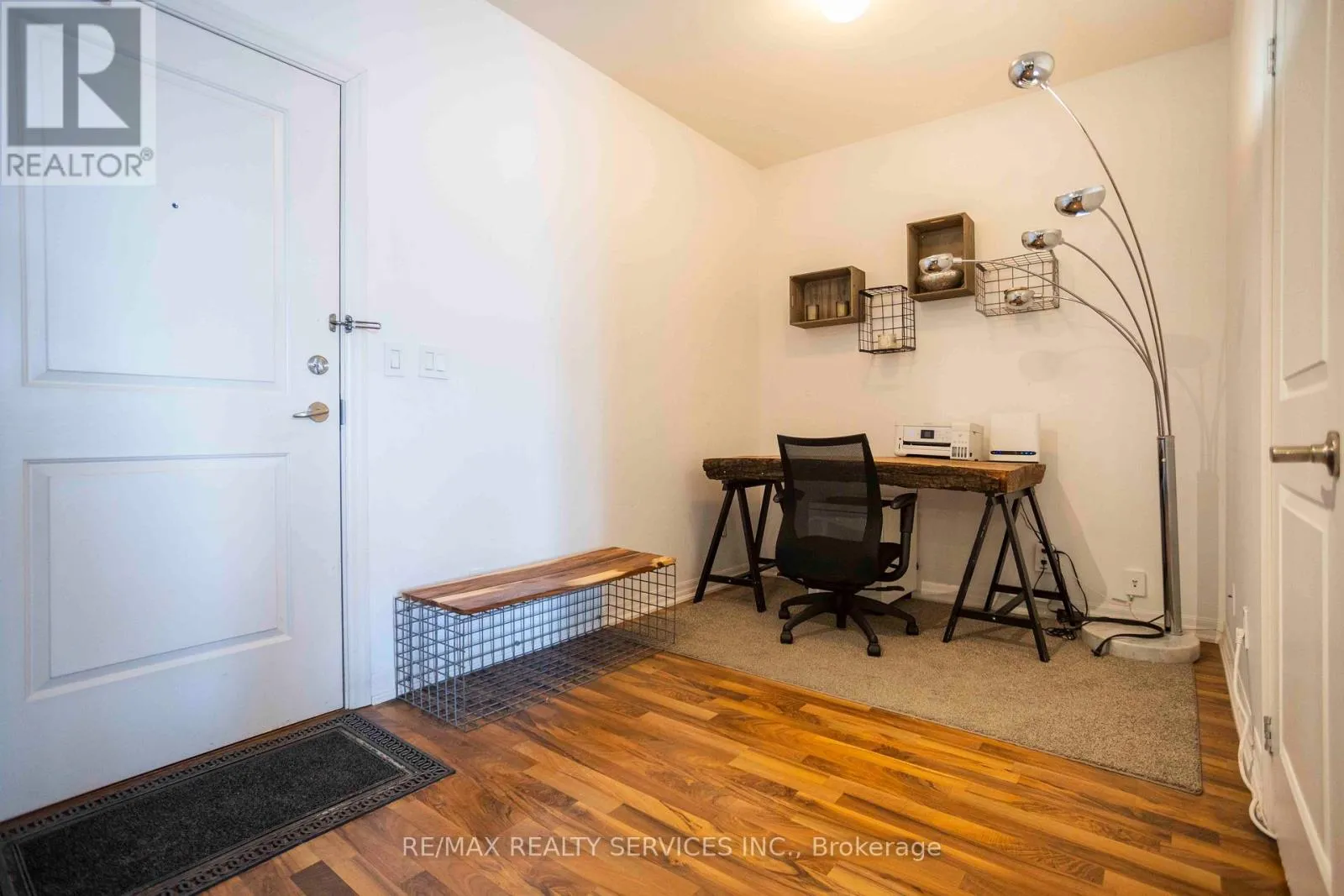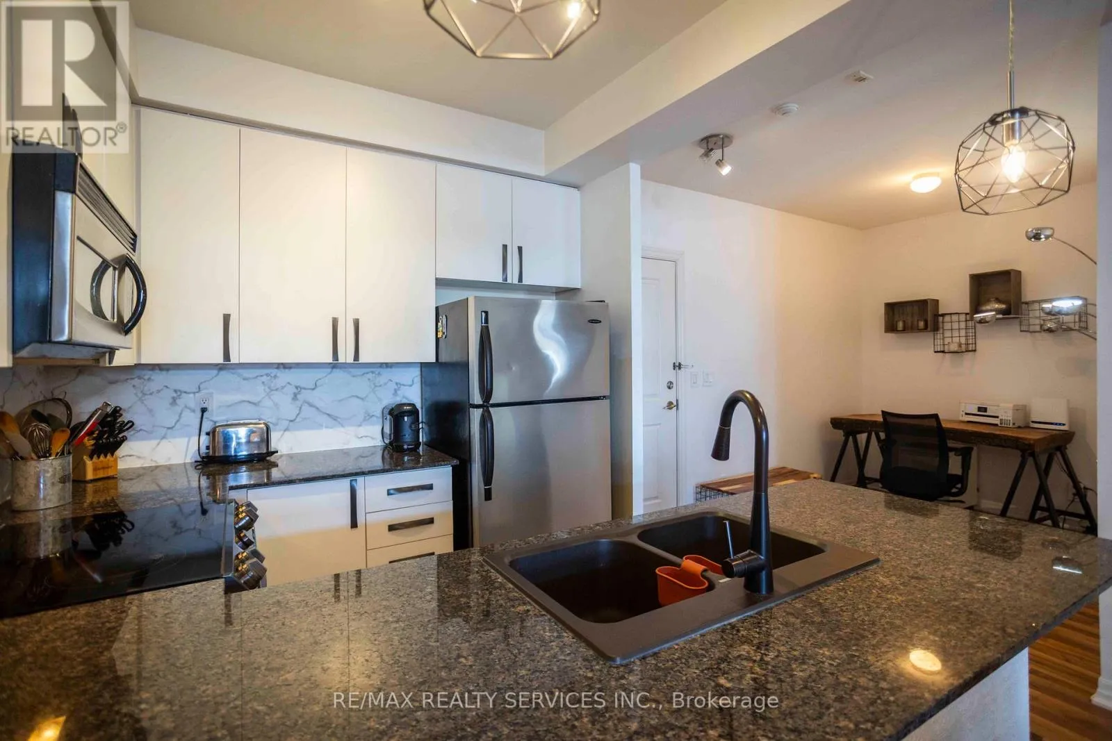The Queensway & Park Lawn Welcome to The Dalesford. This beautifully fully furnished 1 bedroom plus large den, 1 bathroom condo offers approximately 745 square feet of thoughtfully designed living space with an east-facing terrace in the highly sought-after Stonegate-Queensway neighbourhood.The bright, open-concept living and dining area is filled with natural light and features warm flooring throughout. The fully equipped kitchen offers all the bells and whistles, including granite countertops, a breakfast bar, quality appliances, and excellent storage, making it ideal for both everyday living and entertaining.Step out from the living area to the private terrace featuring a gas BBQ hookup, perfect for outdoor dining, relaxing, or hosting guests while enjoying treetop and skyline views.The primary bedroom is generously sized with a large window and ample closet space. The oversized den is highly versatile and can function as a home office, guest room, or additional sleeping area depending on the tenant's needs.Additional features include in-suite laundry, one parking space, one locker, and furnishings throughout, offering a truly turnkey, move-in-ready opportunity.Conveniently located steps to parks, shops, cafes, public transit, and with easy access to major highways, this home offers comfort, convenience, and connectivity in a vibrant Etobicoke community.Ideal for professionals or tenants seeking a fully furnished, well-appointed condo in a well-managed building. (id:27476)