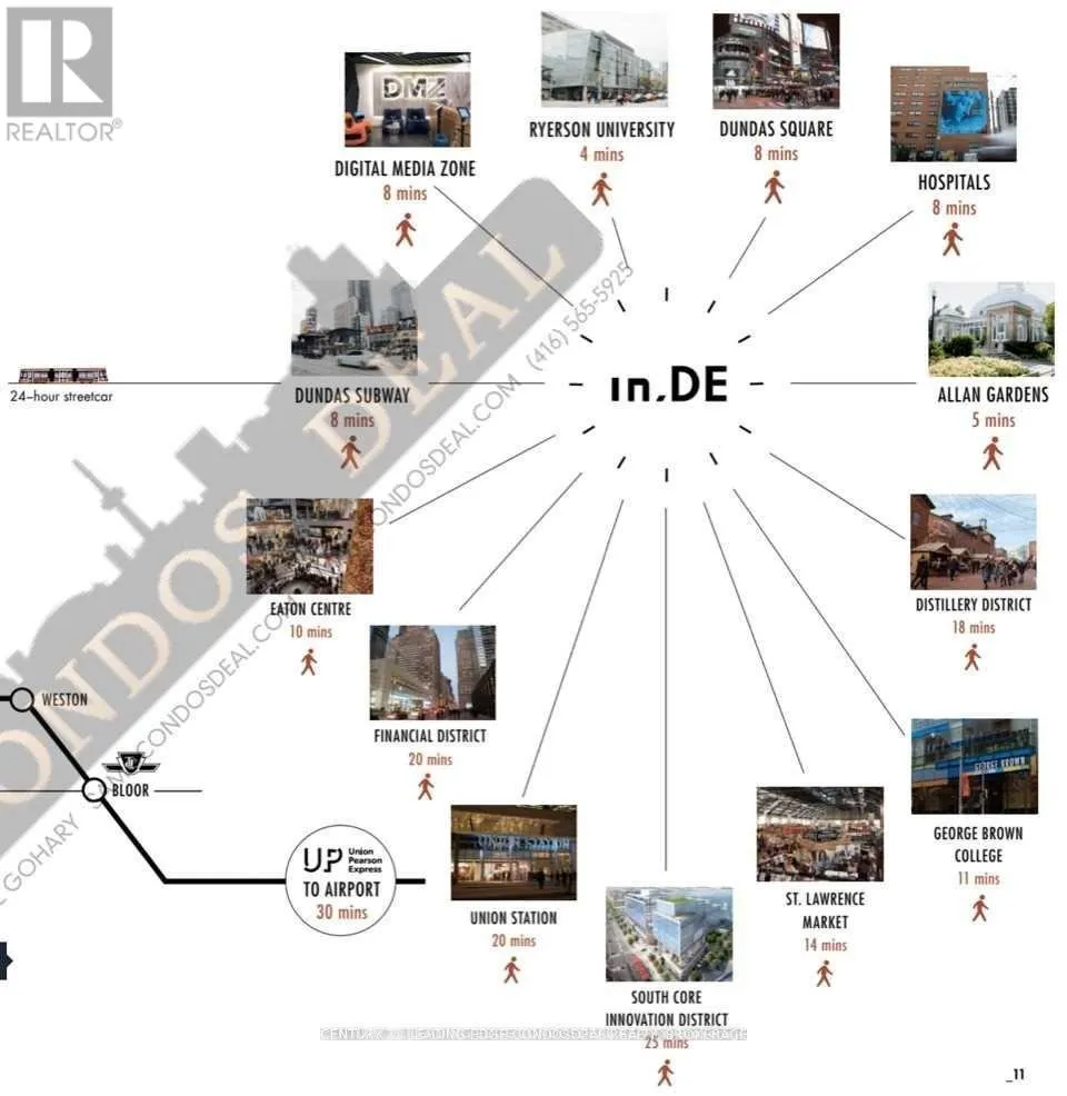 Dundas Street East and Jarvis Welcome to Unit 808 at in.DE Condos - a bright and functional 1 Bedroom + Den suite offering 569 sq ft of thoughtfully designed living space. Open-concept kitchen and living area with laminate floors, granite countertops, and stainless steel appliances. Spacious bedroom, versatile den ideal for home office, 4-pc bath, and ensuite laundry. Downtown location with TTC transit at your doorstep, just minutes to Toronto Metropolitan University and a short walk to Yonge-Dundas Square. Building amenities include concierge, fitness centre, party/lounge room, guest suites, rooftop terrace with BBQ, and more. Perfect for professionals or students seeking modern urban living. (id:27476)