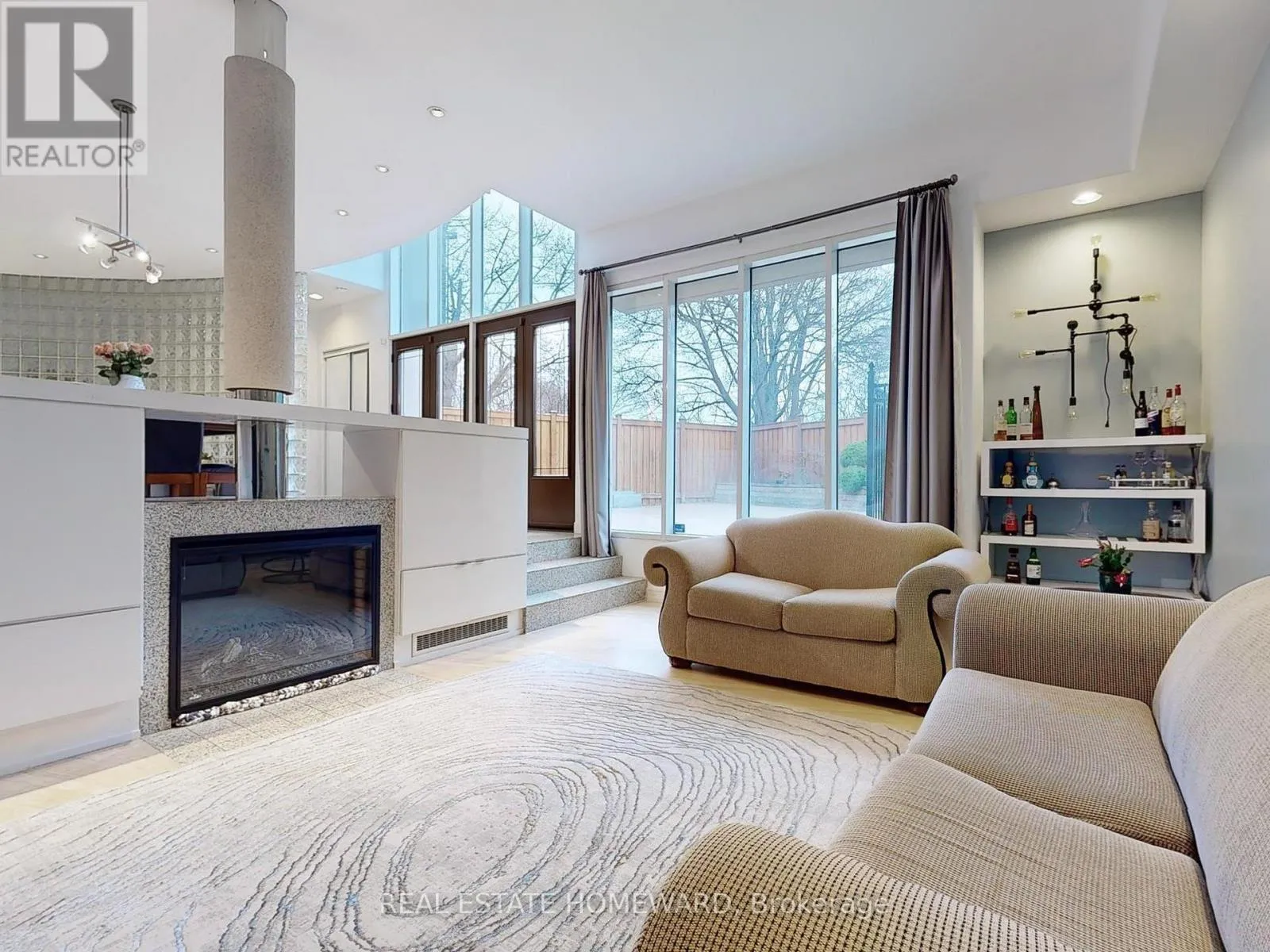 Cross Streets: York Mills /Don Mills. ** Directions: York Mills/Dvp. ***Built on Two Lots*** ,This exceptional home was designed by renowned architect Susan Black, whose visionary work earned an award for this very design. The house showcases her signature blend of innovation and elegance, making it not just a residence but a piece of architectural history. Featured in the Globe and Mail on November 20 2005 , this house is celebrated as "Thoroughly modern but never cold" . The main floor boasts five expansive living areas seamlessly connected , with no doors to divide the space yet offering an intimate sense of privacy. A stunning 14 foot cathedral ceiling, loft inspired design elements, and open spaces create an atmosphere of grandeur. Four glass doors lead to different areas of the backyard, ensuring a harmonious indoor-outdoor flow. With 6 fireplaces scattered throughout, this home becomes the ultimate destination for both vibrant entertaining and cozy family evenings. The master suite is truly a dream come true, a retreat with two walks-out to a private terrace the size of a one-bedroom condo . This luxurious space is set apart from the rest of the second floor by a floating passage, offering tranquility and exclusivity. A diagonal skylight spans the entire second floor, flooding the home with natural light. The spa-like ensuite pampers you with a hidden sauna, while the extended skylight illuminates the walk-in closet and the hallway leading to the second floor common area . Here, you'll find a cozy space, perfect for a reading nook or a nightly gathering before bedtime. This area connects the remote master bedroom to another three generously sized bedrooms and invites you to pause and reflect. Floor to ceiling loft-sized windows stretch from ground to roof, framing breathtaking views of each season , filling the house with light. This one-of-a-kind residence , is designed for those who value elegance , openness and the perfect balance of modern comfort and timeless warmth. (id:27476)