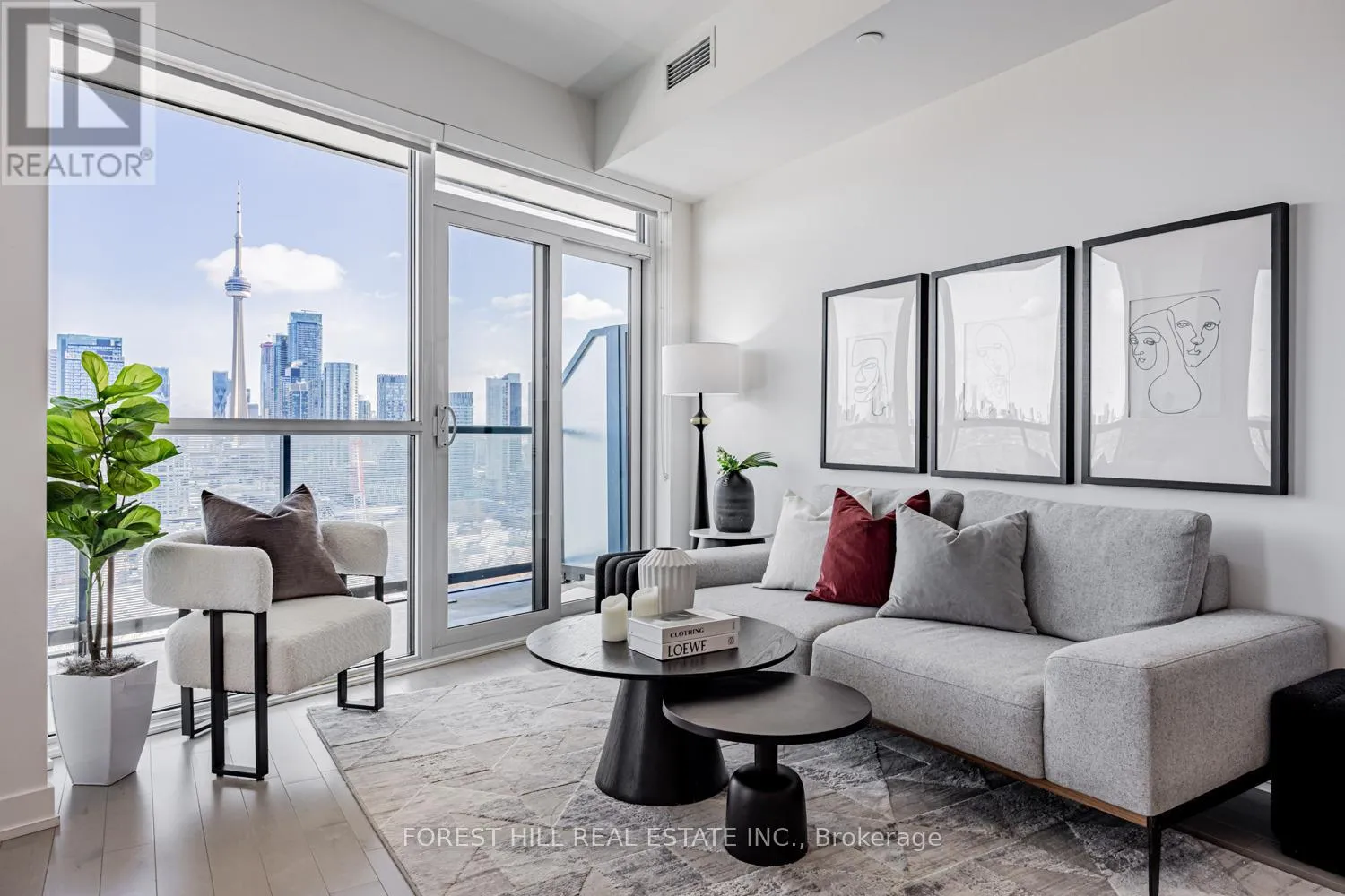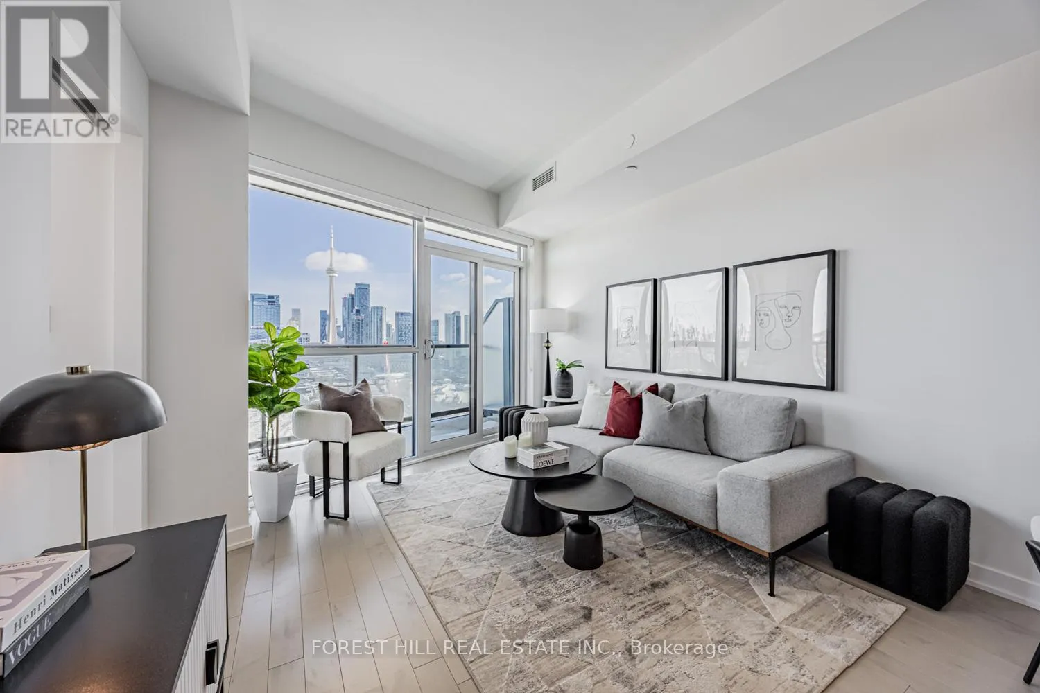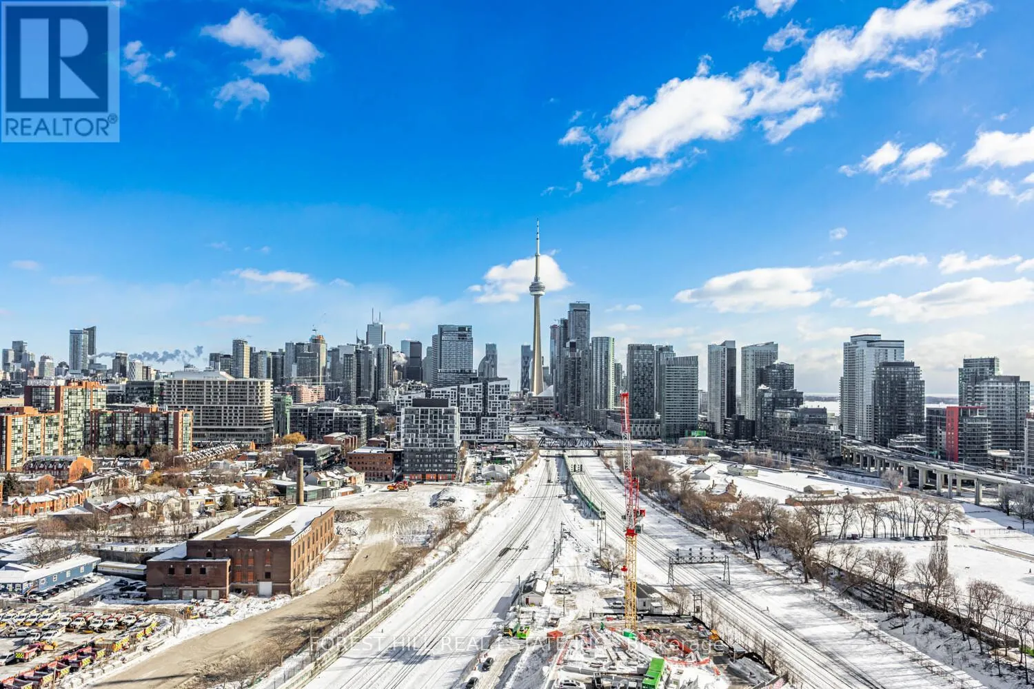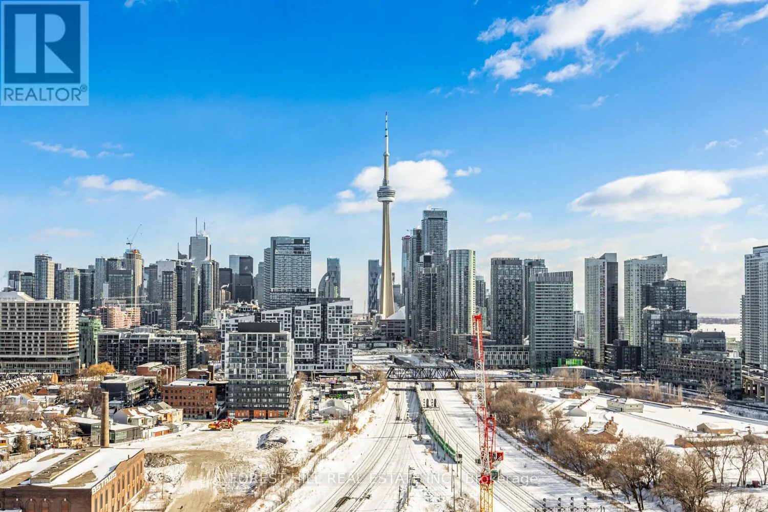 Strachan Ave & East Liberty St **Rarely Offered** Luxurious One Bedroom + Den (With Sliding Door + 2 Windows) Corner Suite At Garrison Point In the Heart Of Liberty Village, One Locker Included! Featuring Stunning UNOBSTRUCTED View Of The CN Tower And Lake Ontario! One Of The Largest Models With 647 Sq.Ft Of Living Space + 2 Large Balconies. Bright And Spacious, Premium 9'2" High Ceilings, Floor-To-Ceiling Windows Throughout Providing Tons Of Natural Light. Den Has A Sliding Door And TWO Large Windows (Can Be Used As A 2nd Bedroom Or Perfect For A Home Office). $$$Full Of Upgrades, Appx $15K Spent: Upgraded Premium Hardwood Flooring Throughout, Upgraded Kitchen With Caesarstone Countertop, Moen Pulldown Faucet, 19'' Single Bowl Stainless Steel Undermount Sink, Upgraded Bathroom With Frameless Glass Shower, Porcelain Floor & Wall, Caesarstone Countertop, Upgraded LG Front Loading Washer And Dryer, Premium Roller Blinds In All Rooms & More! Conveniently Located In Liberty Village With Easy Access To TTC, GO Transit, Gardiner Expressway, King West, Queen West, Roncesvalles, Waterfront, Etc. Steps To Grocery, Shops, Restaurants, Parks, Lake, Biking/Running Trails, Coffee Shops, Everyday Conveniences, BMO Field, Enercare Centre, Beanfield Centre. Resort-Style Amenities: Outdoor Pool, Sundeck, Kids Playroom, Gym With Yoga Studio, Steam Room, Sauna, Theatre. Ideal For Vibrant Urban Living With Modern Comfort And Excellent Investment Potential. (id:27476)