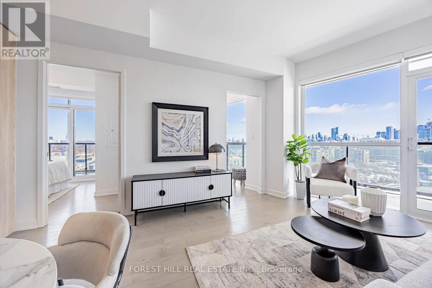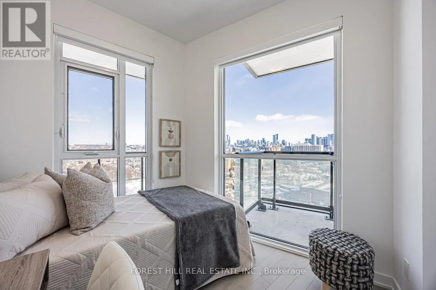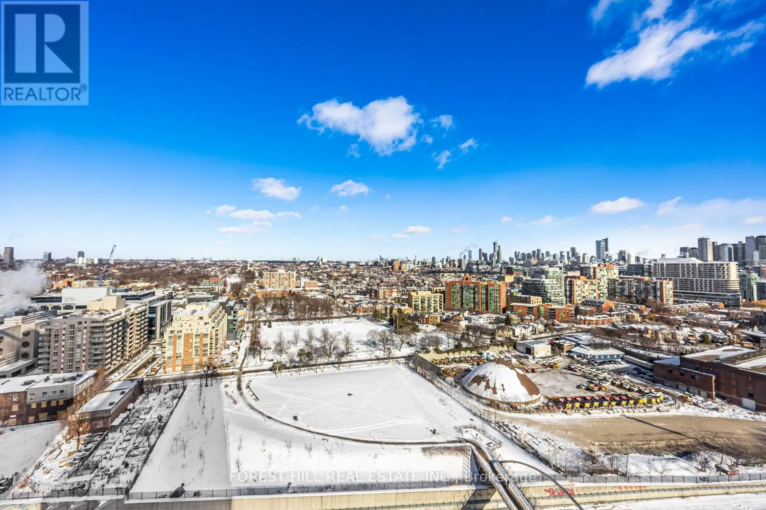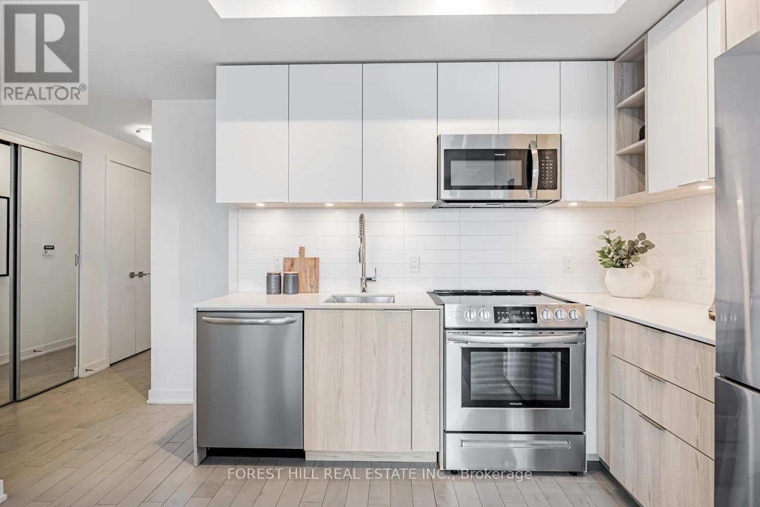 Strachan Ave & East Liberty St **Rarely Offered** Luxurious One Bedroom + Den (With Sliding Door + 2 Windows) Corner Suite At Garrison Point In the Heart Of Liberty Village, One Locker Included! Featuring Stunning UNOBSTRUCTED View Of The CN Tower And Lake Ontario! One Of The Largest Models With 647 Sq.Ft Of Living Space + 2 Large Balconies. Bright And Spacious, Premium 9'2" High Ceilings, Floor-To-Ceiling Windows Throughout Providing Tons Of Natural Light. Den Has A Sliding Door And TWO Large Windows (Can Be Used As A 2nd Bedroom Or Perfect For A Home Office). $$$Full Of Upgrades, Appx $15K Spent: Upgraded Premium Hardwood Flooring Throughout, Upgraded Kitchen With Caesarstone Countertop, Moen Pulldown Faucet, 19'' Single Bowl Stainless Steel Undermount Sink, Upgraded Bathroom With Frameless Glass Shower, Porcelain Floor & Wall, Caesarstone Countertop, Upgraded LG Front Loading Washer And Dryer, Premium Roller Blinds In All Rooms & More! Conveniently Located In Liberty Village With Easy Access To TTC, GO Transit, Gardiner Expressway, King West, Queen West, Roncesvalles, Waterfront, Etc. Steps To Grocery, Shops, Restaurants, Parks, Lake, Biking/Running Trails, Coffee Shops, Everyday Conveniences, BMO Field, Enercare Centre, Beanfield Centre. Resort-Style Amenities: Outdoor Pool, Sundeck, Kids Playroom, Gym With Yoga Studio, Steam Room, Sauna, Theatre. Ideal For Vibrant Urban Living With Modern Comfort And Excellent Investment Potential. (id:27476)
