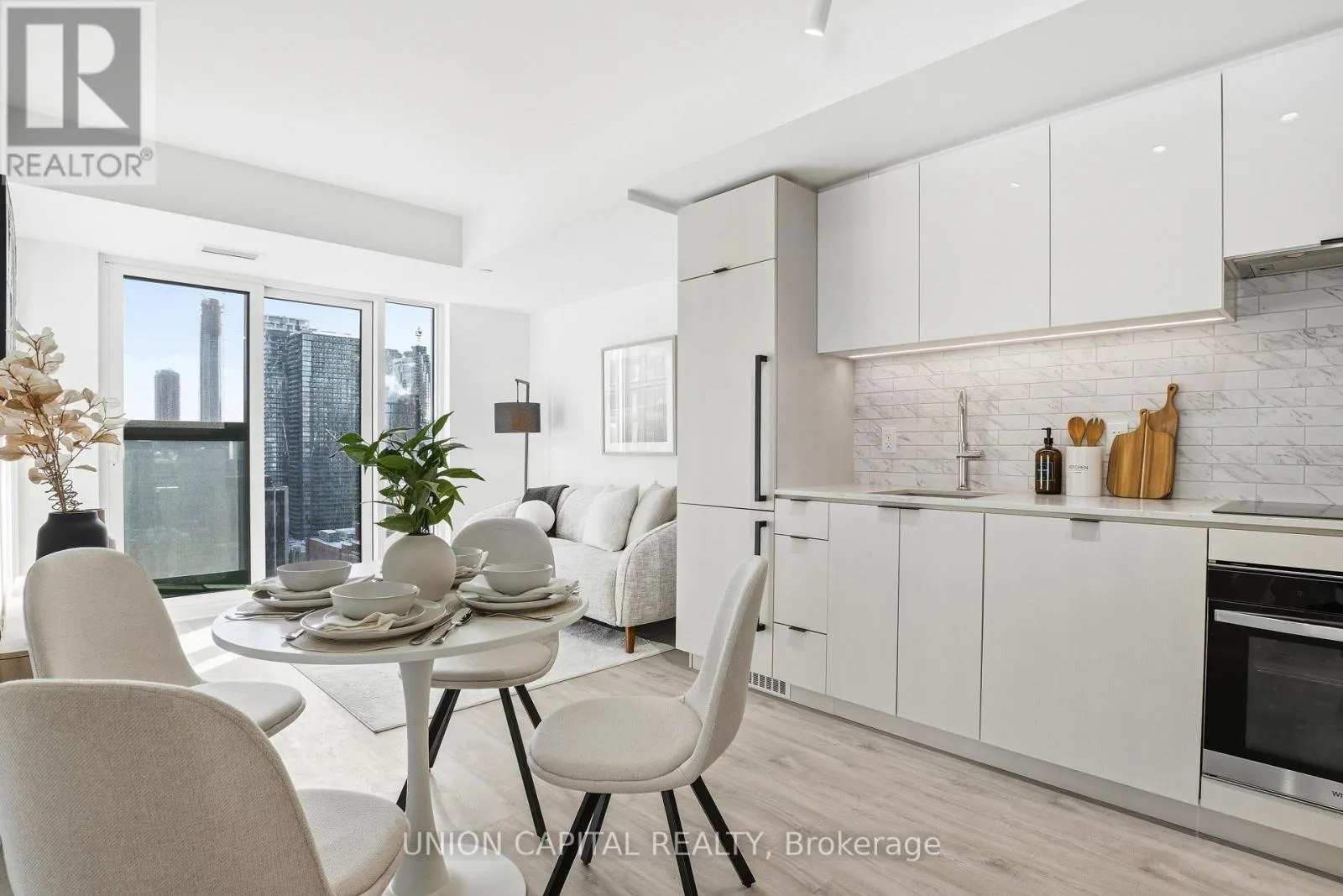 Church St / Dundas St E Discover elevated city living at 252 Church Street. This brand-new two-bedroom, two-bathroom corner suite features an ideal layout with bright southeast exposure and floor-to-ceiling windows that flood the home with natural light. The primary bedroom includes a private ensuite, while the contemporary kitchen is equipped with sleek, high-end finishes and integrated appliances. Residents enjoy over 18,000 sq. ft. of premium amenities, including a 24-hour concierge, state-of-the-art fitness centre with CrossFit, yoga, and Peloton zones, co-working lounges, games and media rooms, party and meeting spaces, as well as outdoor BBQ and dining terraces. Perfectly situated at Church & Dundas, just steps to Yonge-Dundas Square, transit, dining, and shopping. (id:27476)