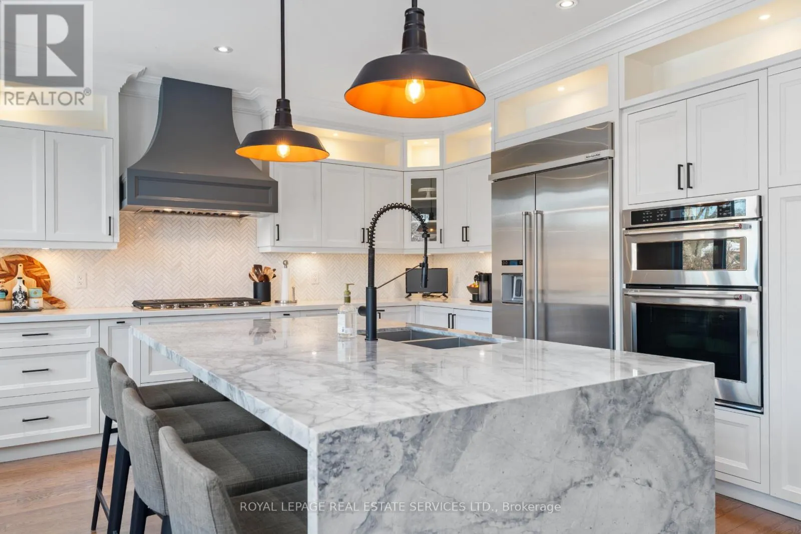 Cross Streets: Royal York Rd & Bloor. ** Directions: North of Royal York / Bloor. Welcome to this stunning custom-built residence in the heart of the beloved Kingsway - where timeless elegance meets modern luxury. Offering over 4,500 sqft of total living space, this exceptional home is designed for both everyday living and effortless entertaining, with exquisite finishes and thoughtfully curated details throughout.The main floor features grand principal rooms and an ideal layout for family life. A formal living room (perfect as a home office), elegant dining room, powder room, and direct garage access are complemented by the show stopping open-concept family room and chef's kitchen. The kitchen is a true centerpiece, boasting a Quartz waterfall centre island, Caesarstone countertops, herringbone marble backsplash, and stainless steel KitchenAid appliances. Sunlight floods the space, with a seamless walk-out to the deck and professionally landscaped, ultra-private backyard, complete with a built-in BBQ - an entertainer's dream. Upstairs, you'll find 4 generous bedrooms, all with spacious closets and custom organizers, plus the convenience of upper-level laundry. The primary retreat is truly special, featuring a spa-inspired 5pc ensuite and a large walk-in closet designed for comfort and luxury. The lower level offers incredible versatility, with a large recreation room, ample storage, a 5th bedroom or home gym, and a walk-up to the backyard - perfect for guests, teens, or multi-generational living. Modern, beautiful, and completely move-in ready, this is a home made for hosting, relaxing, and making memories. Steps to Bloor Street's cafés, restaurants, shops, and subway, and priced exceptionally well for a home of this calibre in such a coveted neighbourhood - this is Kingsway living at its finest. Ideally located within walking distance to top-rated schools including Lambton Kingsway Junior Middle School, Etobicoke Collegiate Institute, and Kingsway College School - perfect for families seeking exceptional education close to home. (id:27476)