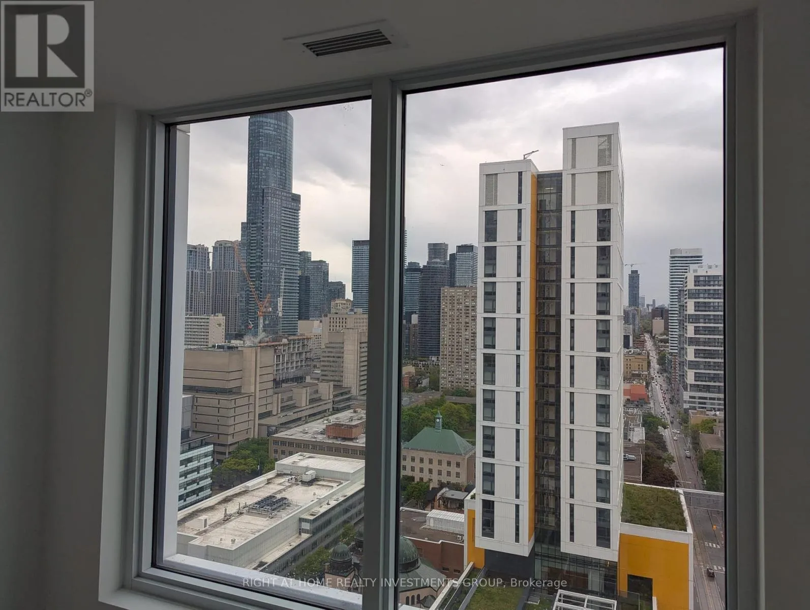 Dundas St & Church St Presenting an ultra-modern luxury CORNER unit condo built by the prestigious Centercourt Condominiums in the highly desirable Garden District. This bright and spacious unit features one bedroom plus a DEN with **WINDOW & DOOR** that can be used as a second bedroom, one spa-like bathroom, corner unit, panoramic windows, a sleek modern kitchen, and a practical layout in high raised building. Don't miss the opportunity to lease this stunning condo in a prime location in core Toronto. No smoking, no pets (id:27476)