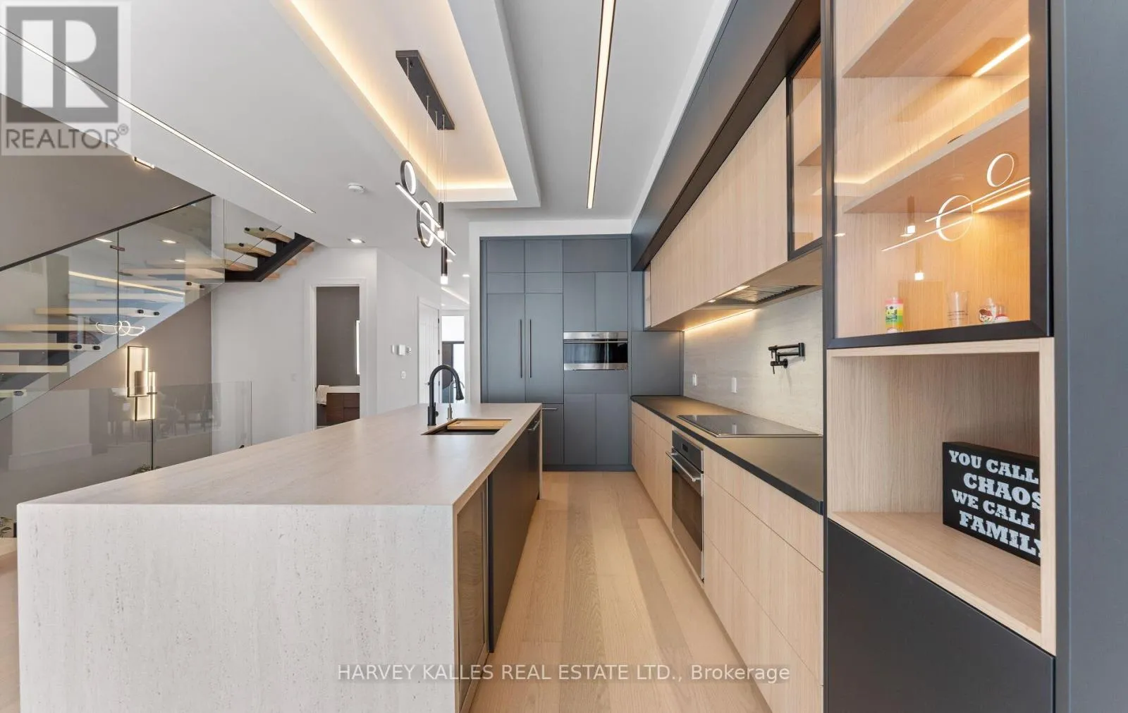 Cross Streets: Avenue & Eglinton. ** Directions: North Of Eglinton. Welcome to 656 Oriole Parkway, a newly built home showcasing exceptional construction, a flawless floorplan, and a sleek contemporary aesthetic designed for modern living. The home offers a wonderful sense of flow, highlighted by hardwood floors throughout, 10 ft ceilings on the main level, and the added comfort of heated floors in the foyer, bathrooms and lower level. The main floor is anchored by an incredible chef's kitchen with centre island and top of the line appliances, seemlessly open to a spacious family room, creating an ideal setting for both everyday living and effortless entertaining.The third-floor primary retreat is truly spectacular, featuring a private office or sitting area, panoramic skyline views toward Yonge & Eglinton, a luxurious 5-piece ensuite, a custom walk-in closet with skylight and a serving area with bar fridge, offering a refined and private sanctuary. The second level has 3 spacious bedrooms all with rain shower ensuite bathrooms, one with a large closet the others with large walk in closets. There is a spacious laundry room with full size front load washer & dryer, built in shelves/cabinets and laundry sink. The fully finished basement provides exceptional additional living space and includes a walk-out to the rear yard, perfect for guests, recreation or extended family living. Completing the home is a private driveway with built-in garage, combining practicality with strong curb appeal. Perfectly positioned in one of Toronto's most desireable neighborhoods, this residence is just steps to Yonge & Eglinton, top tier schools, parks, boutique shops, cafes and acclaimed dining. With easy access to the subway, LRT, transit, major routes and urban conveniences, yet set on a quiet, established street, this is a rare opportunity to own a newly built, thoughtfully designed home in a premier location. 10 Ft Ceilings Main & Basement, Primary Walk In & Hallway Skylight, Custom Wall Panelling Staircase, Glass Railings, Heated Floors (id:27476)
