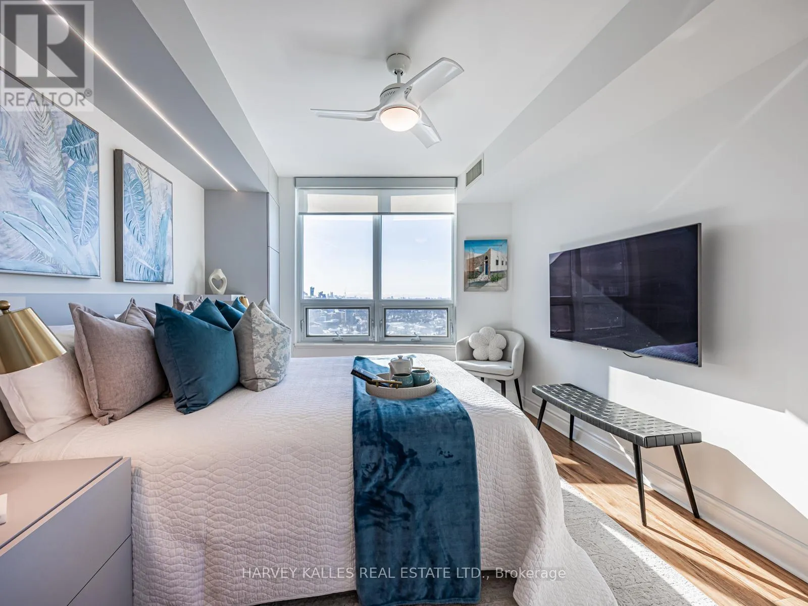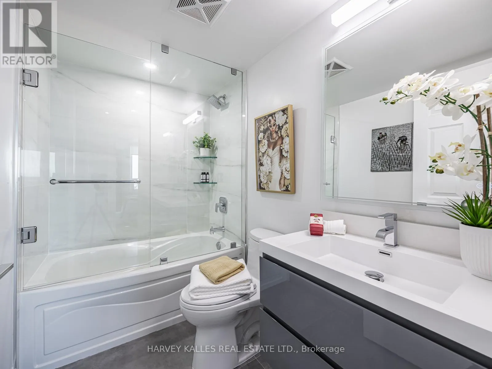 Cross Streets: Yonge & Finch. ** Directions: North on Yonge to Finch, Right on Greenview Ave. Welcome to sky-high living at Meridian by Tridel. Rarely available layout, standing proud on the 26th floor with a bright South-West exposure, this fully renovated corner suite offers over 1,005 sq ft of lush living space, delivering the perfect blend of elegance, comfort, and truly move-in-ready!! Luxurious upgrades and renovations have been invested to create a refined, designer feel throughout. From the moment you enter, pride of ownership is evident in every detail, with a crisp, polished presentation and new door hardware throughout. The living area features smooth ceilings- no popcorn-creating a clean, contemporary finish that instantly enhances the space. Expansive windows frame a stunning city backdrop, including a clear west-facing view toward Mississauga & a beautiful southern skyline where you can spot the CN Tower glowing in the distance. At the heart of the home is a gourmet inspired kitchen, beautifully reimagined creating an ideal space for everyday living and entertaining. The design feels seamless and custom, featuring no bulkheads, white custom wood cabinetry to the ceiling, & quartz countertops with an elegant waterfall edge, paired with a seamless custom quartz backsplash for a true designer finish. Stainless Steel appliances including a panelled fridge & DW, complete the turnkey experience. Offering 2 spacious bedrooms plus a large den and 2 full bathrooms, the layout provides flexibility rarely found in condo living. The den easily functions as a third bedroom, home office, or guest space. Includes premium above-grade second-level parking and a large locker. Enjoy resort-style amenities: Indoor pool, hot tub, sauna, gym, library, party room, guest suites, concierge, visitor parking, and EV charging. Steps to Finch TTC Station, with quick access to Hwy 401 and DVP, and surrounded by excellent dining, shopping, and groceries. Rare opportunity to own a sophisticated, turnkey residence with exceptional space, views, and lifestyle. (id:27476)