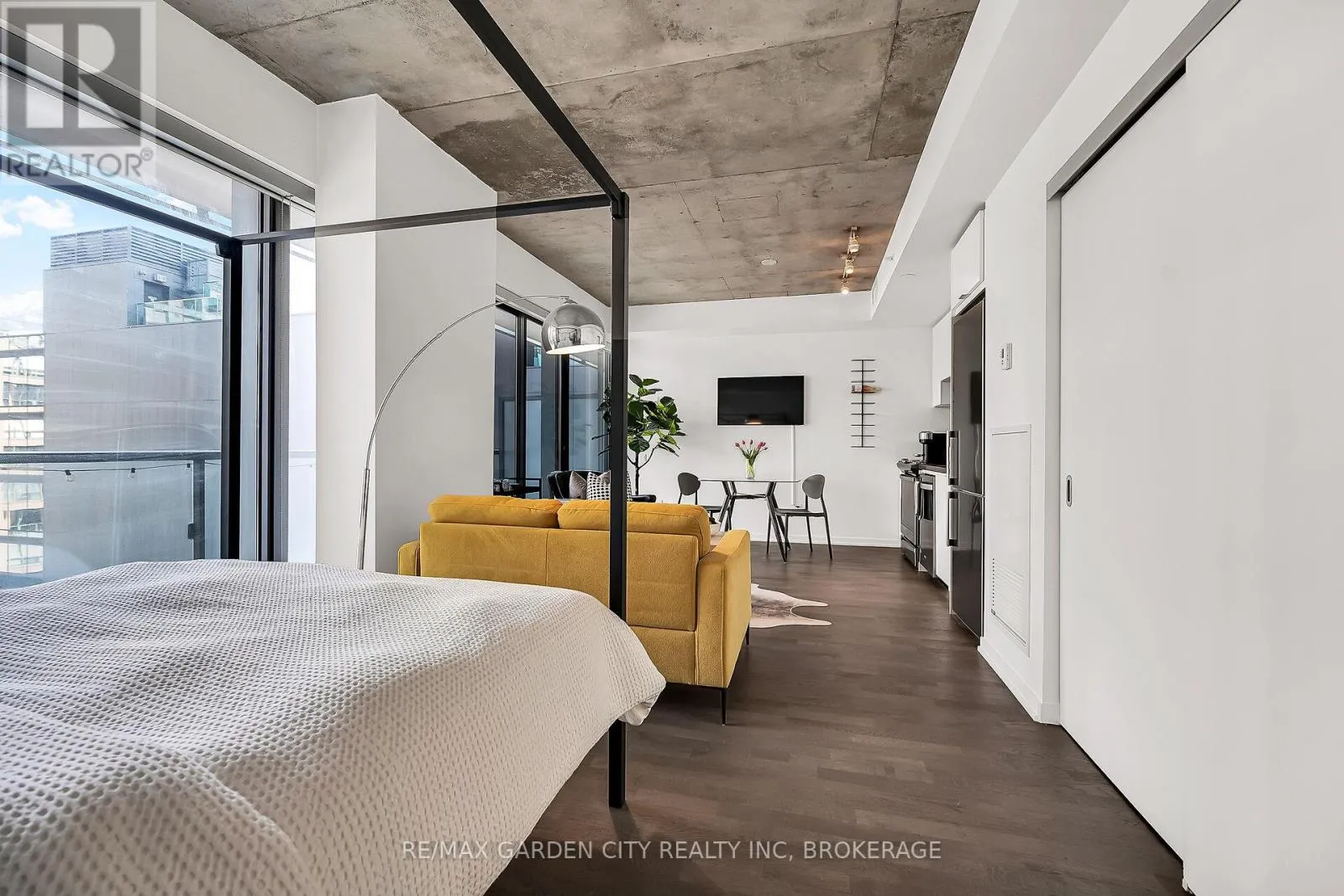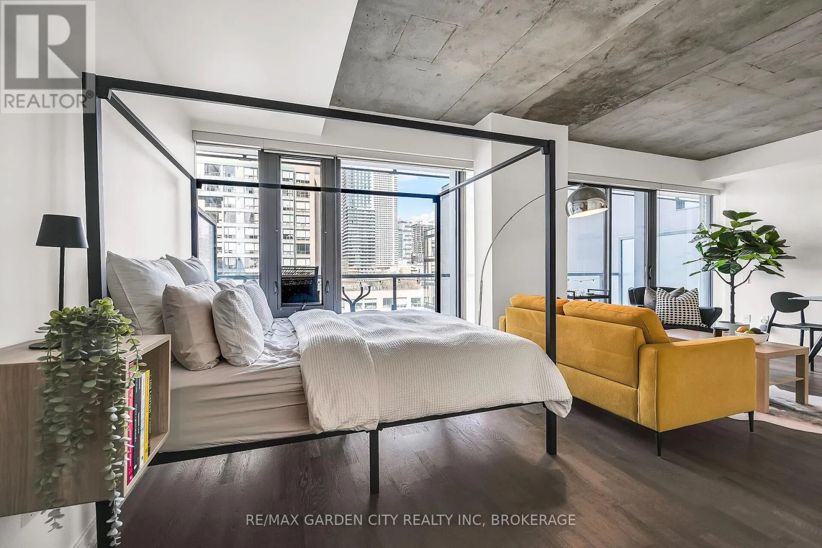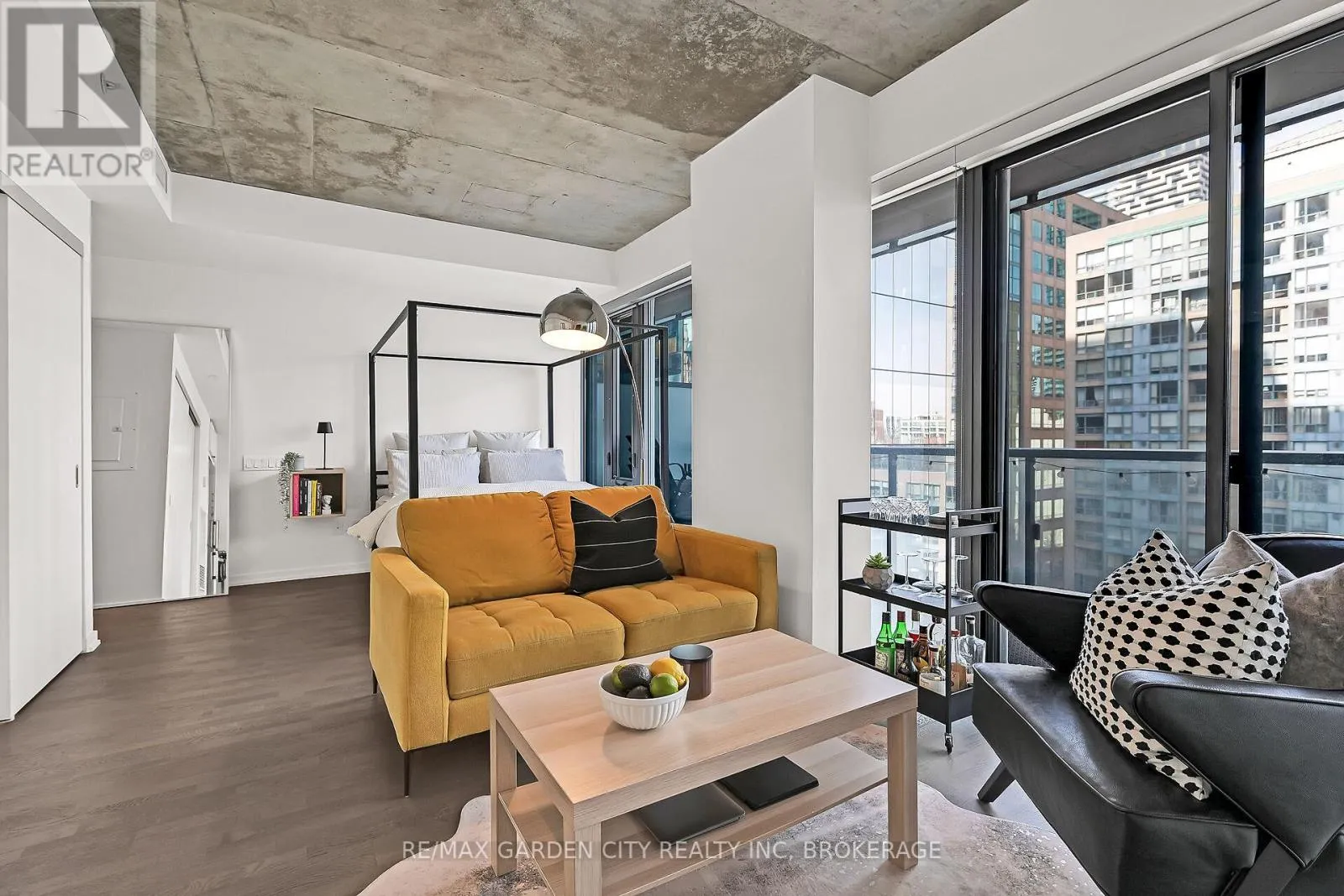 Cross Streets: Colborne/Church. ** Directions: Front St To Church St to Colborne St. Located in one of the city's most sought-after locations, perfectly situated in the heart of Toronto's Financial District, steps to St. Lawrence Market, Union Station, King Station, King St. E, TTC streetcar routes, the Distillery District, Waterfront, Berczy Park, Toronto Metropolitan University, and George Brown College.This open-concept studio features floor-to-ceiling windows, 9-foot exposed concrete ceilings, hardwood flooring, and modern finishes throughout. The kitchen boasts quartz countertops and fully integrated appliances, including a refrigerator, full-size stove, and washer/dryer. The sleek bathroom offers a glass-enclosed shower, and the unit is complemented by an oversized balcony and window coverings.Residents enjoy building amenities, including 24/7 concierge service, a fully equipped fitness centre, and a rooftop pool with sun deck.April 1 occupancy available. Furnished unit-see listing for inclusions. Unit will be professionally cleaned prior to new tenant occupancy. 24 Hours notice needed please. (id:27476)