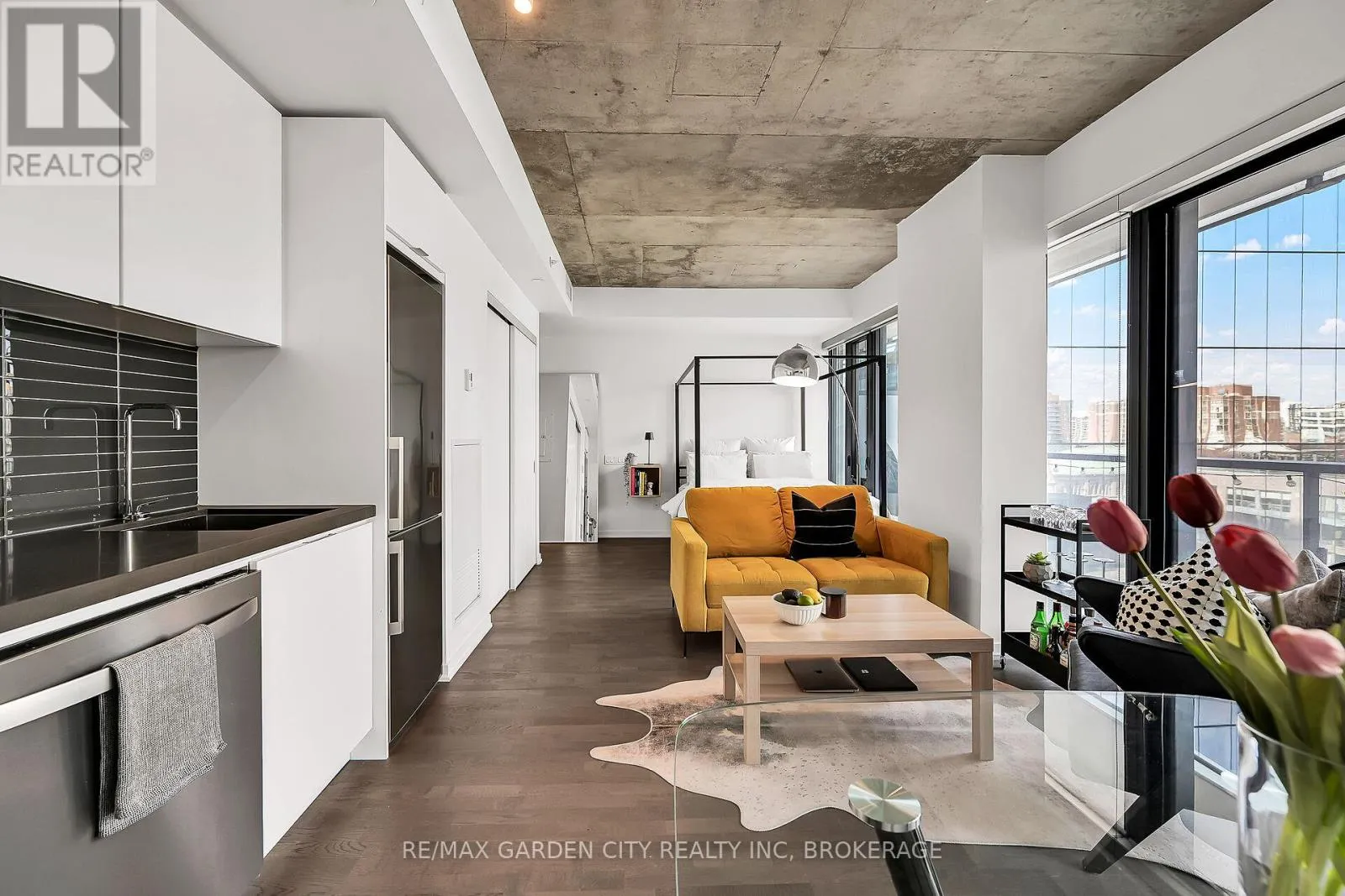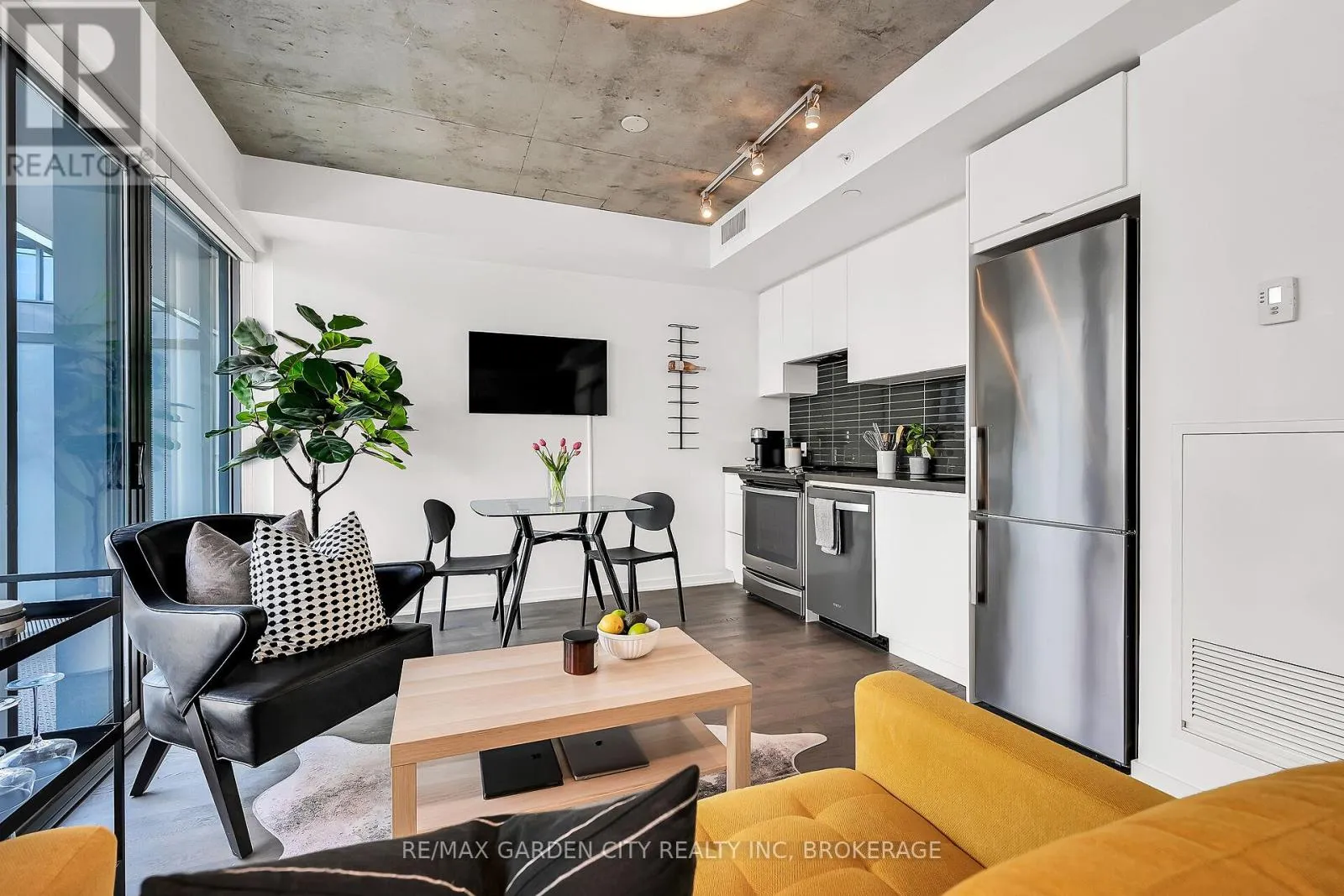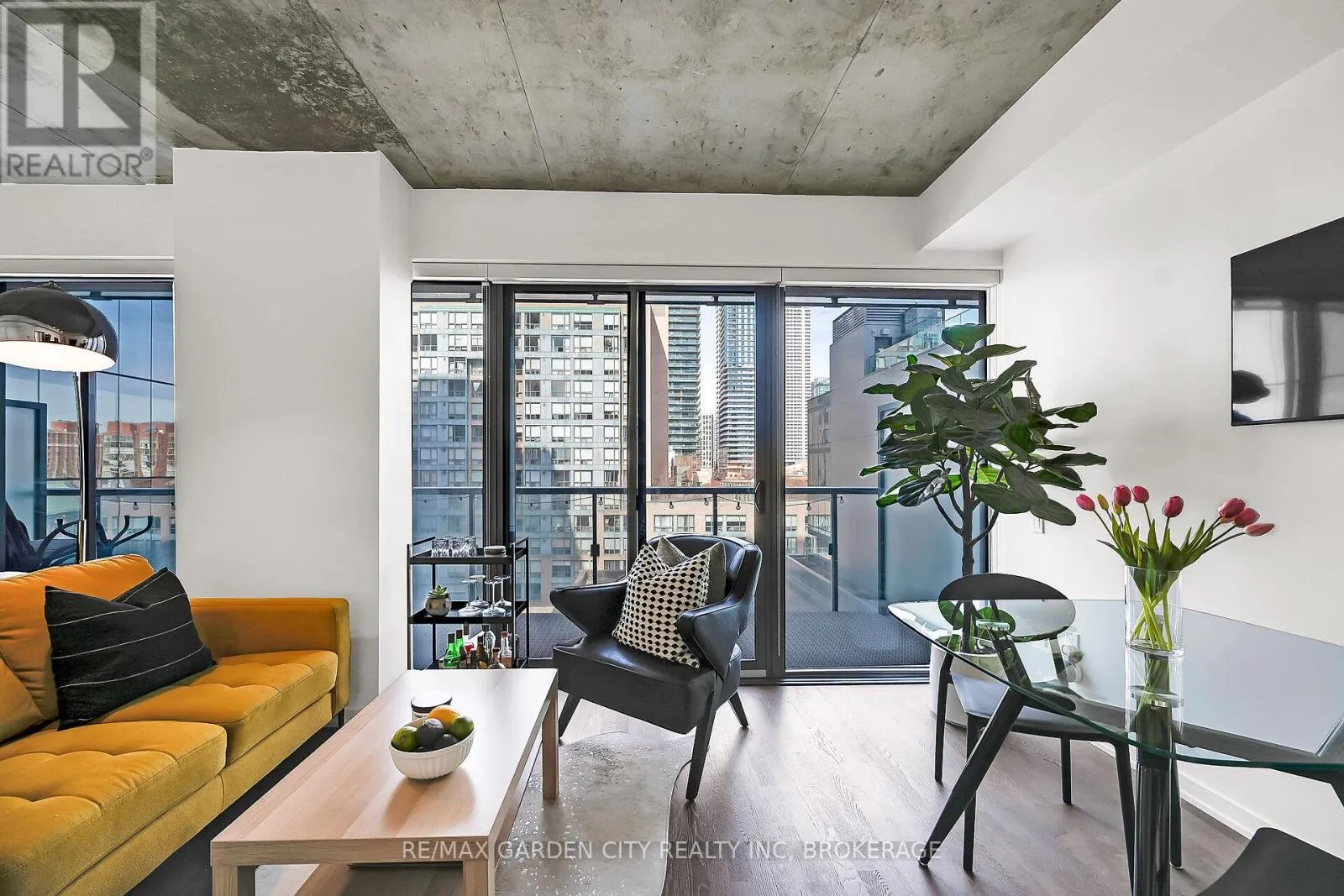 Cross Streets: Colborne/Church. ** Directions: Front St To Church St to Colborne St. Located in one of the city's most sought-after locations, perfectly situated in the heart of Toronto's Financial District, steps to St. Lawrence Market, Union Station, King Station, King St. E, TTC streetcar routes, the Distillery District, Waterfront, Berczy Park, Toronto Metropolitan University, and George Brown College.This open-concept studio features floor-to-ceiling windows, 9-foot exposed concrete ceilings, hardwood flooring, and modern finishes throughout. The kitchen boasts quartz countertops and fully integrated appliances, including a refrigerator, full-size stove, and washer/dryer. The sleek bathroom offers a glass-enclosed shower, and the unit is complemented by an oversized balcony and window coverings.Residents enjoy building amenities, including 24/7 concierge service, a fully equipped fitness centre, and a rooftop pool with sun deck.April 1 occupancy available. Furnished unit-see listing for inclusions. Unit will be professionally cleaned prior to new tenant occupancy. 24 Hours notice needed please. (id:27476)