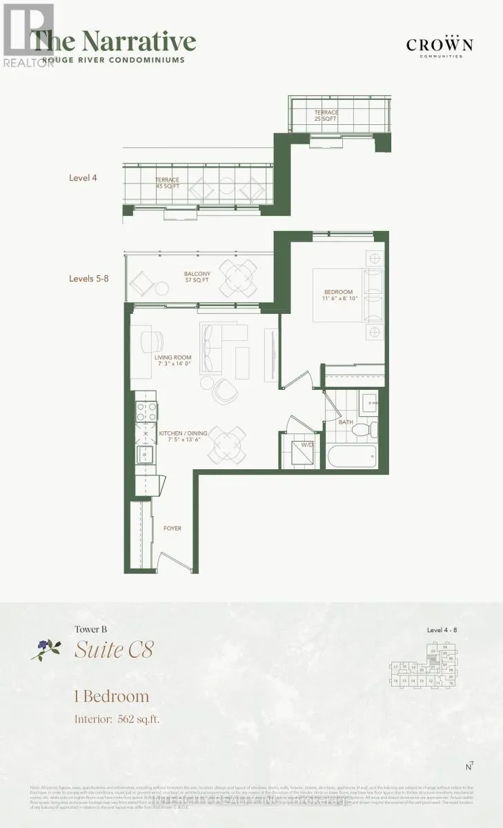 Port Union & Hwy 401 Welcome to The Narrative Condos, located in the highly sought-after Rouge community of Toronto. Presenting the stunning C8 model: a brand new 562 sq. ft. 1-bedroom, 1-bathroom condo complete with parking and a storage locker, right in the heart of Rouge!Your quest for the ideal combination of city convenience and natural beauty ends here. This modern luxury suite offers an upscale living experience, surrounded by serene ravines, lush parks, scenic nature trails, and the beautiful shores of Lake Ontario-all while being just minutes away from Highways 401 and 407, TTC and GO Transit, as well as vibrant shopping areas, banks, healthcare facilities, and everyday necessities.Enjoy exceptional building amenities, including a wellness center with weight and cardio equipment, a yoga studio, a children's play area, a party room, a games room, and an outdoor terrace equipped with BBQS (id:27476)