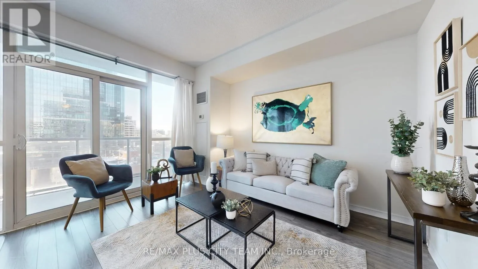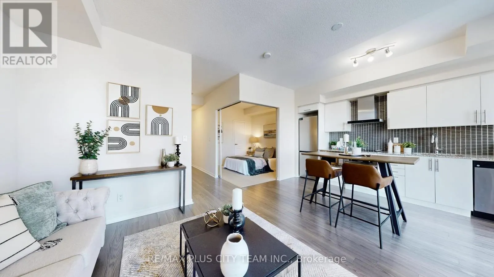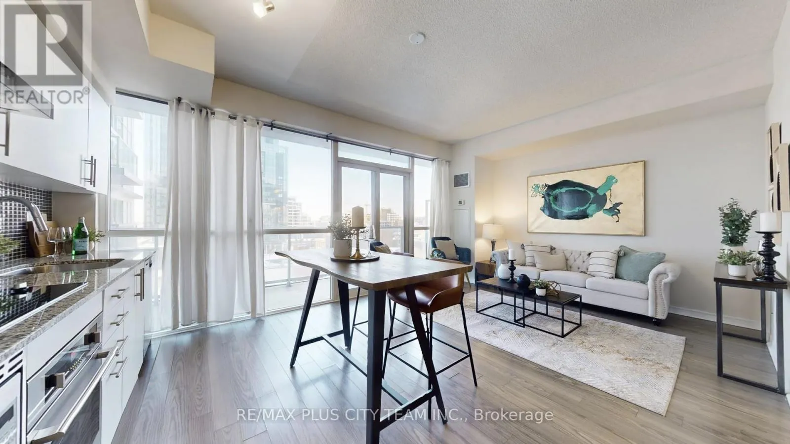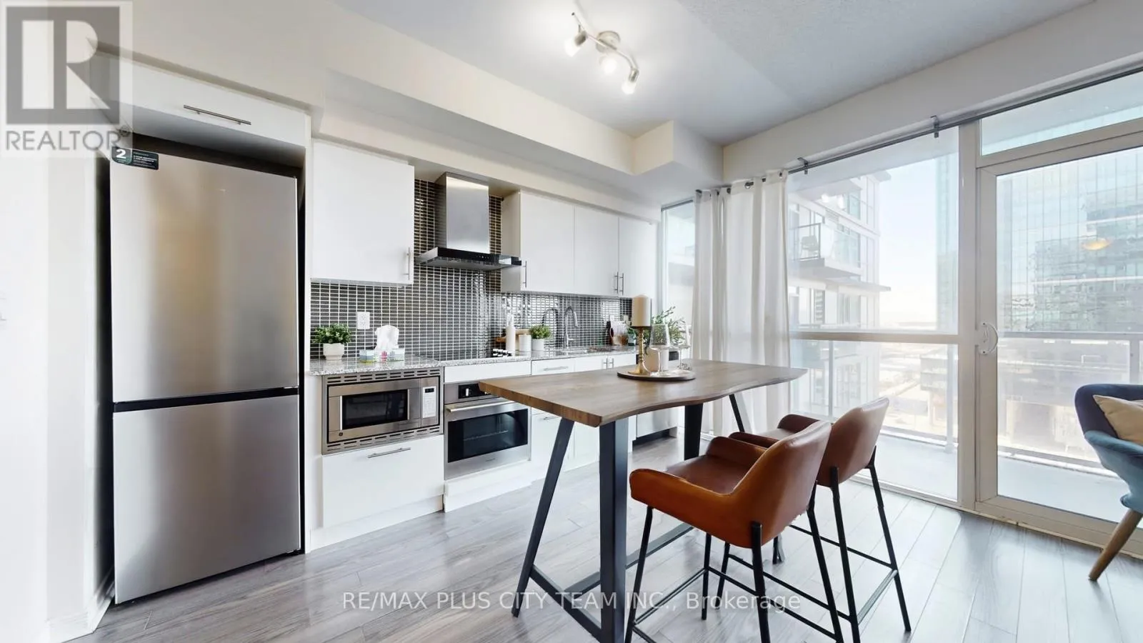 Cross Streets: Front St W/Spadina Ave. ** Directions: On Front St Between Spadina & Blue Jay's Way. Experience the best of downtown living in this stylish one-bedroom plus den suite at Fly Condos. Designed with an open-concept layout, the spacious living and dining area extends to a private balcony, creating a perfect space to relax or entertain. The modern kitchen features quality cabinetry, built-in appliances, and ample counter space, while the versatile den offers flexibility for a home office or guest area. The bedroom includes a walk-in closet for added storage. Residents enjoy exceptional amenities, including a fully equipped fitness centre, yoga studio, media and theatre room, rooftop terrace with BBQs and private cabanas, elegant party room, guest suites, and 24-hour concierge service. Ideally situated steps from the Entertainment and Financial Districts, Union Station, Rogers Centre, transit, shopping, and restaurants, this home offers unparalleled convenience and an energetic downtown lifestyle. Quick access to the Gardiner Expressway and DVP makes commuting effortless. Make this sought-after address your new urban retreat. (id:27476)