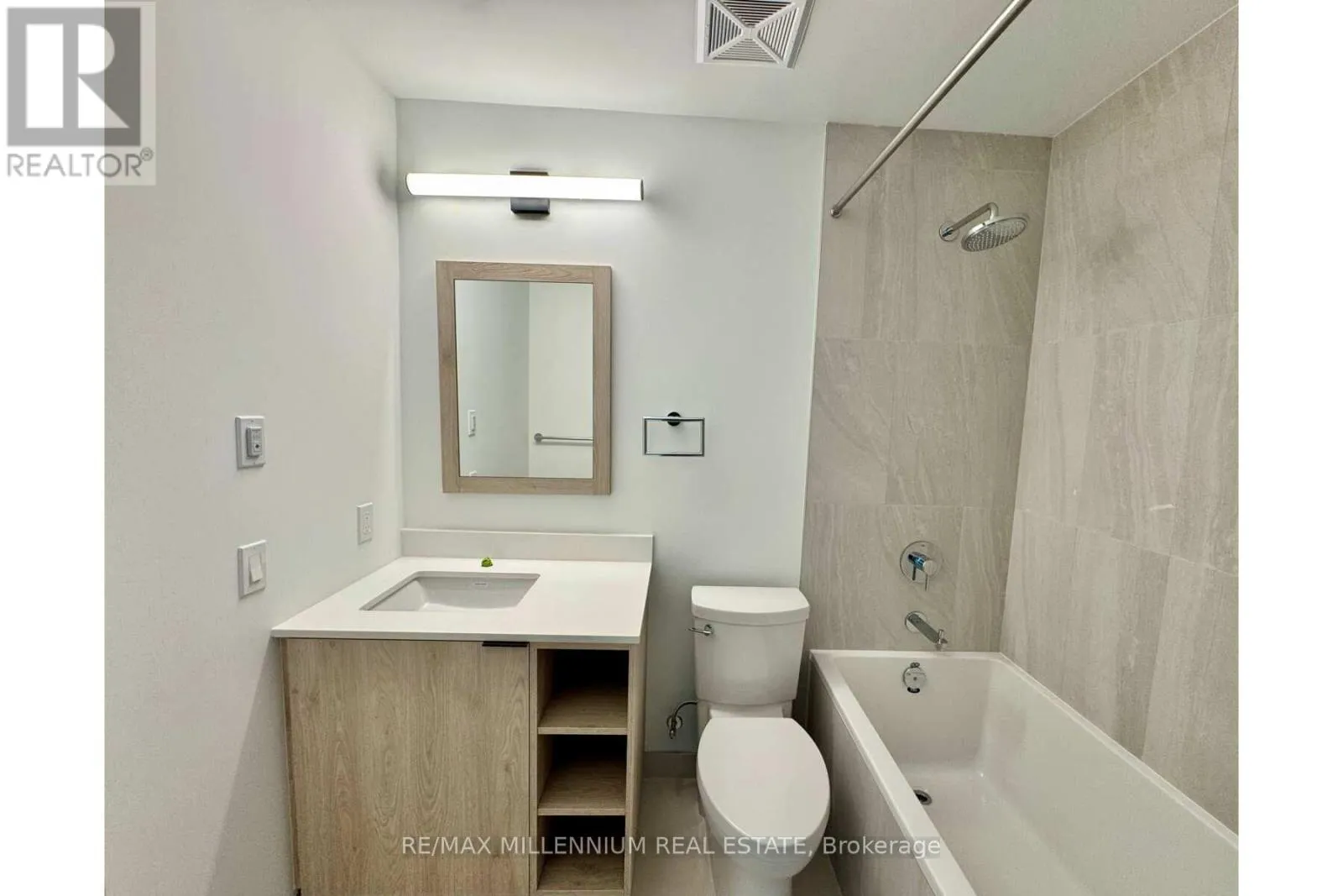 The Queensway and Islington Ave Prime location meets modern luxury at Verge East by RioCan Living. Step into this brand-new,never-lived-in 1-bedroom plus den suite, thoughtfully designed for contemporary living and ready for immediate occupancy.This bright unit offers 583 sq. ft. of stylish living space with soaring 10-ft ceilings, sleek finishes, and abundant natural light throughout. Enjoy a modern kitchen featuring integrated appliances, quartz countertops, and a custom backsplash, flowing seamlessly into a spacious living area with access to a private balcony showcasing stunning CN Tower views.The primary bedroom features floor-to-ceiling windows and a double closet, while the versatile den is perfect for a home office, guest room, or flex space. Added conveniences include ensuite laundry, a bright contemporary colour palette, one locker, and high-speed internet included inthe rent.Residents enjoy access to an impressive lineup of amenities, including 24-hour concierge, fully equipped gym, yoga studio, co-working lounge, kids' playroom, golf simulator, party room, pet wash, and a rooftop terrace with BBQs. Ideally located at The Queensway & Islington, with easy access to transit, major highways,shopping, dining, and everyday essentials, this suite offers the perfect balance of urban convenience and modern comfort. (id:27476)