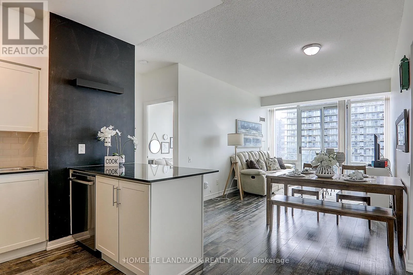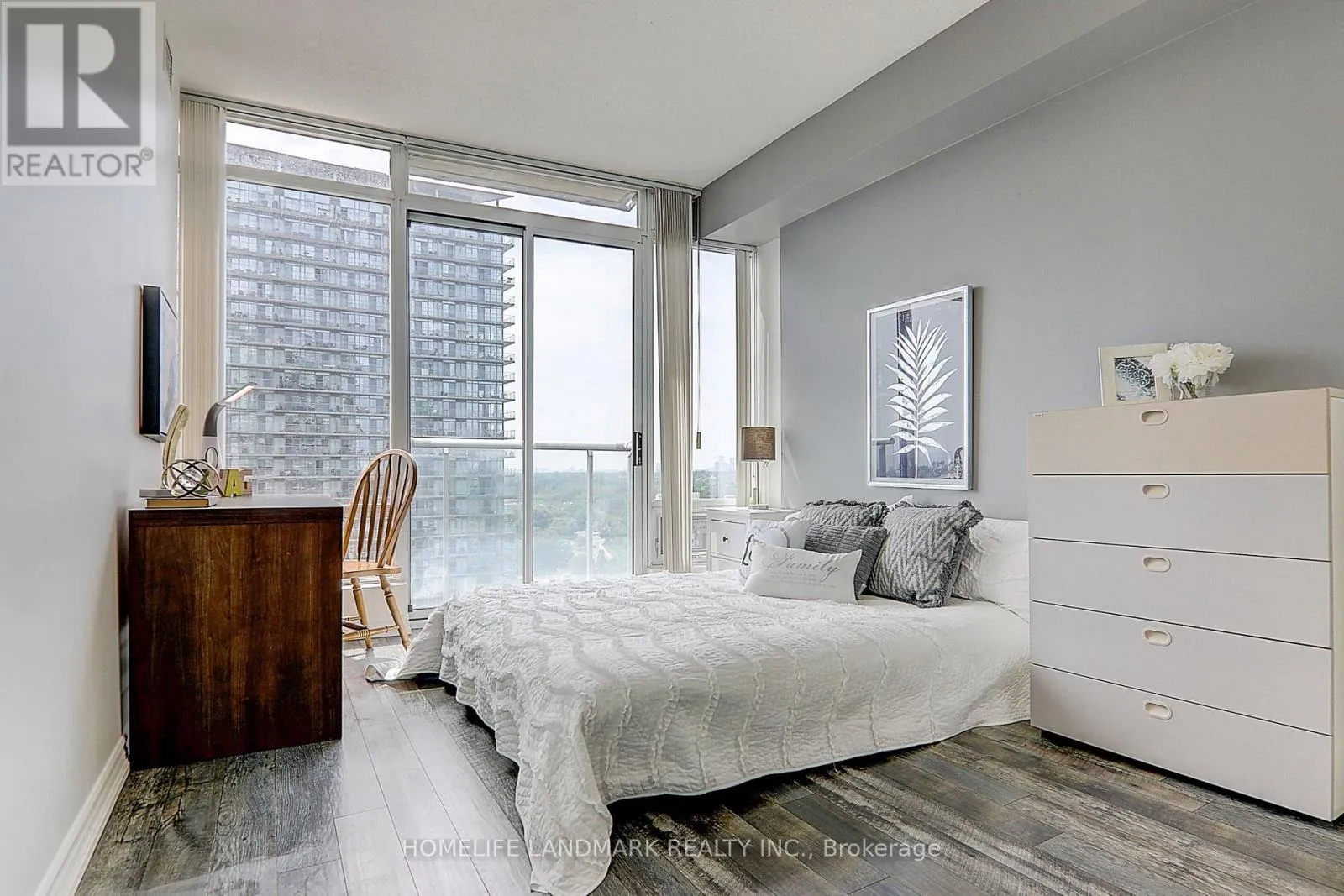 Windermere Ave & The Queensway Welcome to Windermere by the Lake by Cresford Developments! This move-in-ready, carpet-free 2-bedroom, 2-bathroom suite offers a highly functional open-concept layout with generous closet space in each bedroom, floor-to-ceiling windows showcasing stunning lake and park views, and a spacious kitchen featuring granite countertops, an elegant backsplash, and a practical breakfast bar perfect for morning coffee, along with a large laundry room that also provides valuable additional storage. Ideally located steps to High Park, Sunnyside Park, Sunnyside Beach, and the waterfront, with easy access to downtown Toronto and Bloor West Village, this residence is perfect for urban professionals and families who enjoy an active outdoor lifestyle. Condo fees include all utilities-a rare and valuable benefit in today's market. Enjoy immediate access to Lakeshore Blvd, The Queensway, and the Gardiner Expressway, and be within the catchment of the highly regarded Swansea Junior & Senior Public School, as well as close to top-rated Humberside C.I., restaurants, entertainment, supermarkets, parks, and community centres. Offering 9-foot ceilings and an unbeatable blend of urban convenience and natural surroundings, this is an excellent opportunity for young families, first-time buyers, and investors alike. ** ALL PHOTOS ARE FROM A PREVIOUS LISTING. ** (id:27476)