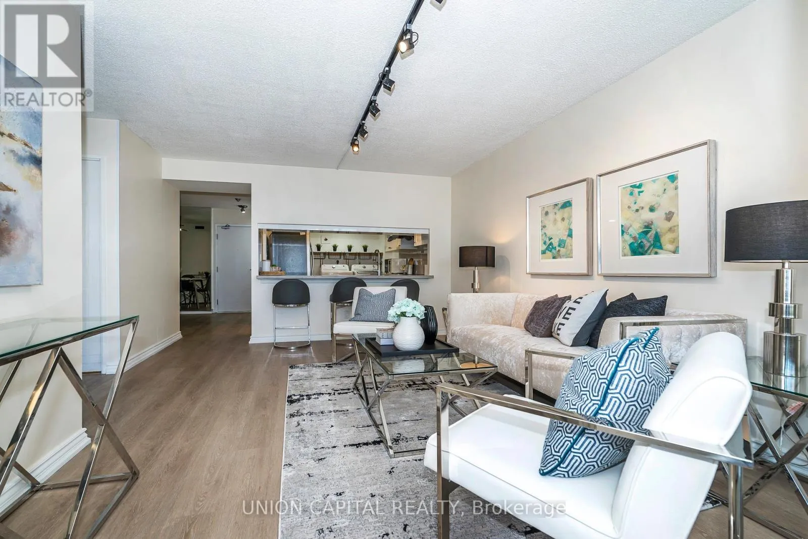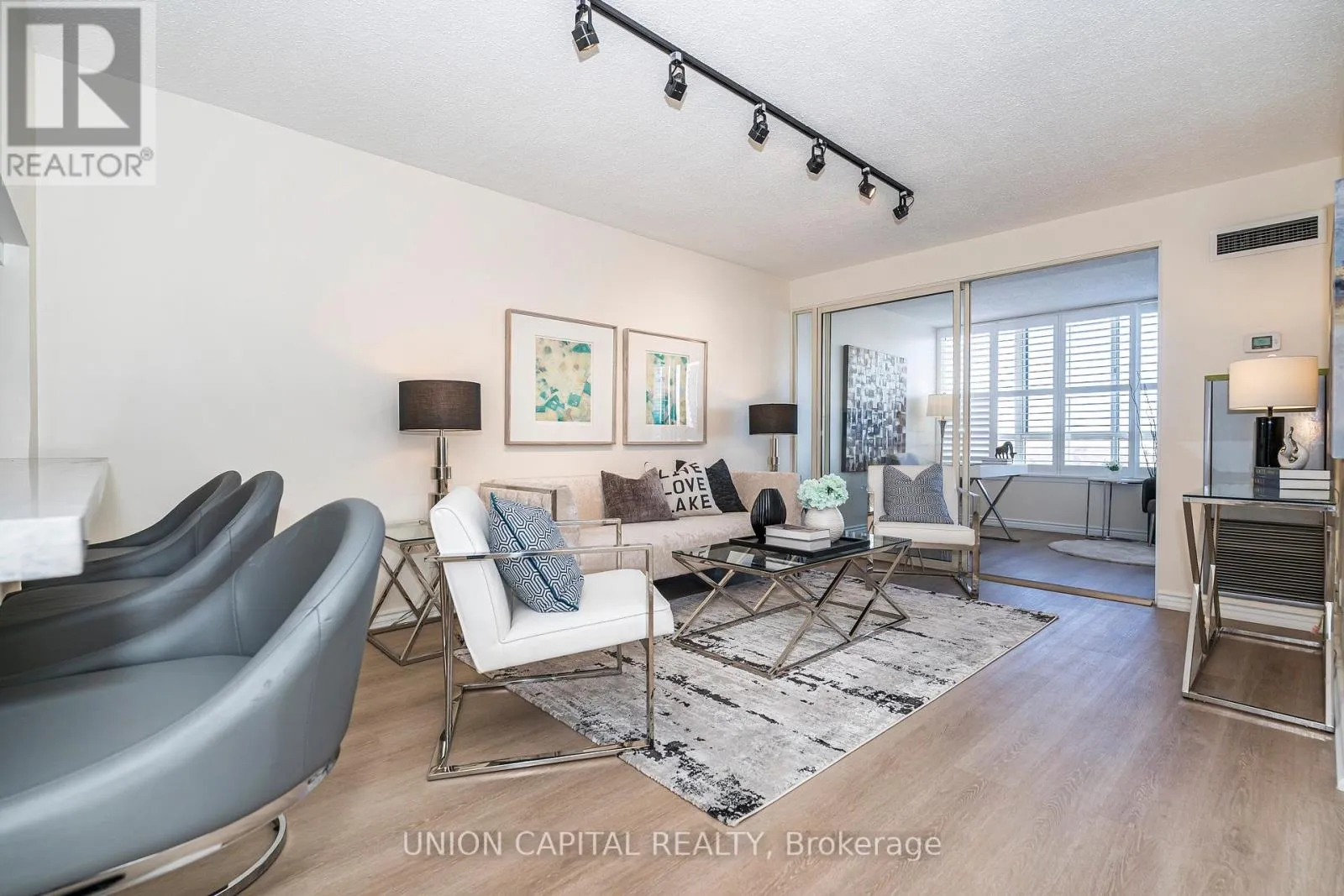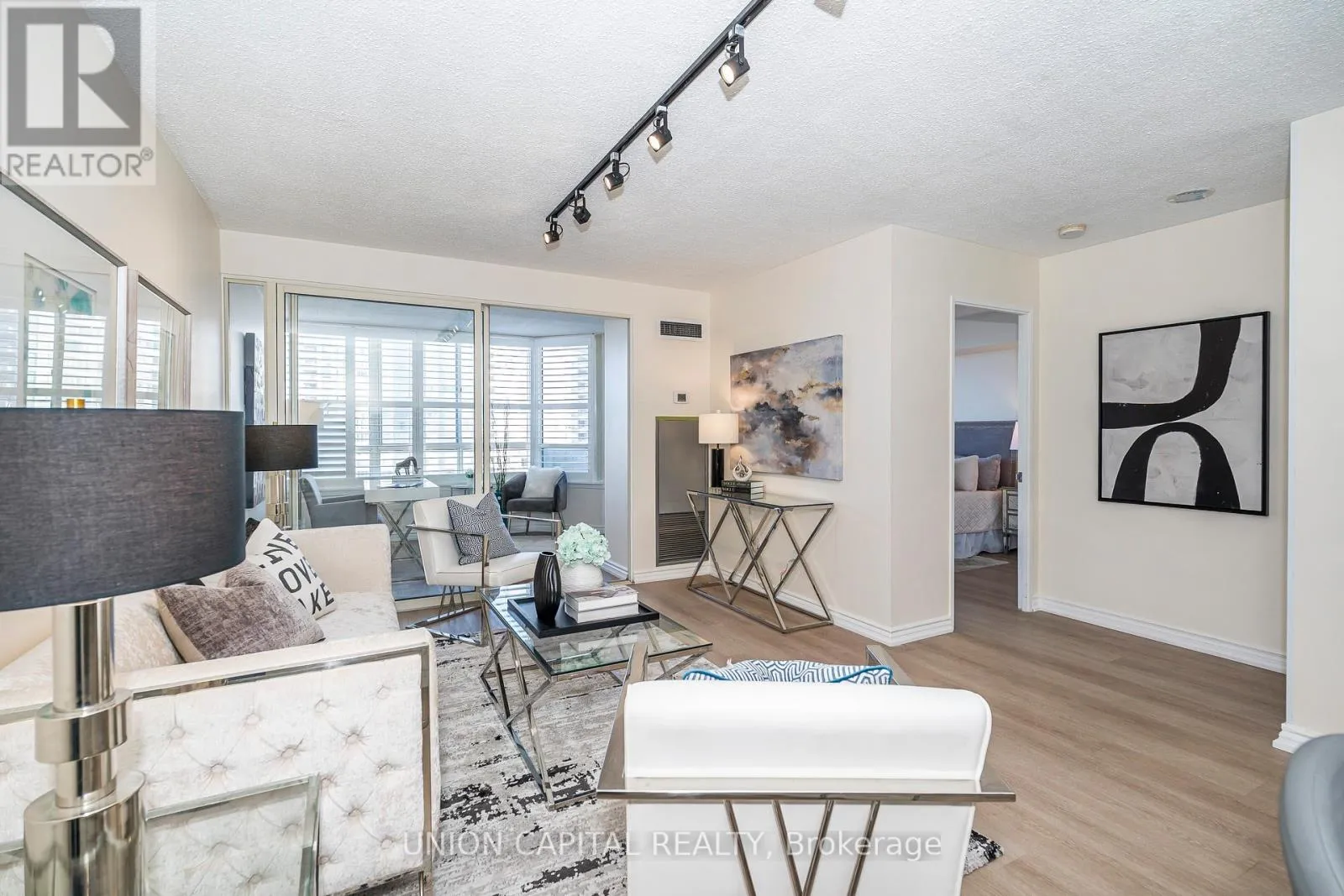 Steeles and Warden Welcome to this updated 1+1 unit with parking in sought-after luxury Tridel building. The sun-filled solarium can easily be used as a second bedroom, while the large open-concept den offers flexible living or work-from-home space. New vinyl flooring flows throughout the open and functional layout. The newly renovated kitchen features quartz countertops, pull-out pot drawers, two-tier pull-down cabinetry, and stainless steel appliances-perfect for both everyday living and entertaining. Maintenance fees include all utilities, cable TV, and internet, offering exceptional value. Enjoy an unbeatable location with easy access to supermarkets, parks, library, restaurants, banks, clinics, schools, and public transit. The recently renovated building boasts updated hallways and lobby, along with outstanding amenities: landscaped grounds, indoor and outdoor pools, exercise rooms, party rooms, squash, racquet and tennis courts, ample outdoor space, BBQ areas, and 24-hour gatehouse security. Ideal for down-sizers, retirees, or first-time home buyers. (id:27476)