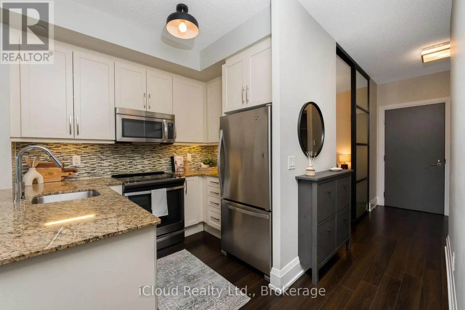 Bloor & Old Mill Drive This well laid laid out 807 sq. ft. condo delivers comfortable city living in an upscale neighbourhood where everyday life is effortlessly walkable so daily errands, dining, and cafés are easily done on foot. Jane subway station is just a few minutes away making car-free living not only possible, but ideal. Inside, the spacious layout offers a large primary bedroom with walk-in closet & private ensuite bath. The versatile open-concept den with custom sliding doors easily adapts as a second bedroom, or home office. A modern kitchen with extended upper cabinetry, granite counters, and designer finishes flows seamlessly into the living space, while a separate laundry room adds valuable extra storage. The rare bonus of a second full washroom makes this layout exceptionally functional for everyday living and entertaining. Soaring 9-foot ceilings, stylish lighting, and custom window coverings frame oversized south-facing windows with views of the tudor mansions, greenery, and a subtle glimpse of the lake as a stunning backdrop to your day-to-day life. Set in an luxury building steps to Bloor West Village shops and restaurants, Brule Park, the Humber River, and scenic lakeside trails, this is urban living done right as it's connected, convenient, and lifestyle-focused. Parking is easily rented in the building (seller currently rents a spot for $165/month). Photos were taken when the property was previously staged. The unit is currently vacant and no longer staged. (id:27476)