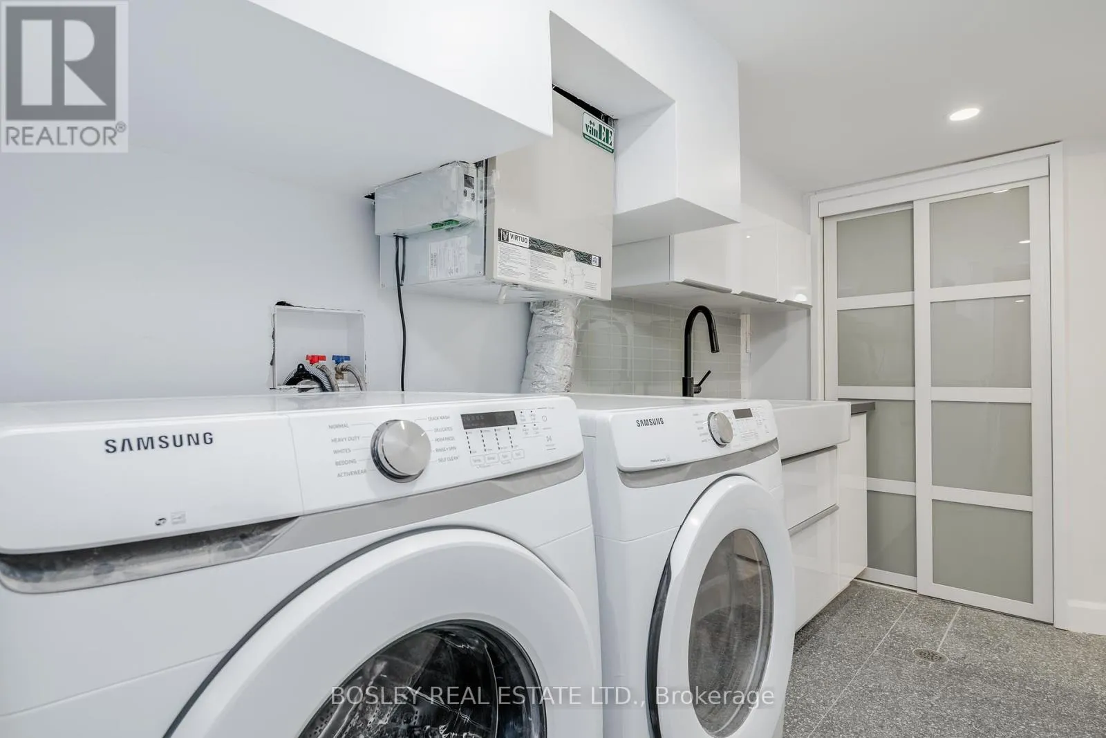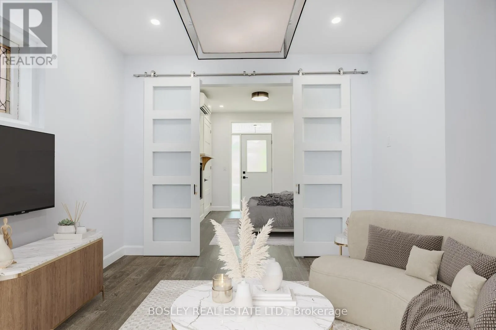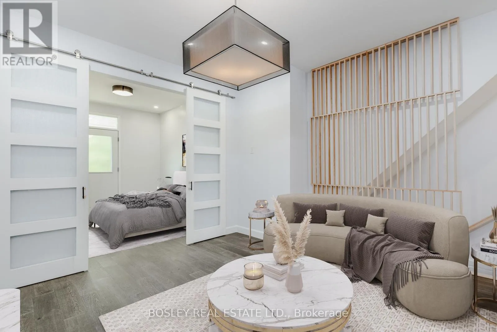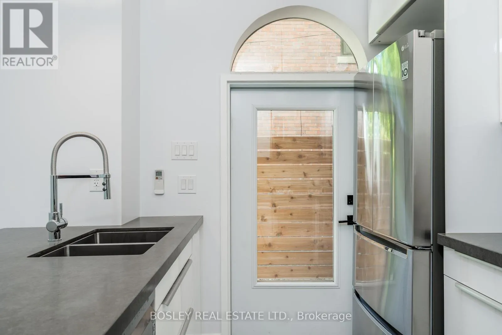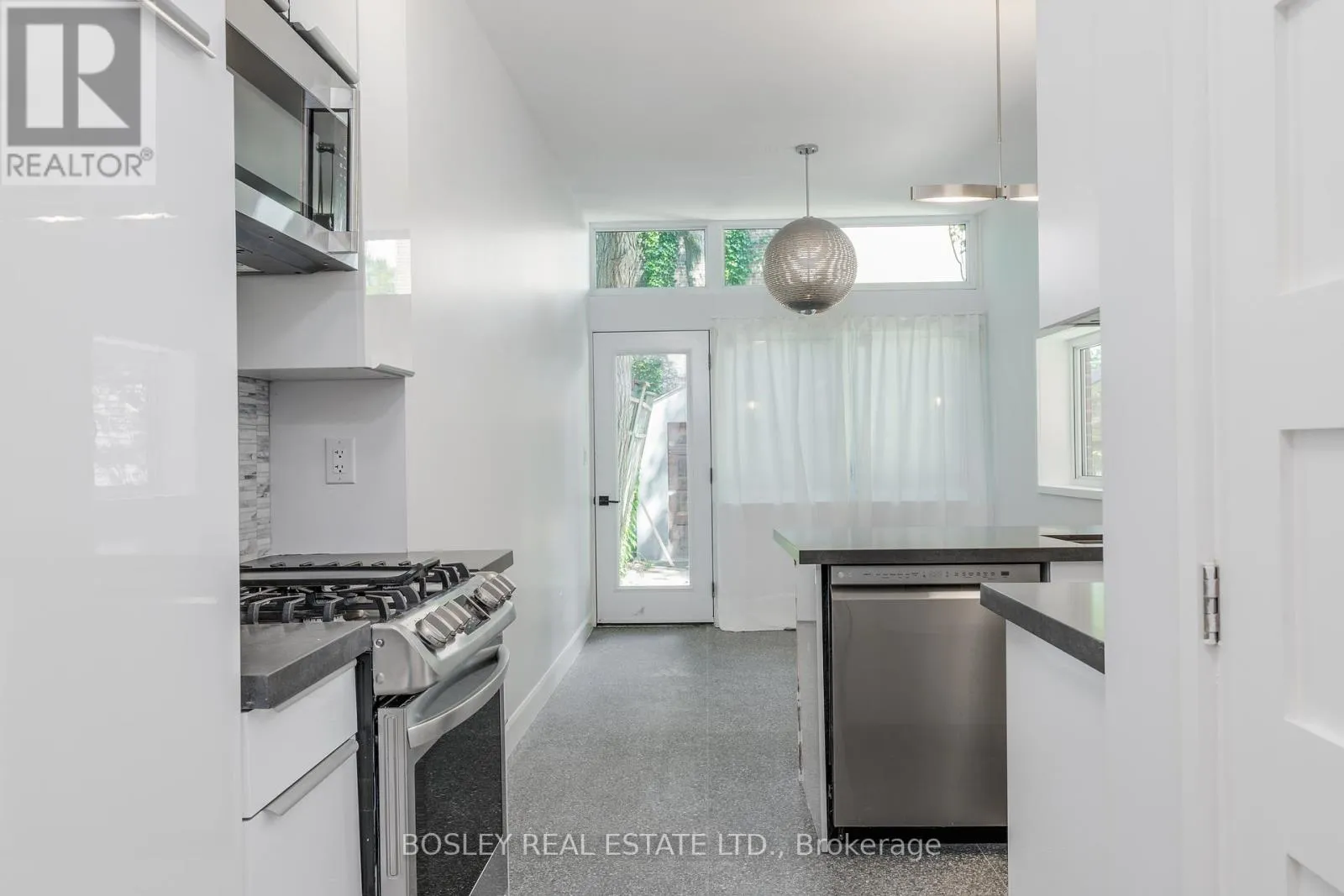 Cross Streets: Near Queen St East & Lee Ave. ** Directions: Drive one way north from Queen St East. Green P lot parking avail. @ Queen & Wineva Ave. Architecturally designed and masterfully renovated in 2022, this 1,260 sq ft, 2-storey home seamlessly blends clean Scandinavian lines with Mid-Century modern luxury. On the Main level, high 9'6" ceilings provide an airiness of space, while radiant heated floors throughout will keep your feet toasty-warm when it's chilly out. You'll stay comfortable with 2 air conditioning & heat pump units (in the Kitchen & Primary Bedroom), and you'll breathe easier with the Heat Recovery Ventilation (HRV) fresh air system. The bright, eat-in Kitchen is designed for both function & connection, with a dedicated dining area, breakfast bar, stainless steel appliances, and a gas stove ideal for home chefs. Southeast-facing corner windows flood this space with natural light. The Living Room offers perfect balance between old-world charm & contemporary style, showcasing original stained-glass windows, modern sliding barn doors to the bedroom, and a vertical wood-slat feature overlooking the open stairwell. The Main Floor Primary Bedroom is a serene retreat, complete with gas fireplace, double closets, and a walk-out to a private, tree-shaded front patio. Downstairs, the fully finished Basement level offers exceptional versatility with 2 spacious bedrooms with large closets, a cozy den/home office, and a 5-piece, family-friendly bathroom with double sinks and separate toilet/bathing area for added privacy. A dedicated laundry hallway includes full-sized side-by-side washer and dryer, double sink, and chic storage cabinetry . Modern, slim-profile wall radiators in every room provide comfortable warmth throughout. Steps away to Kew Gardens, Kew Beach, the Boardwalk, Schools, Recreation Centre, Library, and all of the vibrant shops, cafés & restaurants along Queen Street. This culturally rich, beachside neighbourhood offers a peaceful residential setting, with quick & easy access to the city's busy downtown core. This is it, come live your best life by the beach! (id:27476)