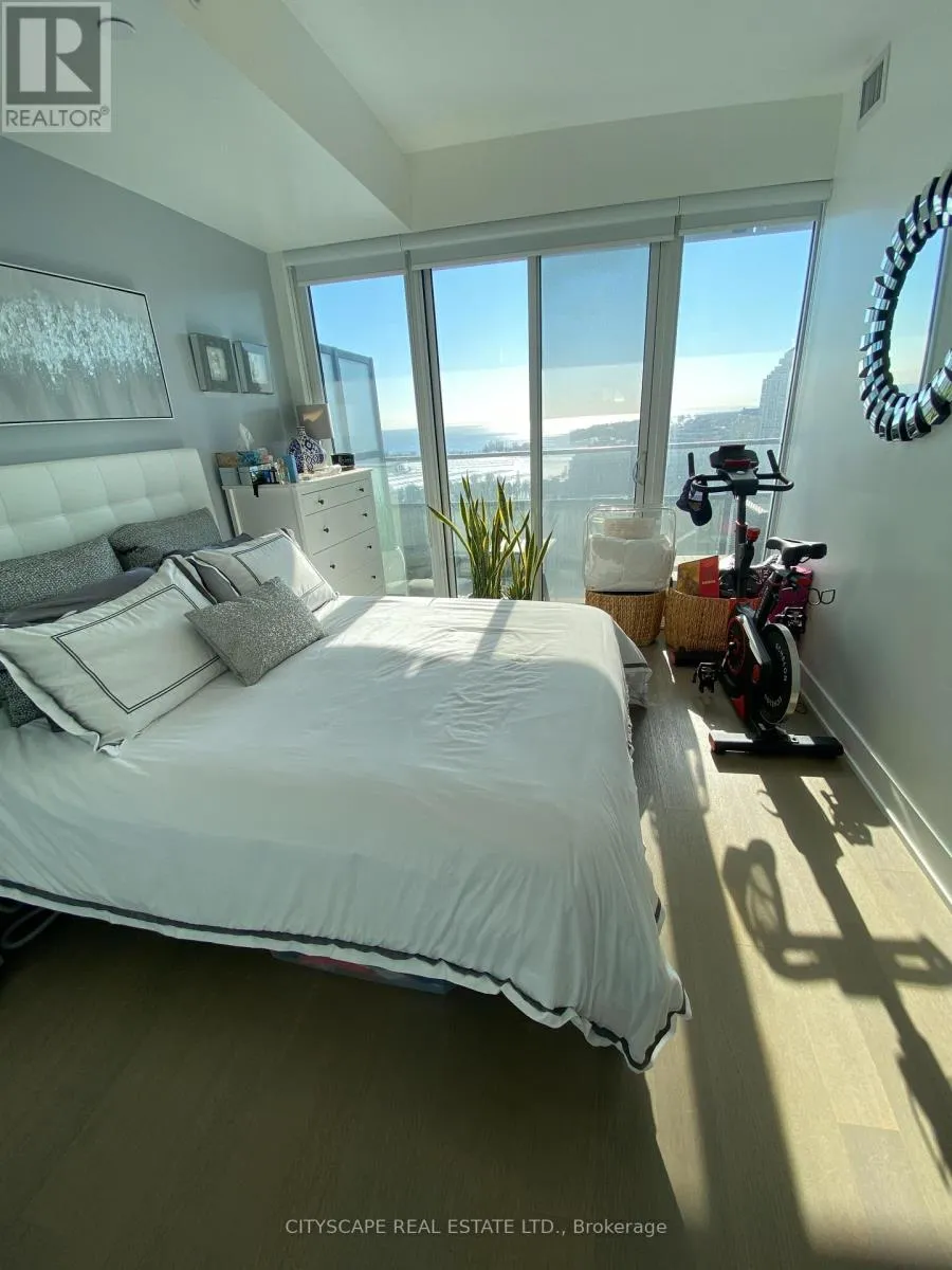 Lake Shore Blvd & Marine Parade Rarely offered! Corner suite w/ Huge Wrap Around Balcony! Lakefront Living! Bright 1 Bedroom + Den corner suite- Waterfront Community. 859 Square feet of living space. 599 Sf indoors + 260 Sf outdoors! Breathtaking Unobstructed SW Views Of The Lake & Marina and outstanding Sunset views! With 2 Walkouts to Balcony. Floor to ceiling windows wrapped around living area! 5*Luxury Amenities: Outdoor Roof Terraces, Pool & Spa, Gym, Yoga, Billiard, Party Rm, Guest suites. Steps to: Lake, Trails, Parks, Marina, Restaurants, Shops, Patios. Close to Hwy, TTC, GO. Tenant To Pay All Utilities. (Water & Hydro). (id:27476)
