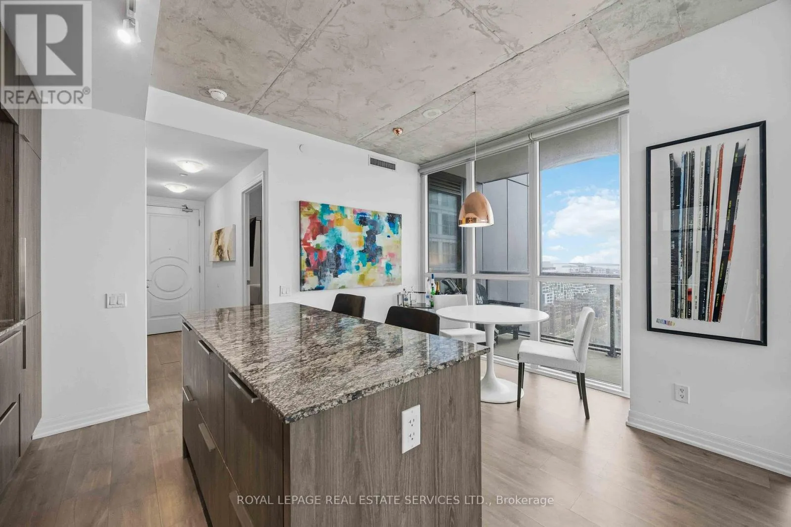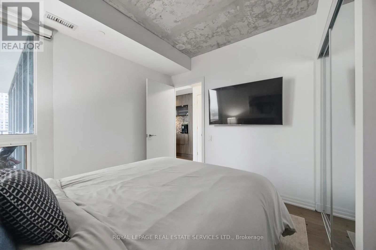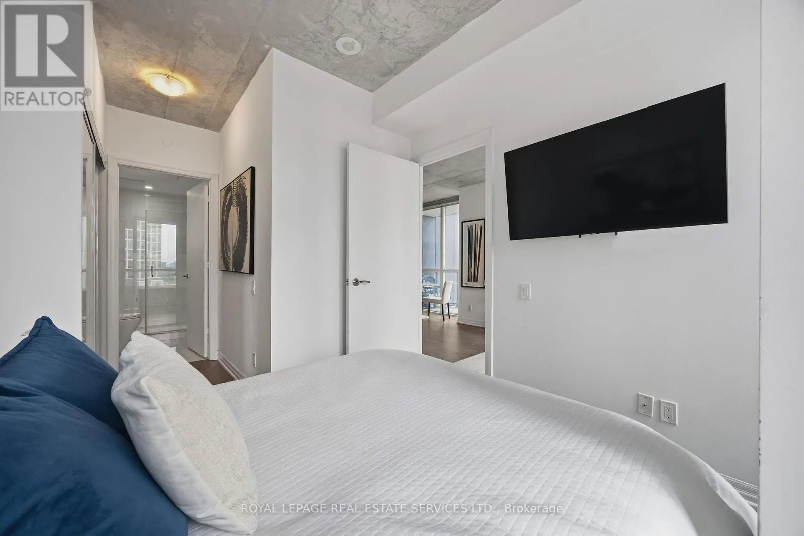 King St W & Blue Jays Way Experience the pinnacle of King West living at the prestigious Bisha Hotel & Residences. This highly desirable 2-bedroom, 2-bathroom suite features a preferred split-bedroom layout, offering 843 sq. ft. of functional luxury and a 109 sq. ft. balcony with sweeping northwest views. The interior strikes a perfect balance between industrial chic and modern elegance, showcasing exposed concrete ceilings, dramatic floor-to-ceiling windows, and a sleek open-concept kitchen with a central island and built-in appliances. Residents enjoy access to world-class amenities, including a rooftop infinity pool, and 24-hour concierge. With a Walk Score of 99 and Transit Score of 100, you are steps from the Rogers Centre, TIFF, and the city's finest dining-this is not just a home, it is a statement in modern luxury. (id:27476)