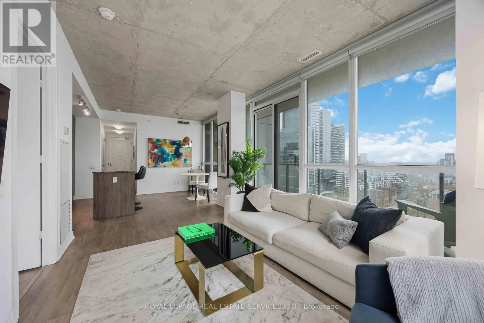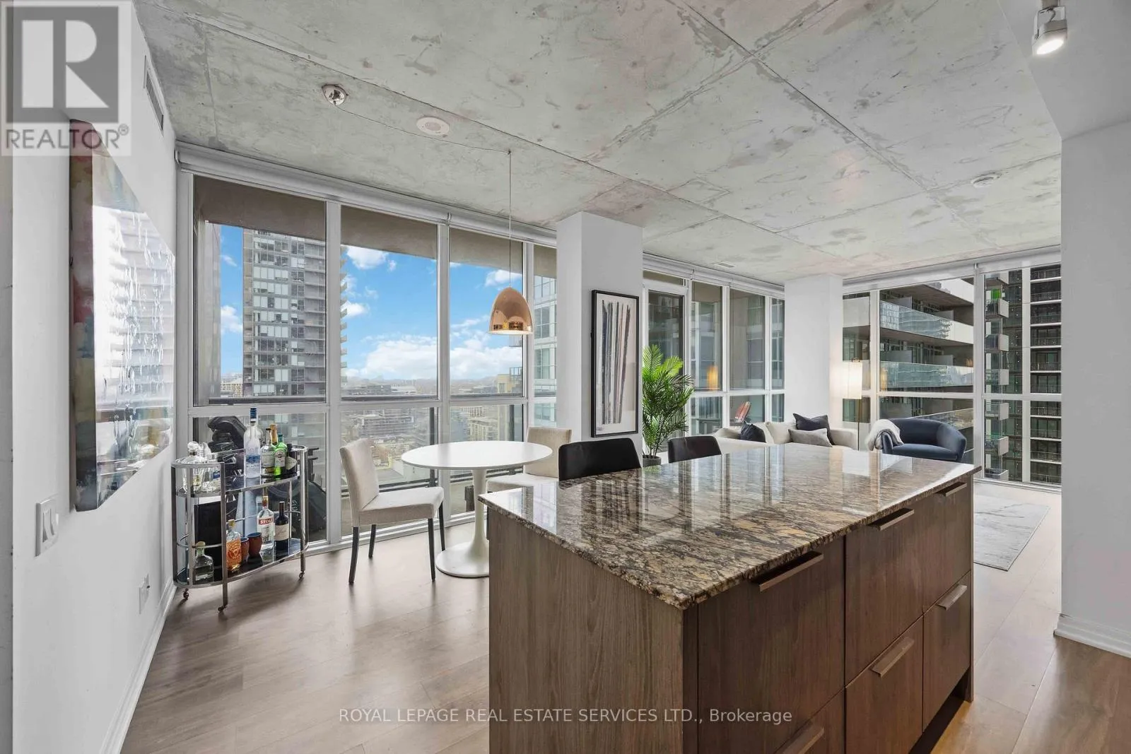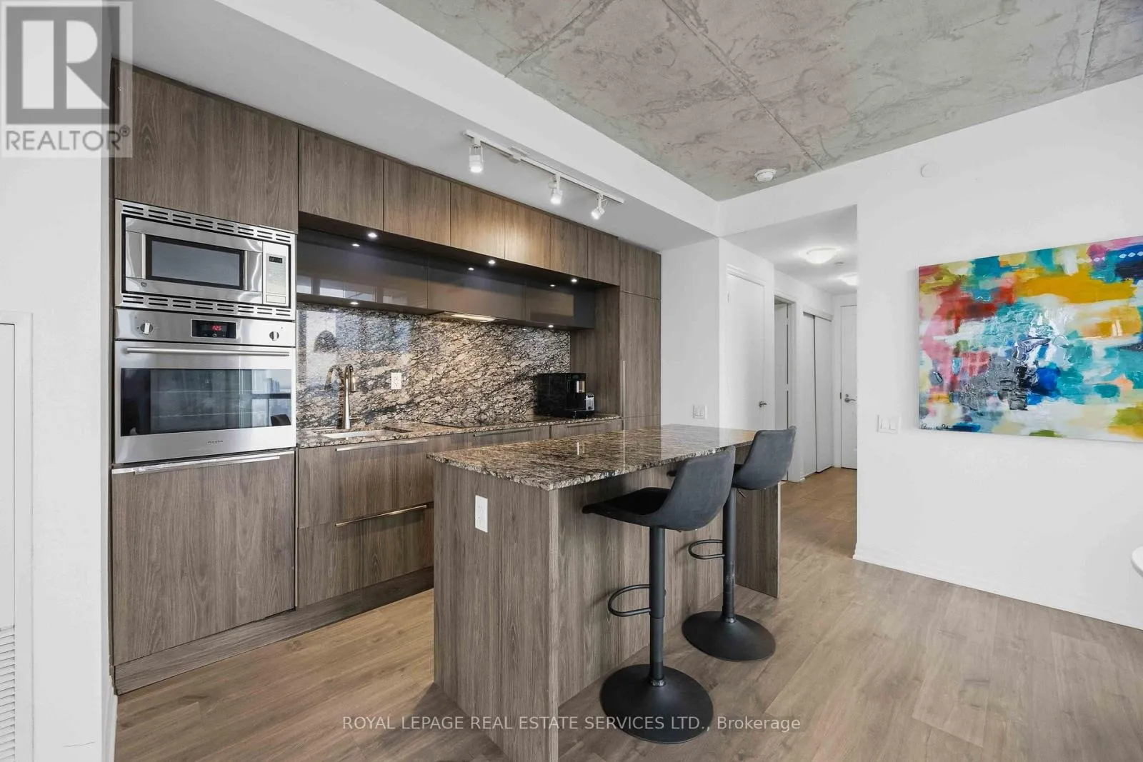 King St W & Blue Jays Way Experience the pinnacle of King West living at the prestigious Bisha Hotel & Residences. This highly desirable 2-bedroom, 2-bathroom suite features a preferred split-bedroom layout, offering 843 sq. ft. of functional luxury and a 109 sq. ft. balcony with sweeping northwest views. The interior strikes a perfect balance between industrial chic and modern elegance, showcasing exposed concrete ceilings, dramatic floor-to-ceiling windows, and a sleek open-concept kitchen with a central island and built-in appliances. Residents enjoy access to world-class amenities, including a rooftop infinity pool, and 24-hour concierge. With a Walk Score of 99 and Transit Score of 100, you are steps from the Rogers Centre, TIFF, and the city's finest dining-this is not just a home, it is a statement in modern luxury. (id:27476)
