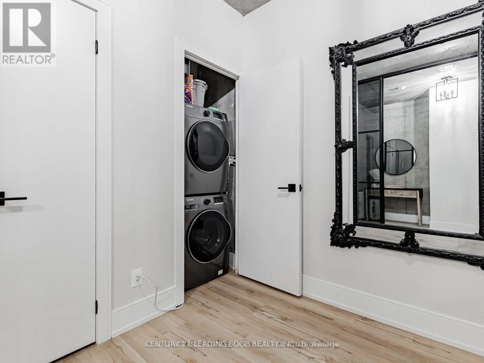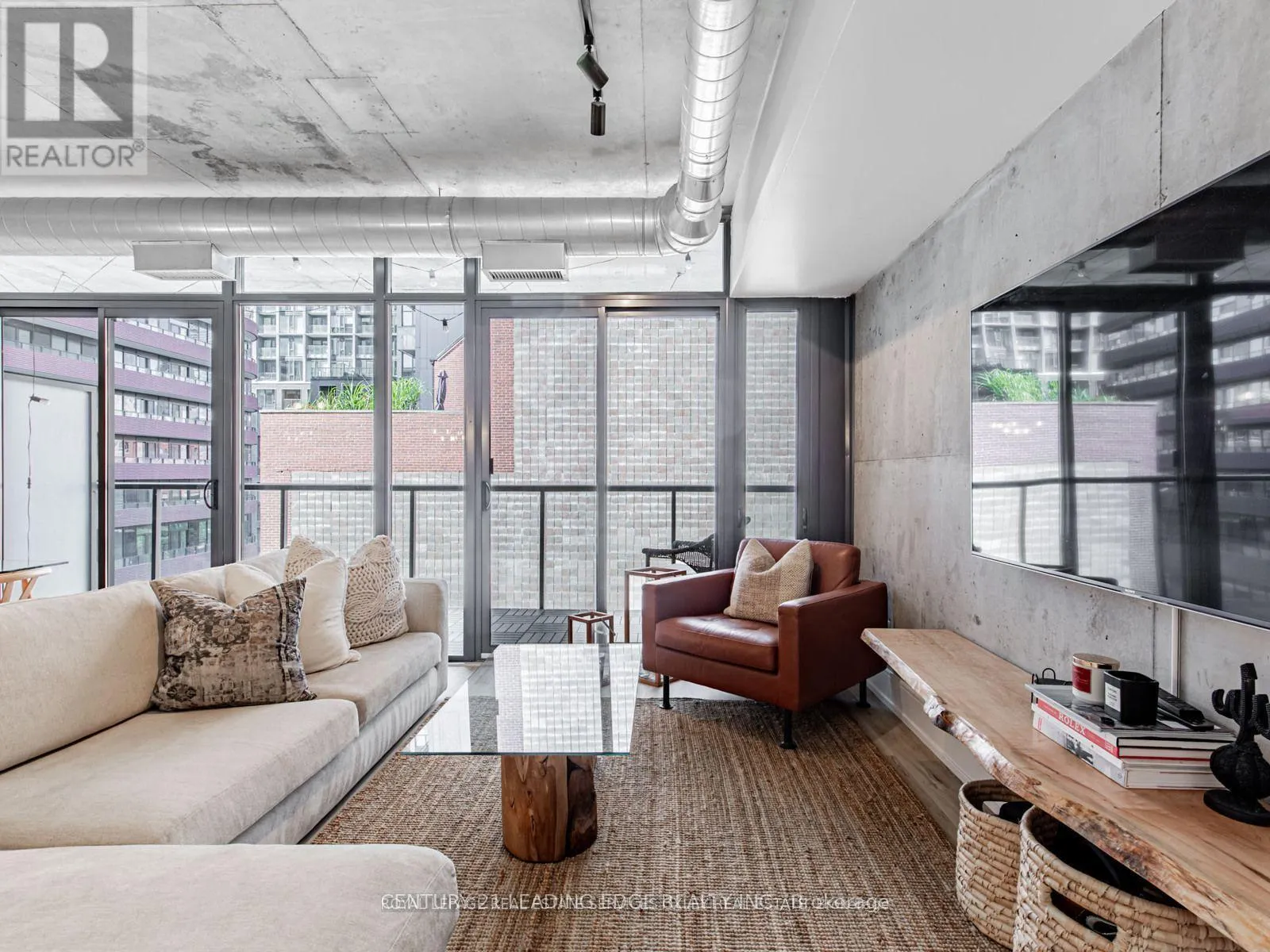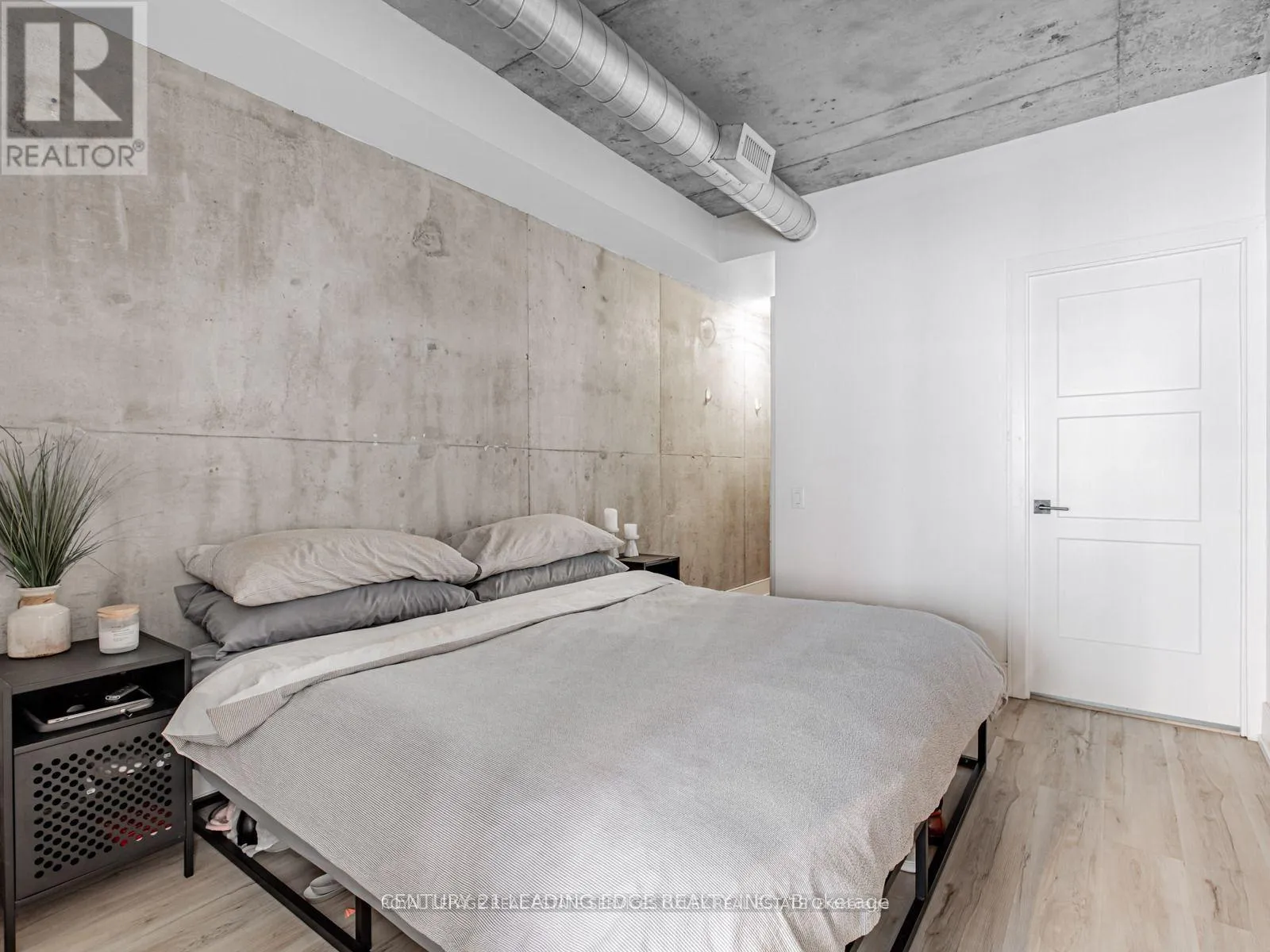 King St and Princess St Welcome To East Lofts!This spacious and immaculate 1+1 suite offers nearly 1,000 sqft of luxury living, checking off all your boxes. Nestled in a beautiful boutique building just steps from St. Lawrence Market, this condo boasts concrete high ceilings with exposed ducts, giving it a lofty feel.The large functional second bedroom can easily serve as an office to your versatile lifestyle needs. The newly renovated and redesigned kitchen, complete with a beautiful wine cellar, ensures you will have plenty of space to cook and entertain. The primary bedroom offers a serene retreat with an ensuite bathroom and walk-in closet. (id:27476)