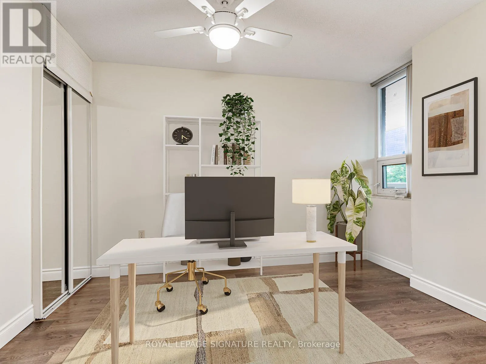 Lawrence Ave/Ling Rd Welcome to 121 Ling Road where value meets lifestyle. Truly one of the best finds in the city, this spacious 1+1 bedroom, 2-bath suite in the heart of West Hill offers 965 sq. ft. of well-designed living space that feels anything but ordinary. The versatile den can easily be converted into a second bedroom, making this home ideal for both end users and investors alike. Beautifully updated throughout, it features a modern kitchen, refreshed baths, and stylish flooring all ready for you to move right in. Step outside to a large private balcony with serene easterly views, perfect for your morning coffee or evening unwind. This well-managed building includes an underground parking space and locker, and is conveniently located near transit, shopping, community centres, libraries, and scenic walking trails. Turn-key comfort, thoughtful updates, and an unbeatable location this one has it all. (id:27476)