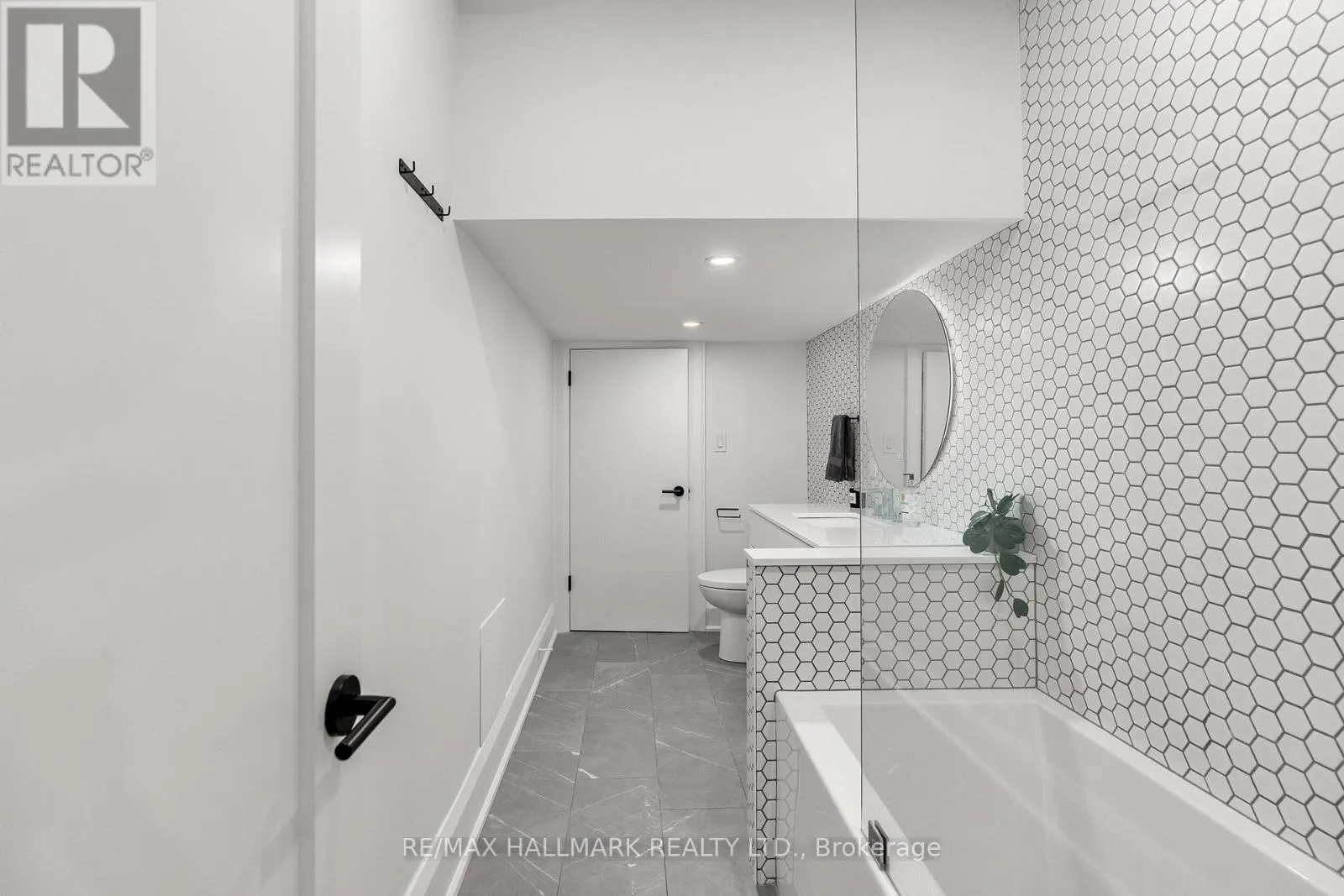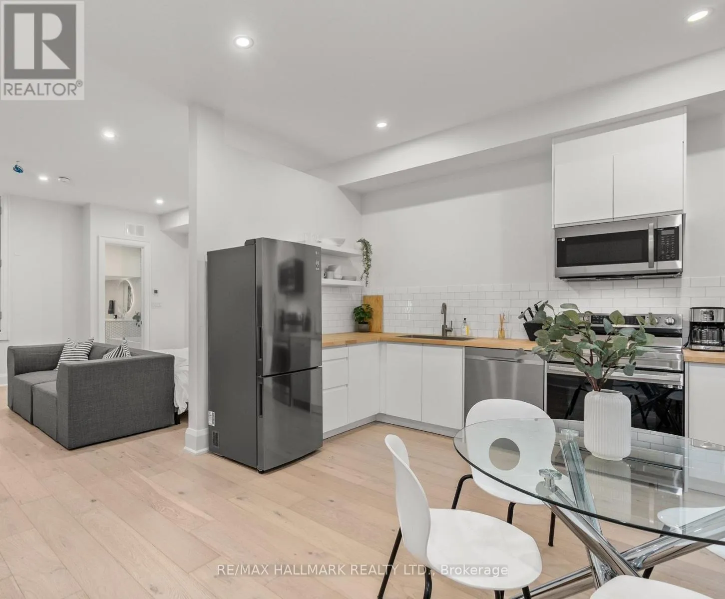 Cross Streets: Glenside & Gerrard. ** Directions: Glenside. Newer fully furnished loft style apartment in perfect condition with large outdoor space. Includes everything! - electricity, heat, water and internet with TV package. Available for 1 year lease or shorter term options to be negotiated. Just over 700 sq ft. Private entrance. Soaring 10.5ft ceilings. Heated wide plank white oak floors throughout. Modern kitchen with stainless steel appliances. Large open concept bedroom with king size bed. Spa like bathroom with rain shower head, wand and deep soaker tub. Front loading washer & dryer exclusively for this suite. Comes with all furnishings, sheets, towels, pots, pans, plates, coffee maker, just like an Air Bnb. 55" television. Walk out to large terrace that gets decent natural light. Perfect for those coming to Toronto for work, renovating their home or flying the coup lol. Make sure to check out the virtual tour link! **EXTRAS** Permit parking available on street through City of Toronto. (id:27476)