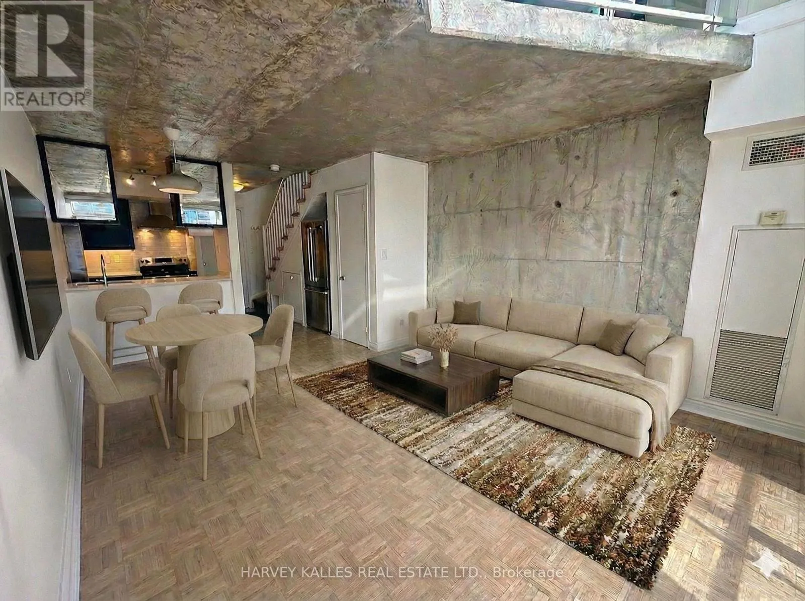 Cross Streets: King and Shaw. ** Directions: east west. Your Private Rooftop Terrace Awaits At The Incredible Elektra Lofts! Includes Locker and Parking! 2 Storey 3 Level Loft With Exposed Concrete Throughout, stunning 17 Ft Ceiling Heights across Main and 2nd floor, Sun Filled Suite with Floor To Ceiling Windows, and Convenient Automated Black Out Blinds. Multiple outdoor balconies including Main Floor Walkout to Balcony & 3rd Floor Private Rooftop Terrace With Unobstructed Views Of City Skyline. Recently Renovated With New Stone Countertops, Hardwood Floors, Freshly Painted and Detailed, And Ready For Move In! Live In The Heart Of Liberty Village / King West / Queen West! The Bentway, Parks, Walking Trails, TTC, Shopping, Restaurants At Your Literal Doorstep. Renovated Amenities Areas Including Gym and Exercise Rooms. (id:27476)